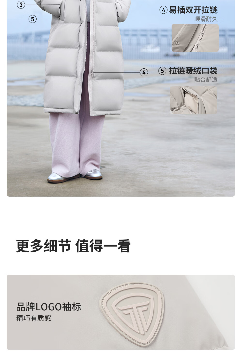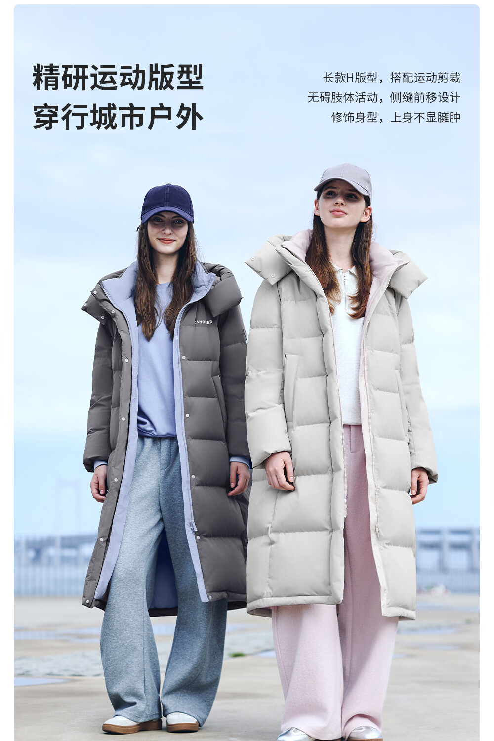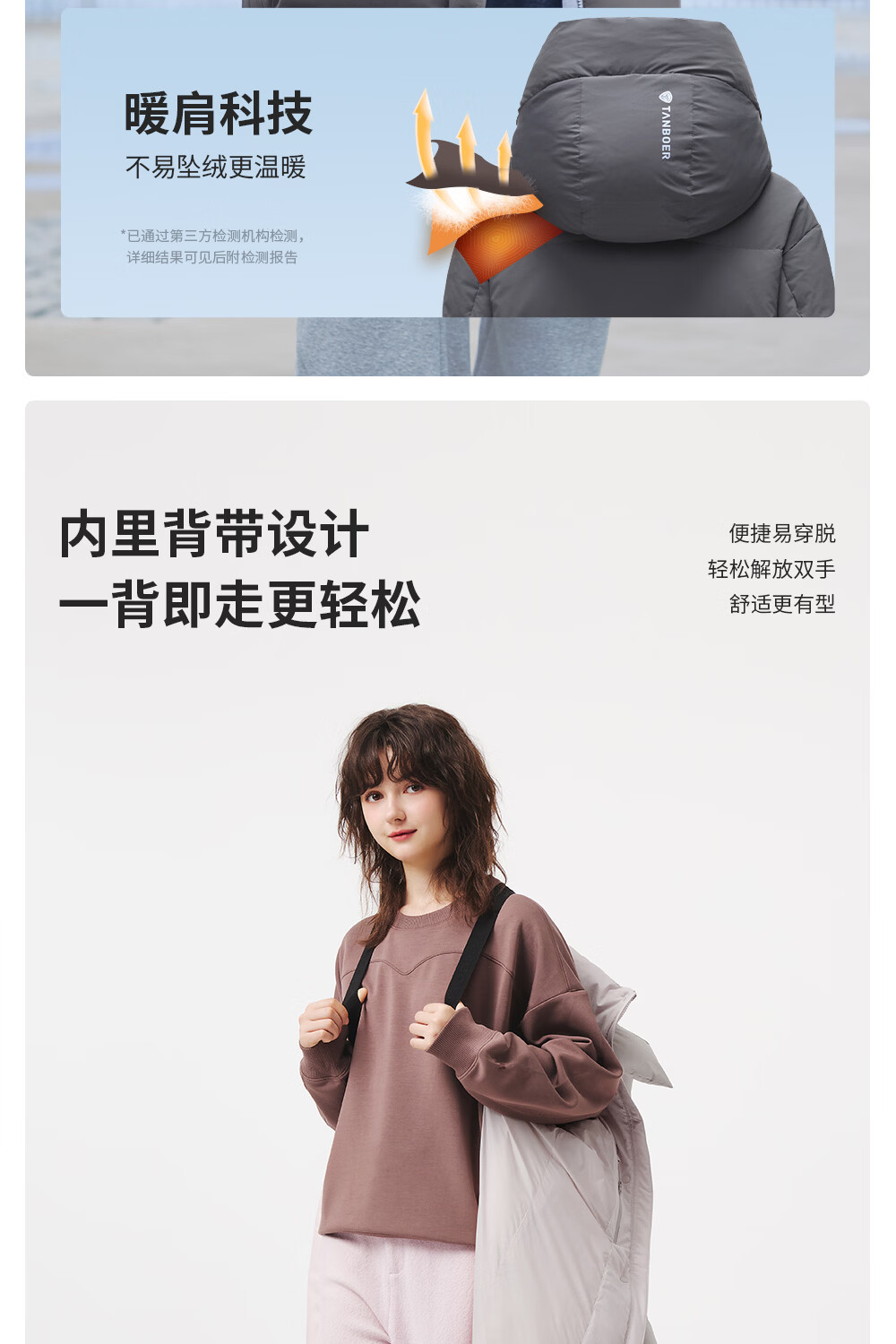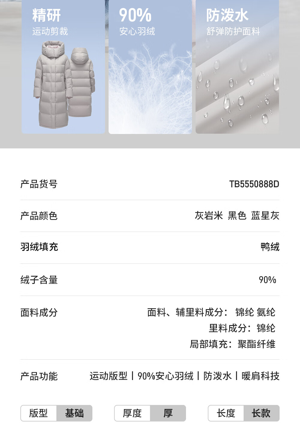 Tambor down jacket women's long 25 winter removable hood casual bread coat thickened and warm TB5550888D Blue Star Gray M (165)