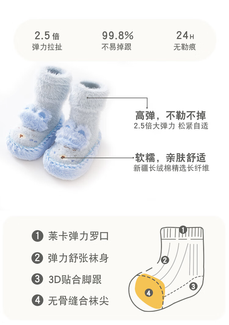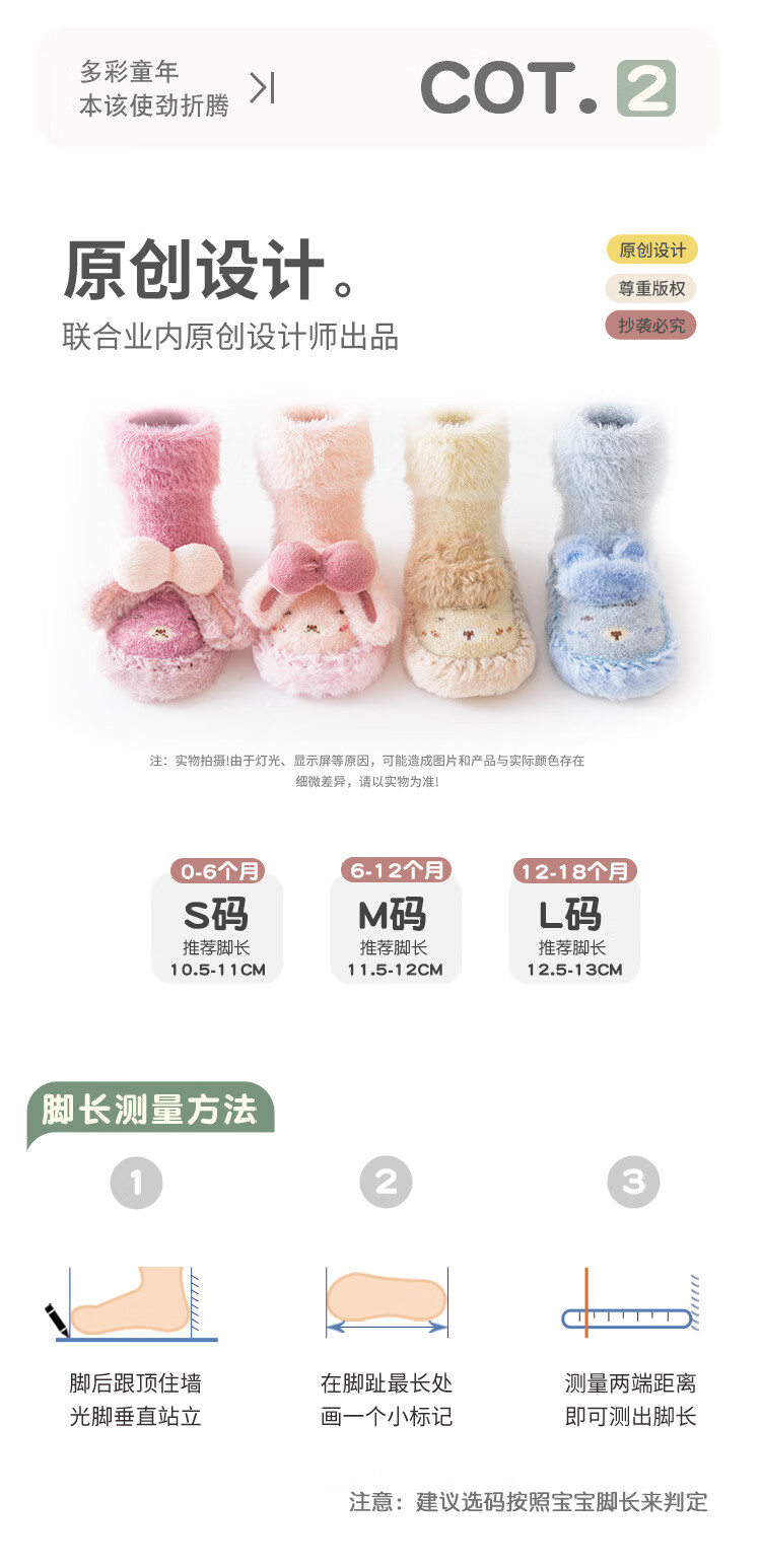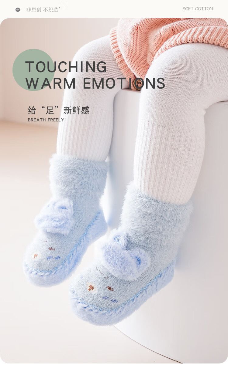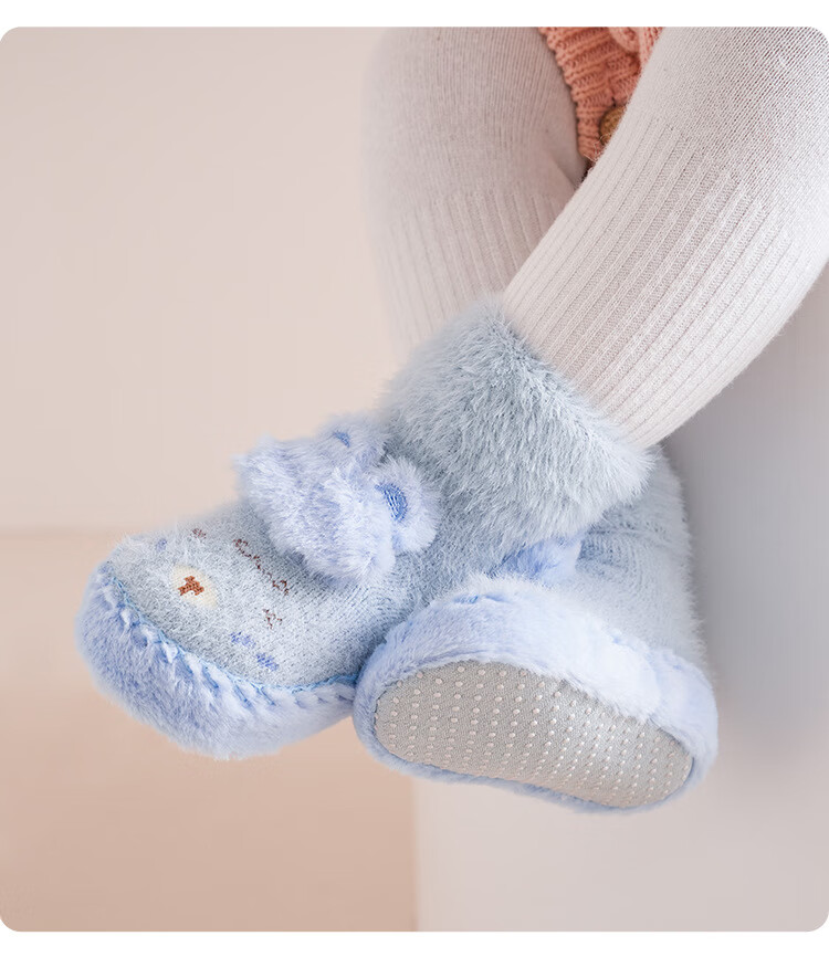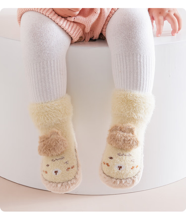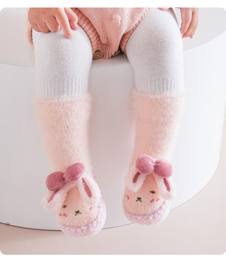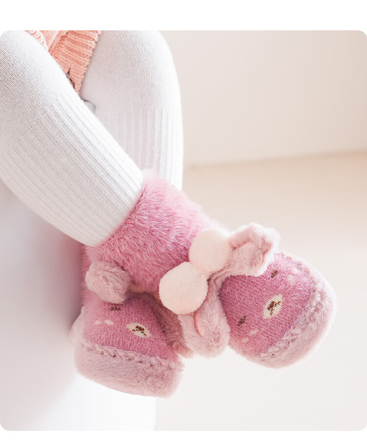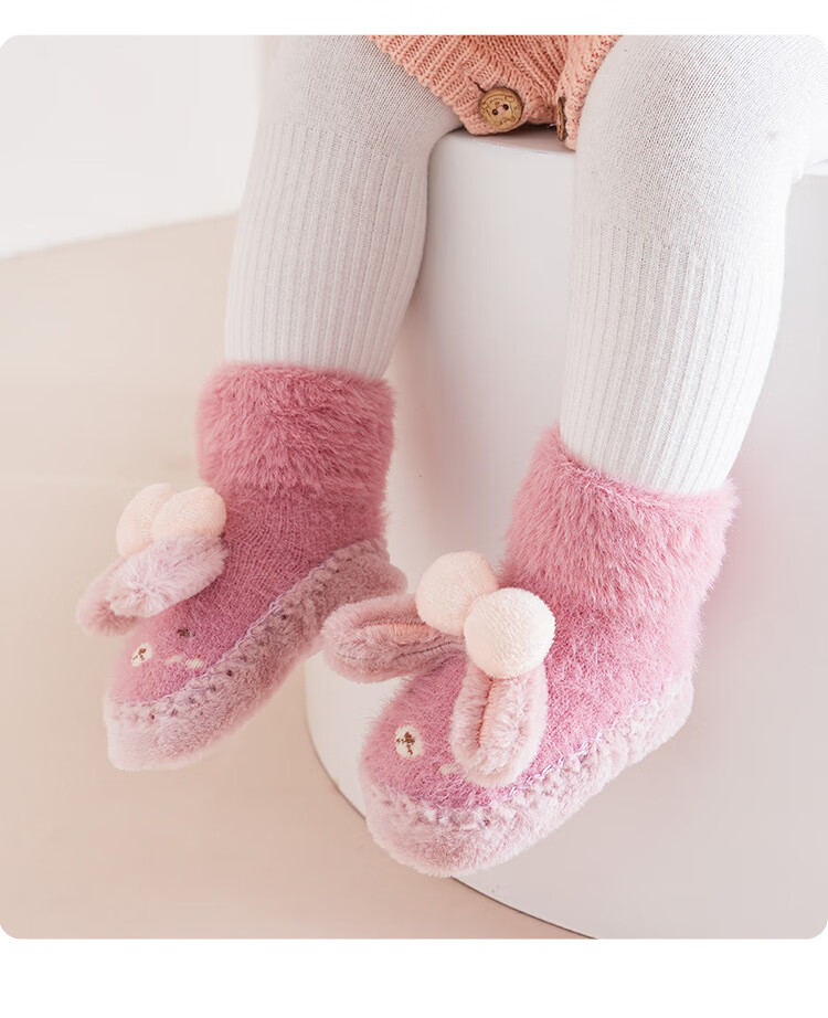 Autumn and winter baby floor socks thickened and velvet cartoon baby non-slip toddler shoes and socks dotted children's socks to keep warm 11-351-330 light pink one pair 1 pair 1-1.5 years old l