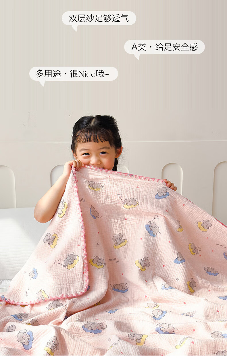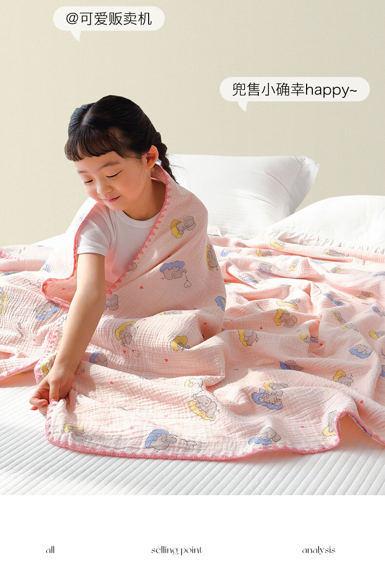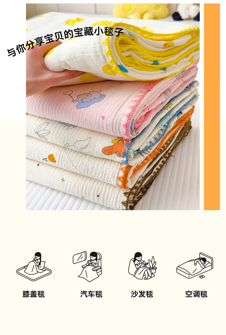Pick-up cat gauze blanket double-layer gauze children's kindergarten air-conditioning blanket baby baby blanket nap single towel cotton wrinkled gauze-Yuanqi Duck 180cm200cm-double blanket one blanket multi-purpose