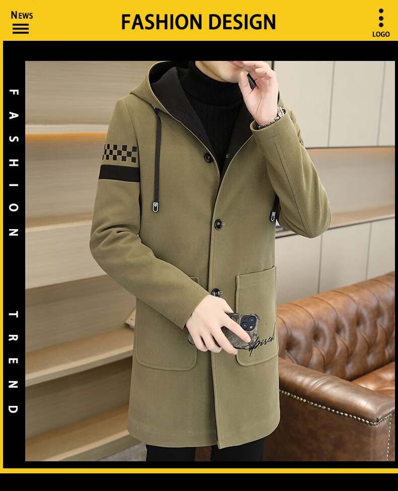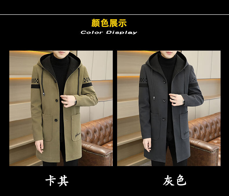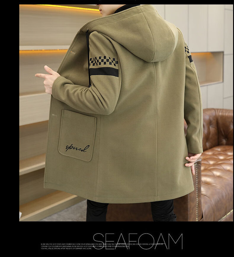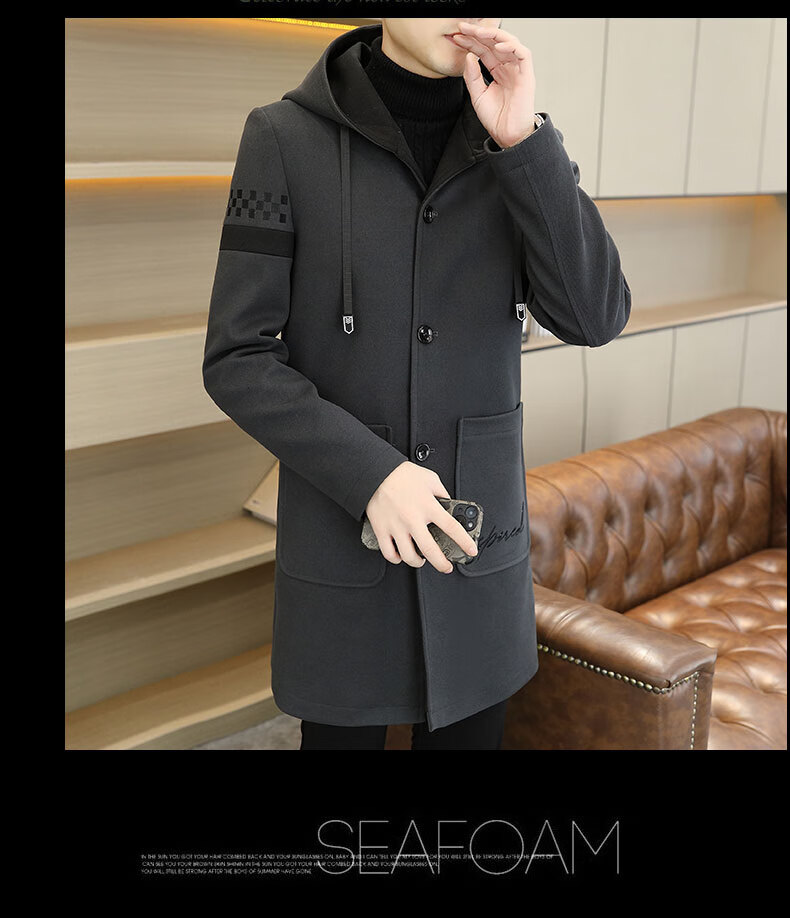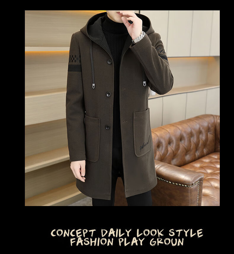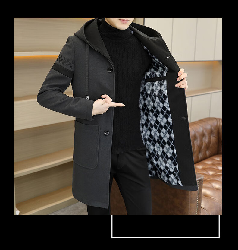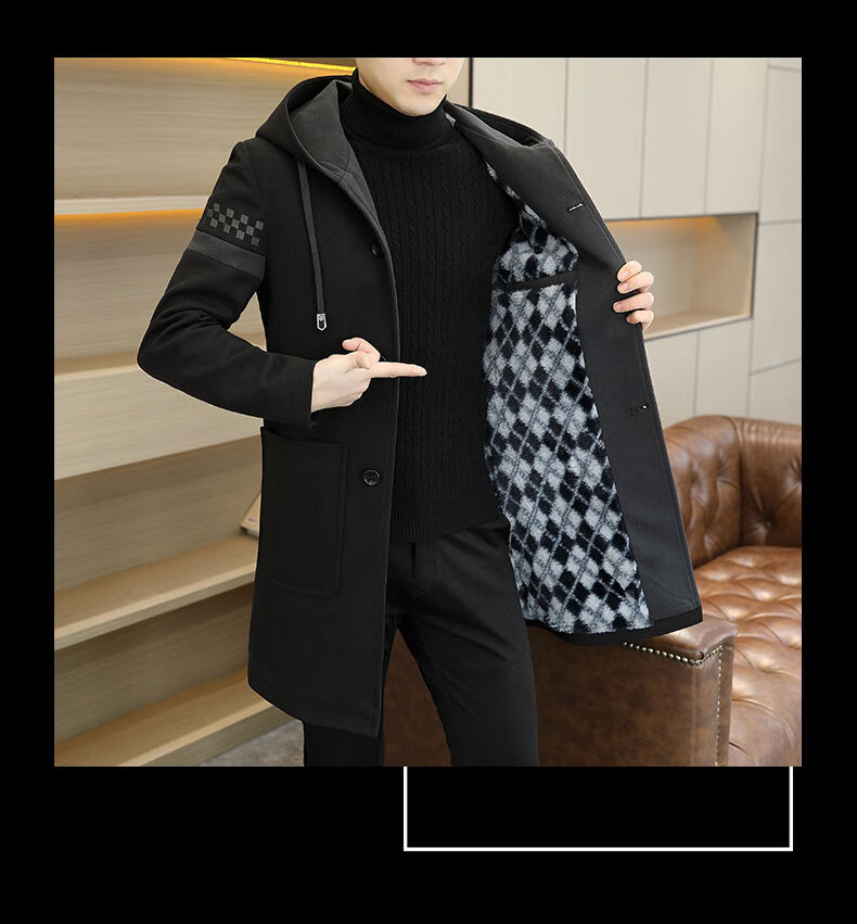 ROMON autumn and winter velvet thickened windbreaker men's mid-length hooded trendy casual high-end woolen coat black 4XL 170-190Jin Jin equals 0.5 kg