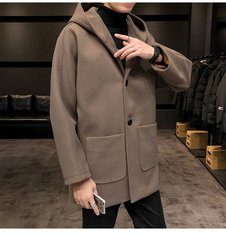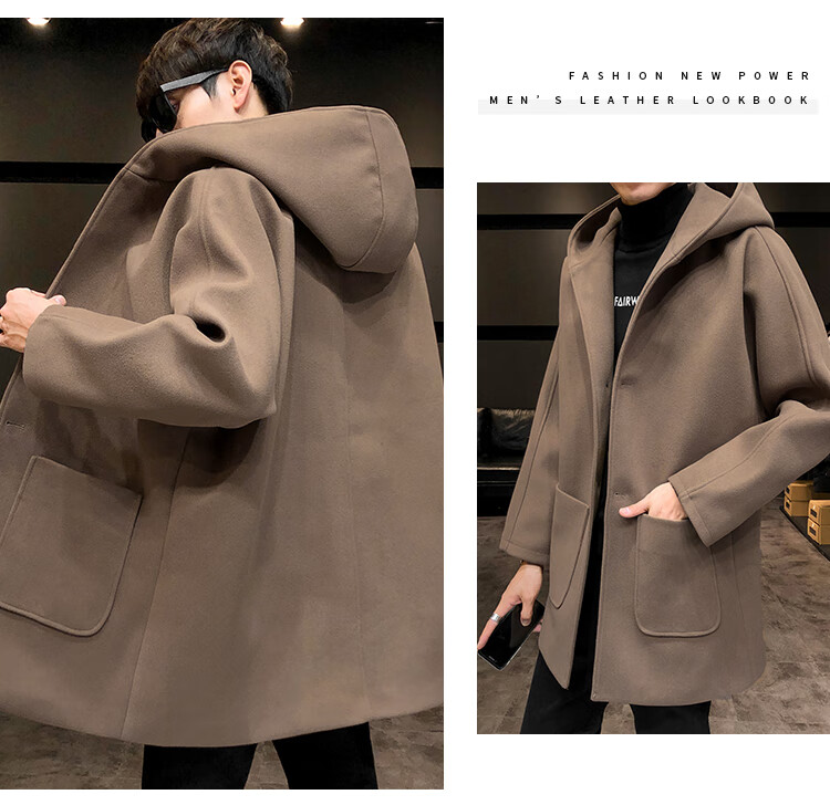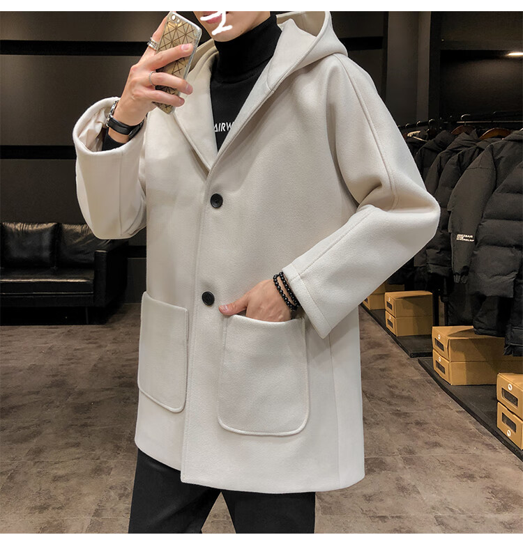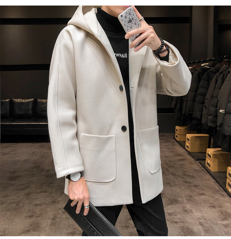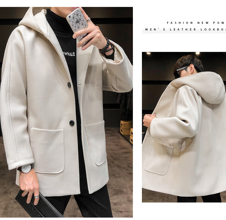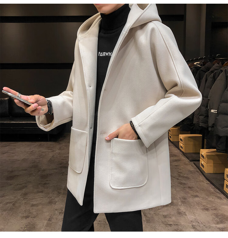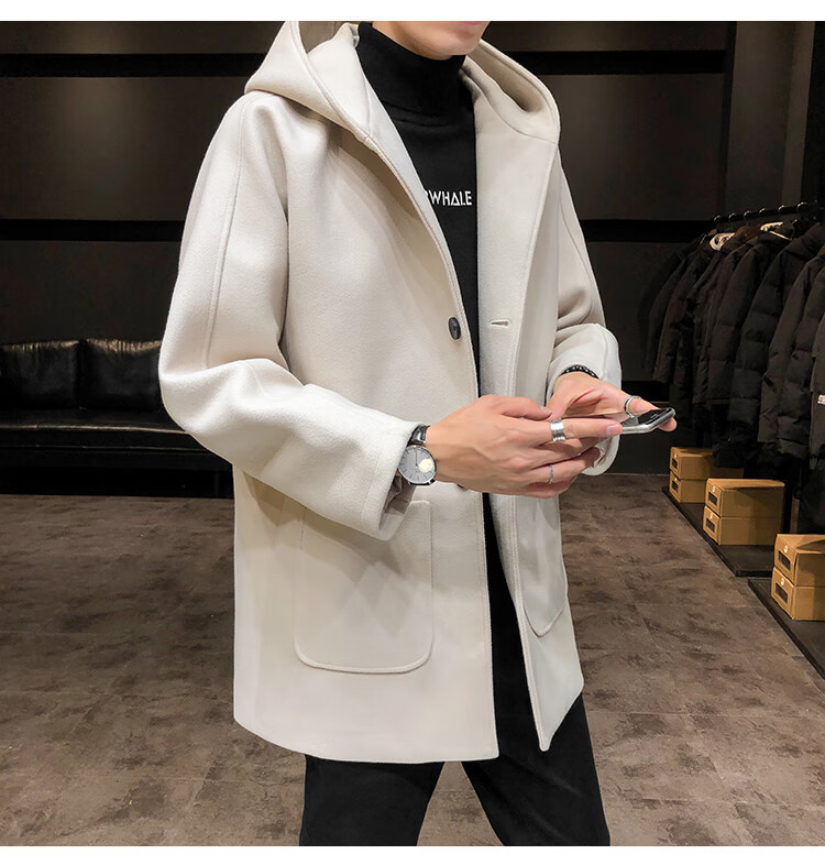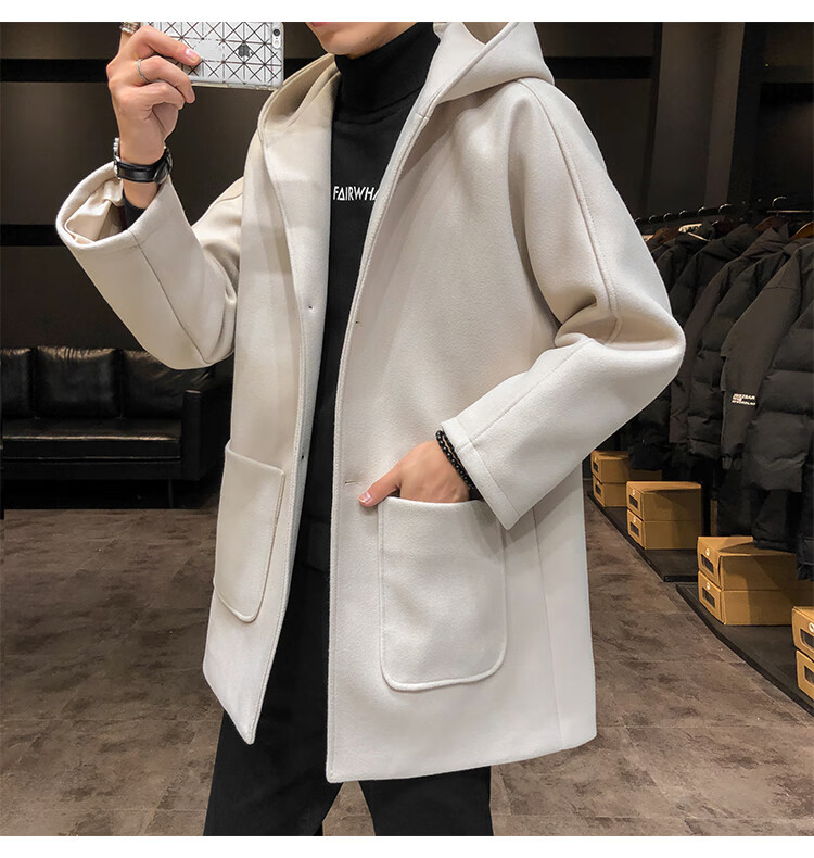 ROMON windbreaker jacket men's autumn and winter Korean style trendy casual and handsome cotton thickened mid-length hooded loose woolen coat off-white cotton M 90-115Jin Jin equals 0.5 kg