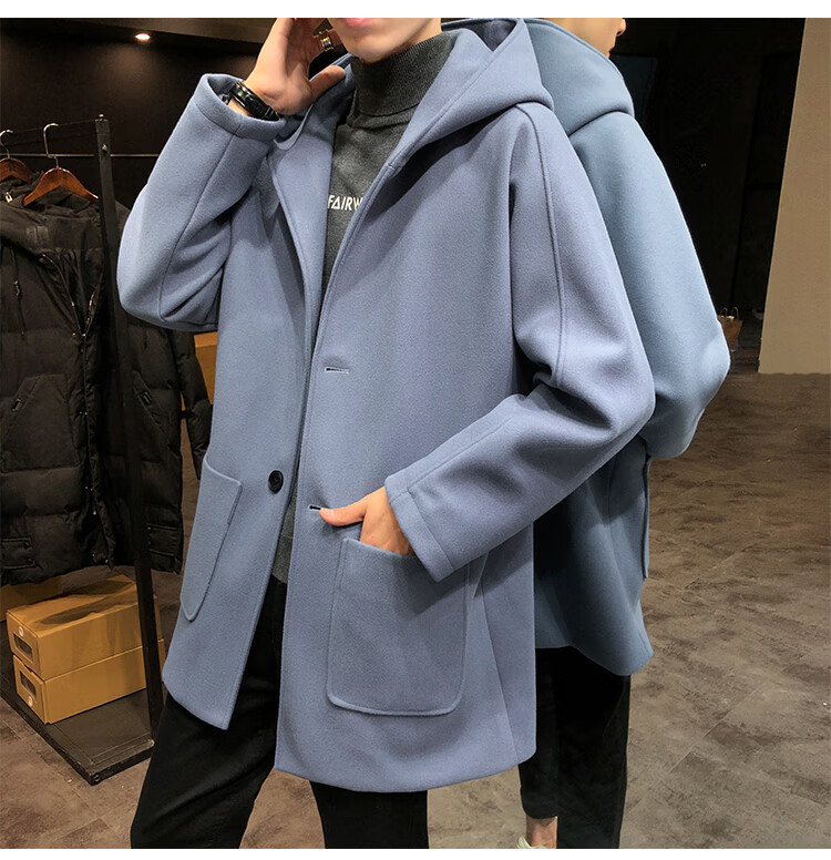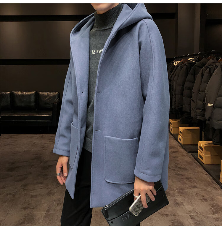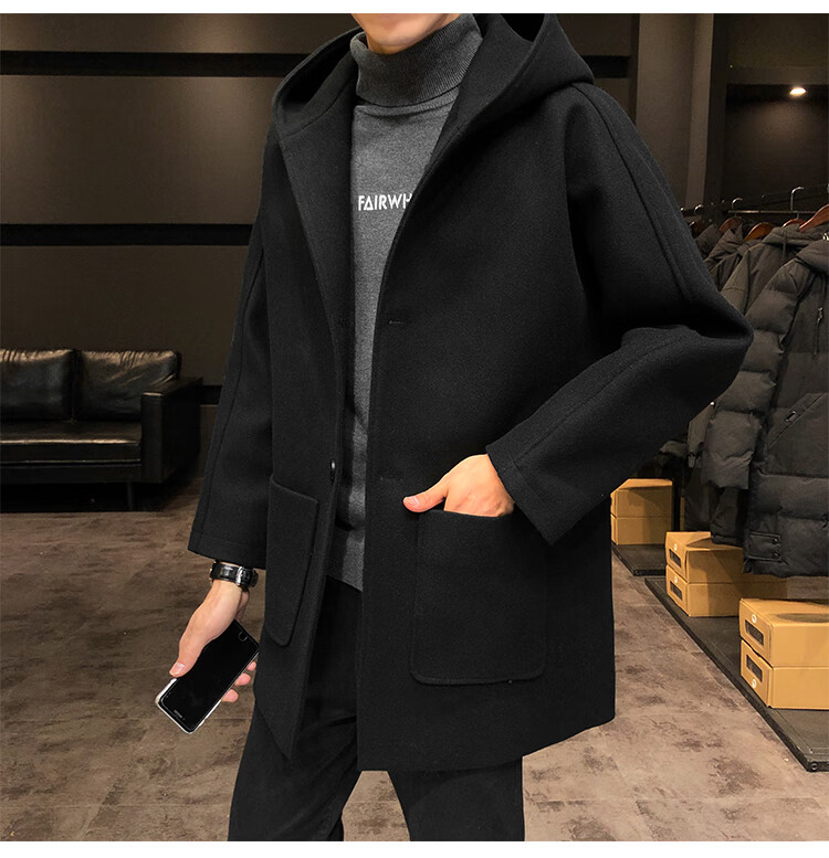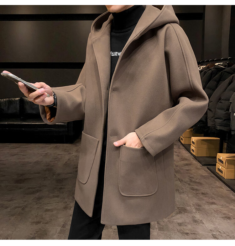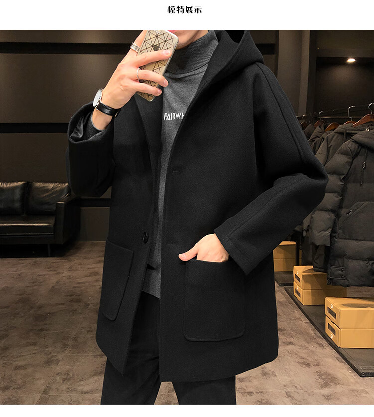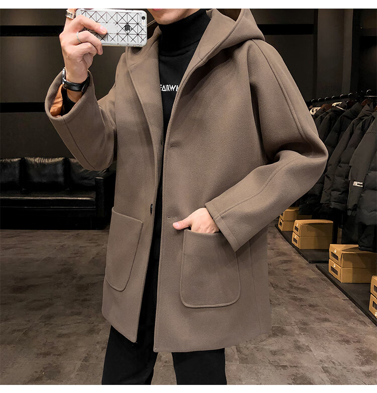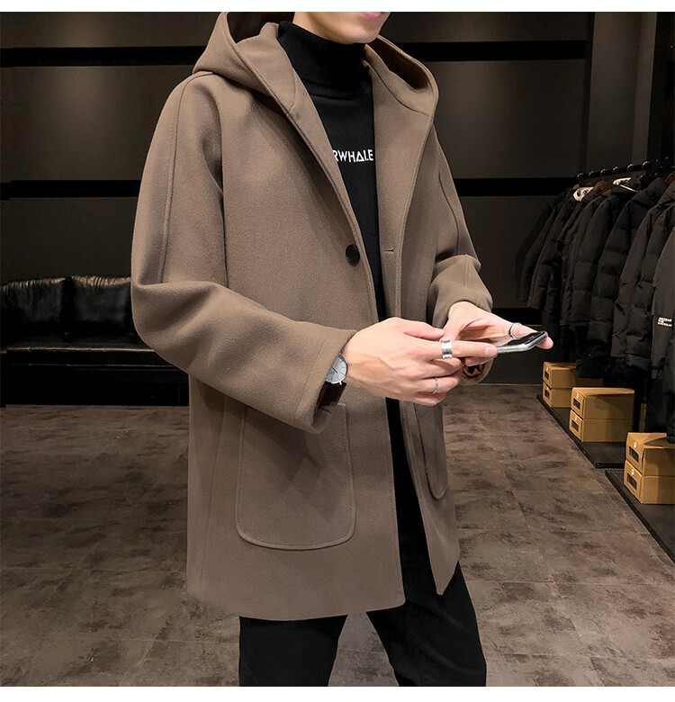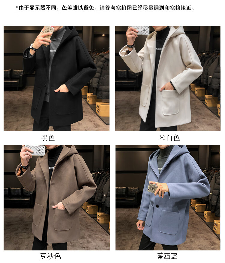 ROMON windbreaker jacket men's autumn and winter Korean style trendy casual and handsome cotton thickened mid-length hooded loose woolen coat off-white cotton M 90-115Jin Jin equals 0.5 kg
