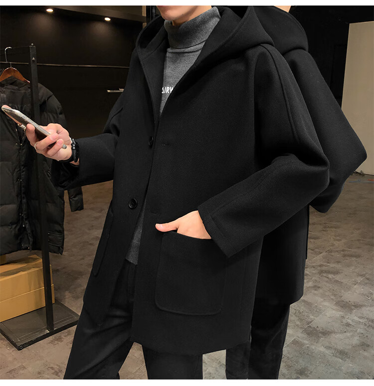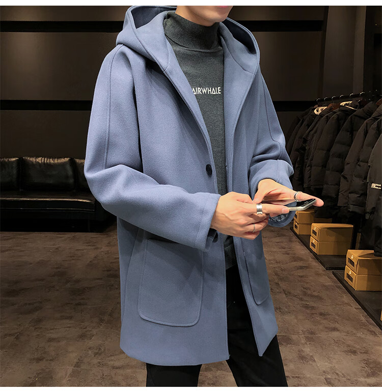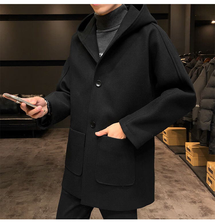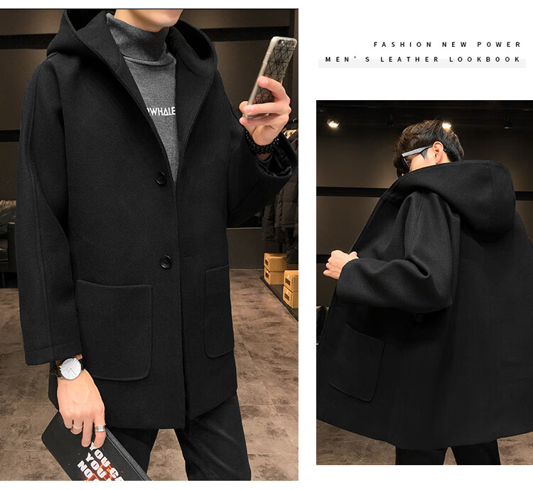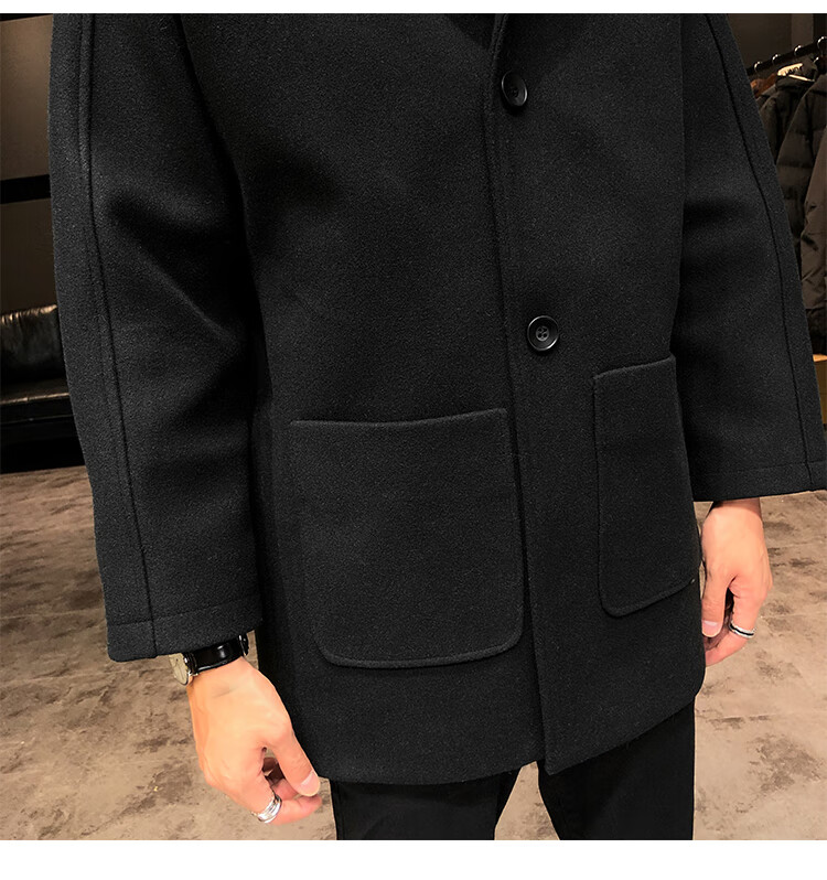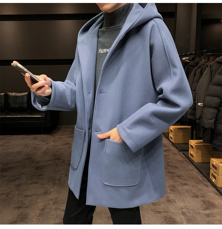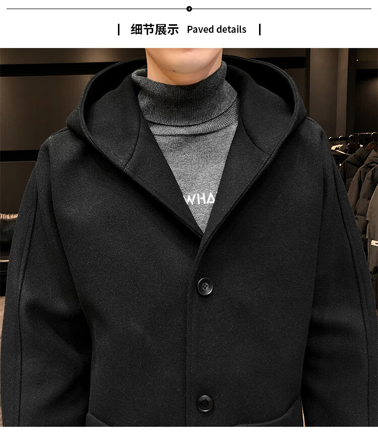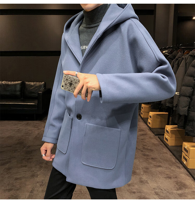 ROMON windbreaker jacket men's autumn and winter Korean style trendy casual and handsome cotton thickened mid-length hooded loose woolen coat off-white cotton M 90-115Jin Jin equals 0.5 kg