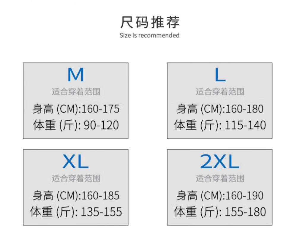 China (cm) 165 / 88-90 170 / 96-98 175 / 108-110 180 / 118-122 185 / 126-130