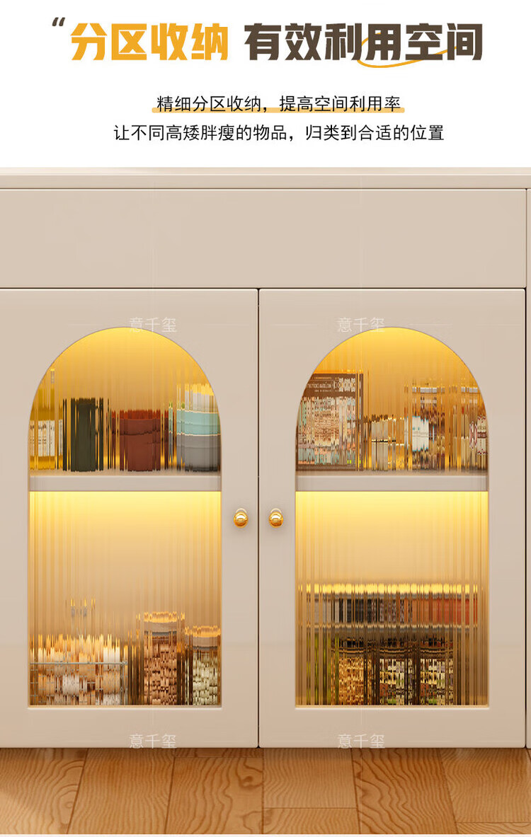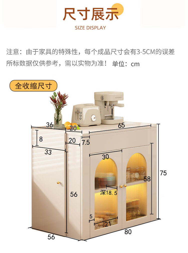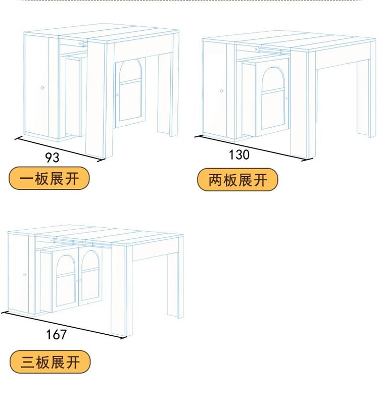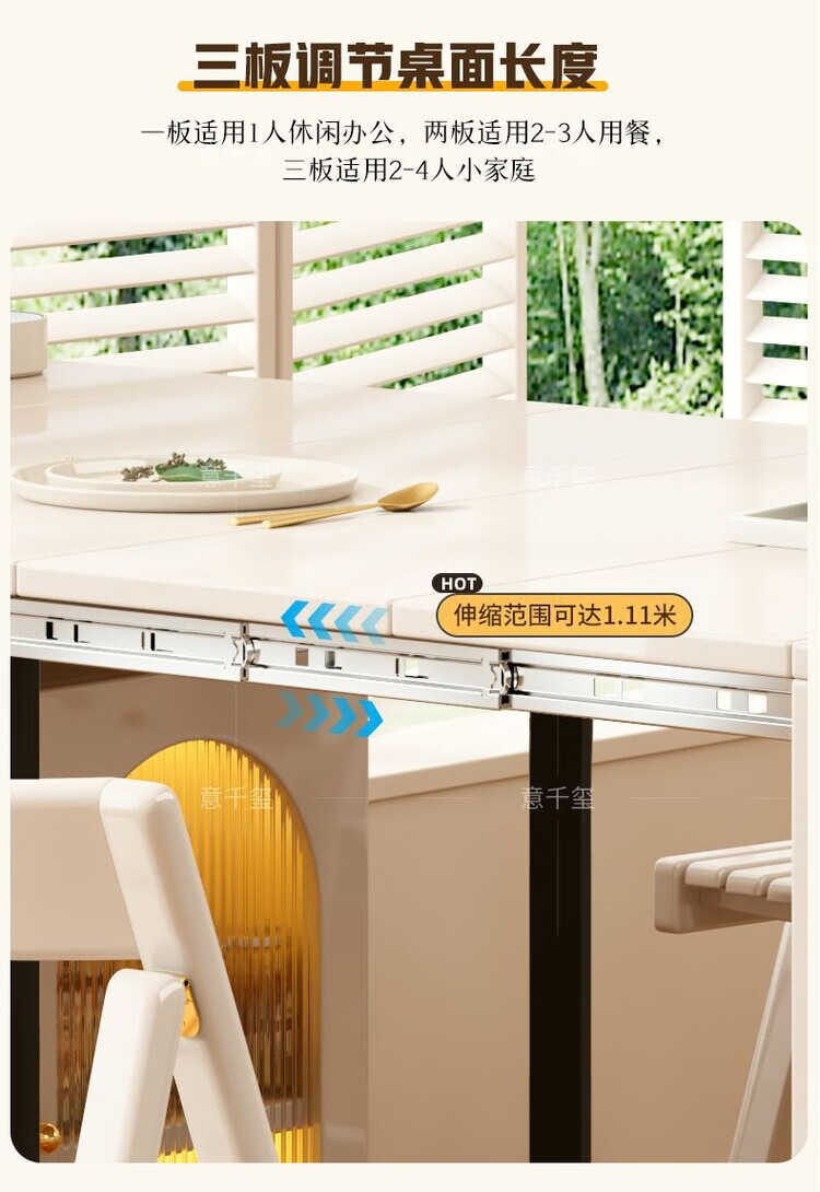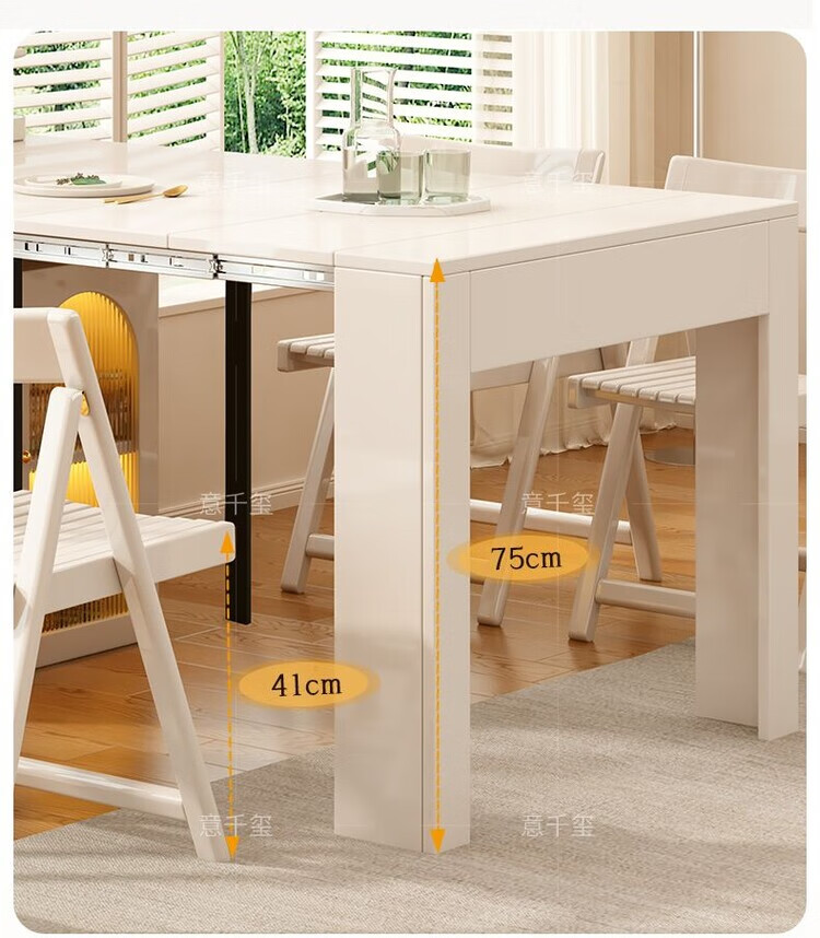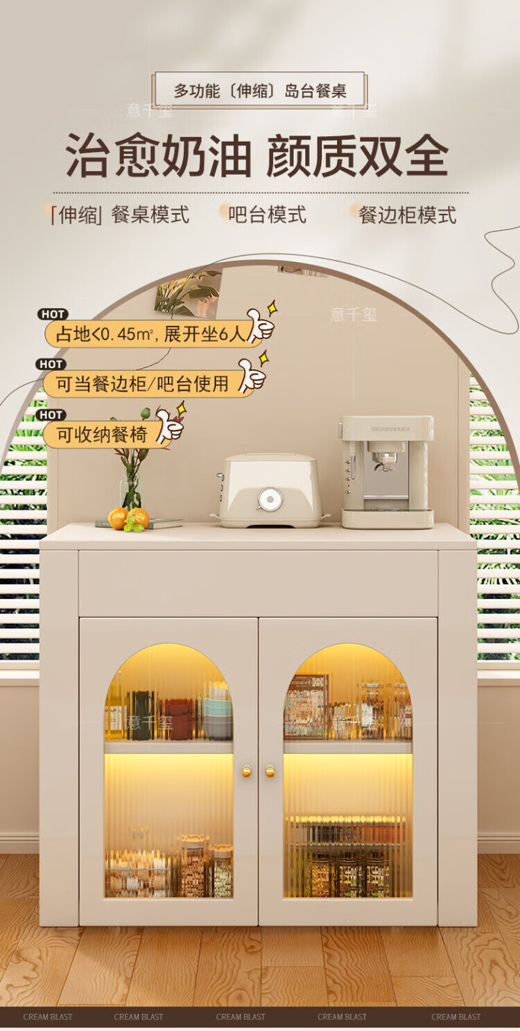 Fantasy cream style retractable solid wood dining table and sideboard integrated island small apartment space-saving multifunctional high-end folding table milky white freely retractable/can store 4 folding chairs in the cabinet at the same time retractable dining table cabinet + solid wood folding chairs*6
