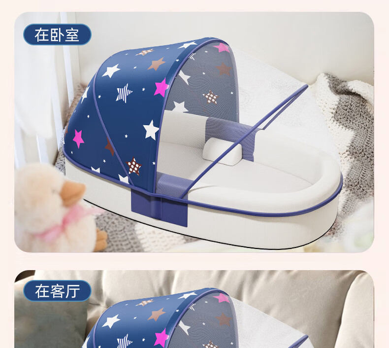 AB portable bed-in-bed crib newborn bb nap bed anti-vomiting anti-jumping bionic uterine belt moonlight powder + sunshade