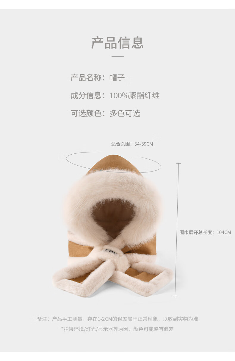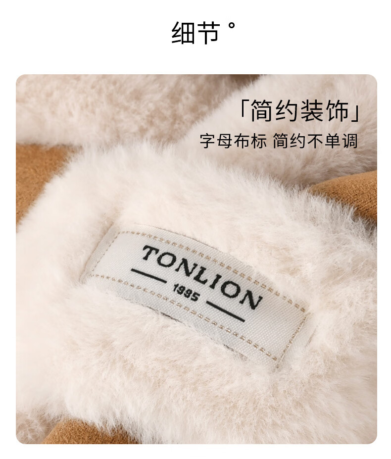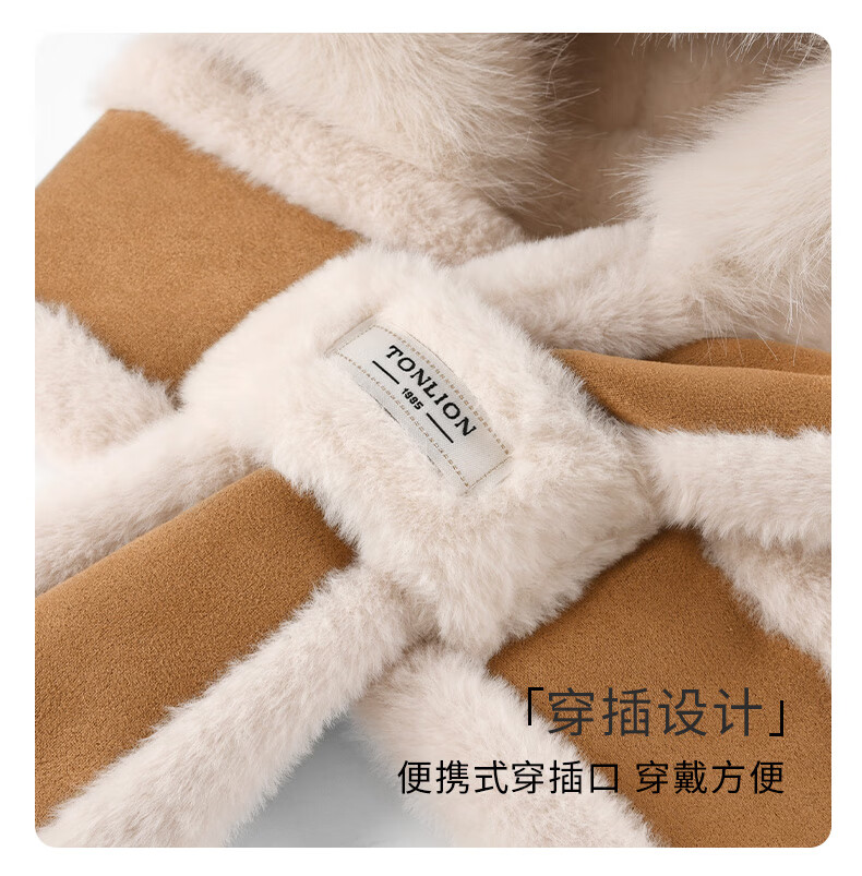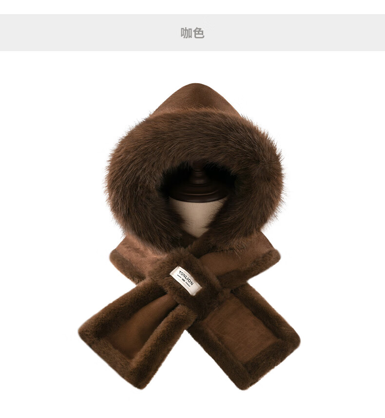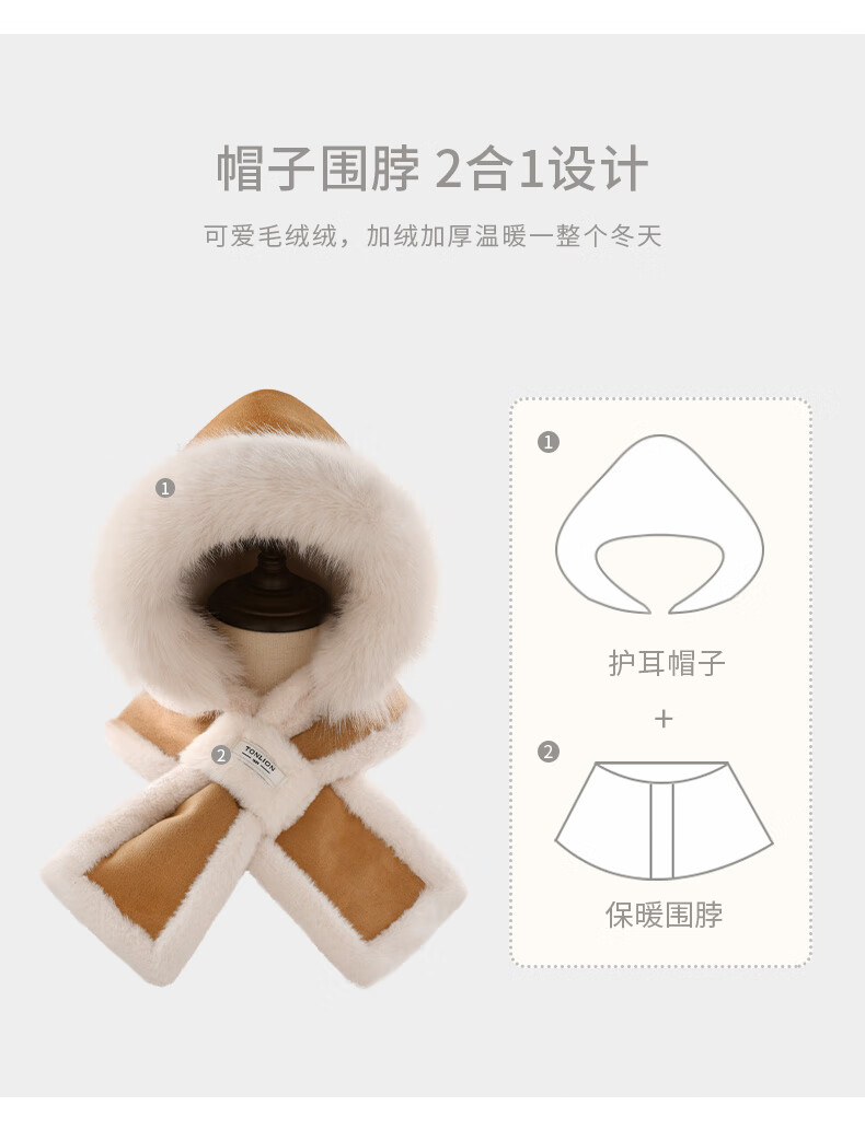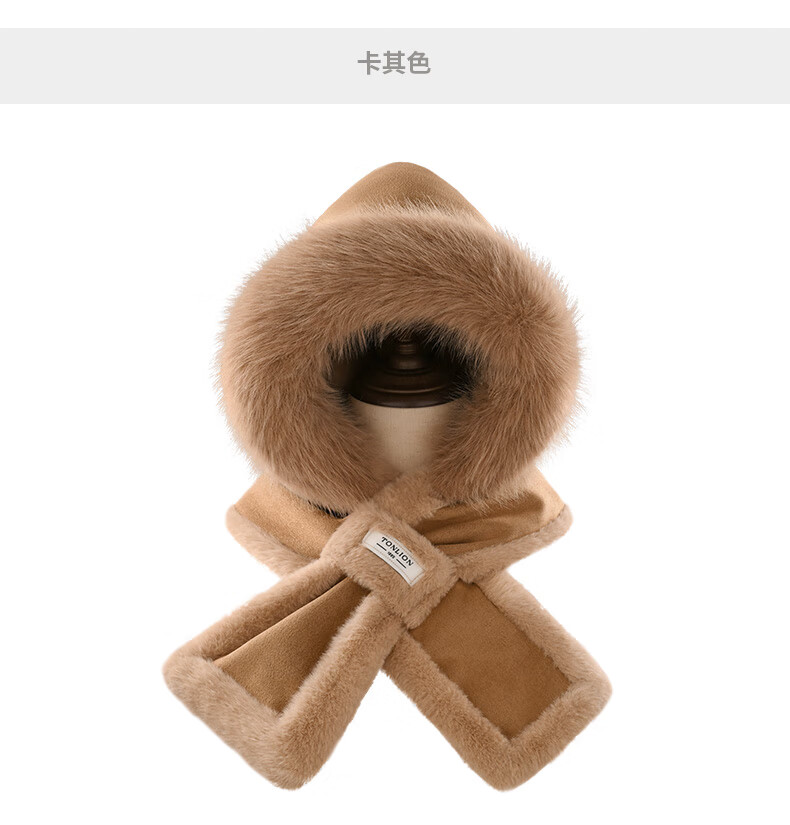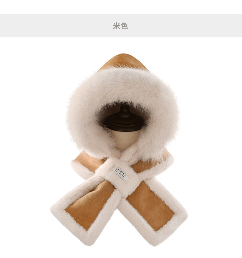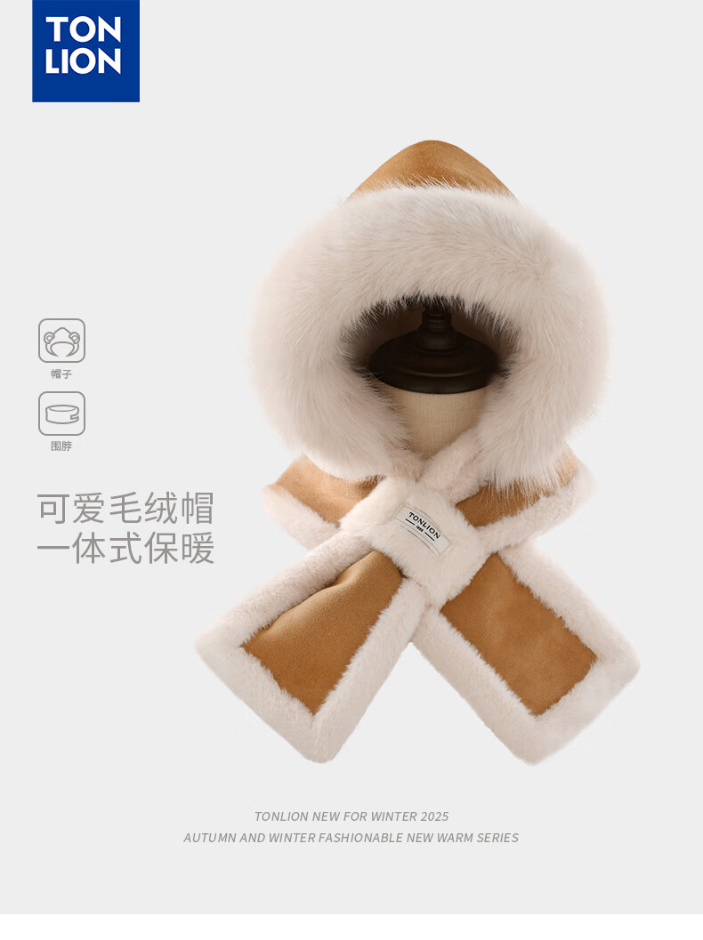 TonLion plush scarf integrated plus velvet thickened warm pullover hat scarf hooded women's winter cycling ear protection Lei Feng hat beige