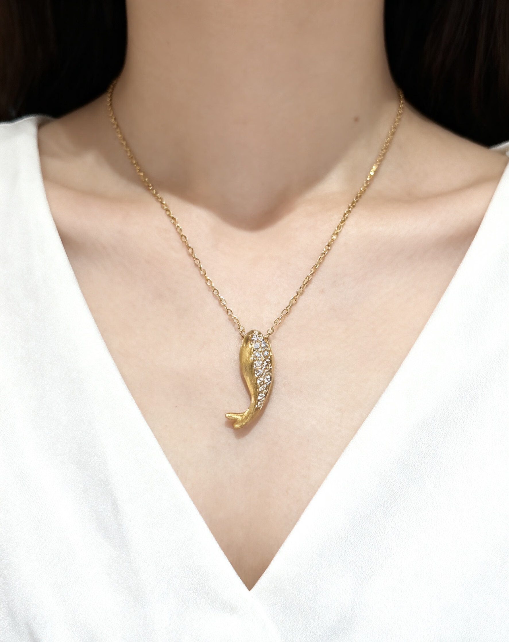 18K gold diamond koi pendant studded with diamonds, shining good luck gift for girlfriend’s birthday, yellow