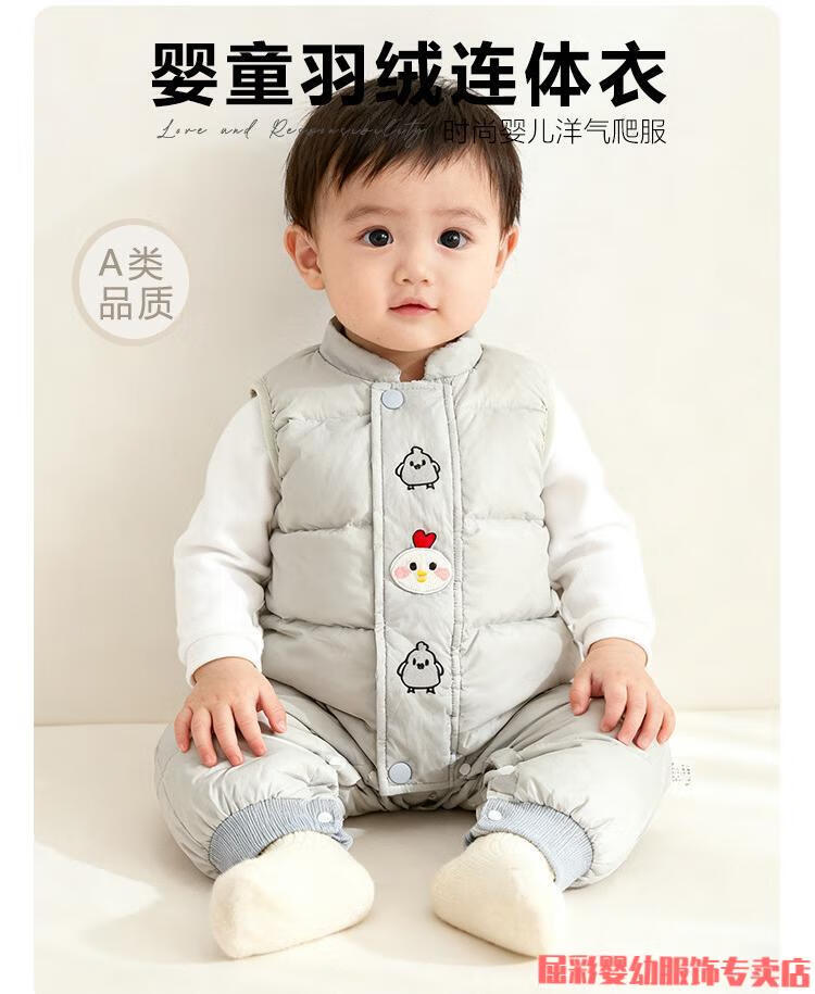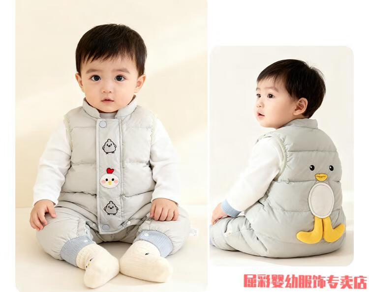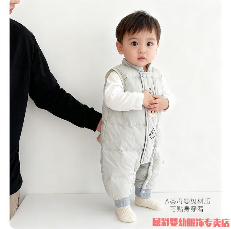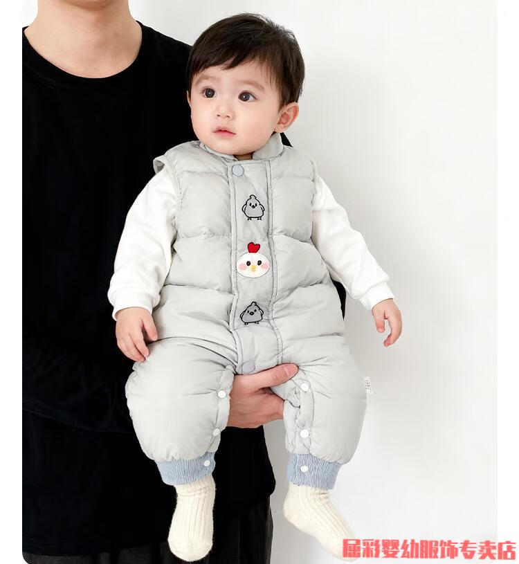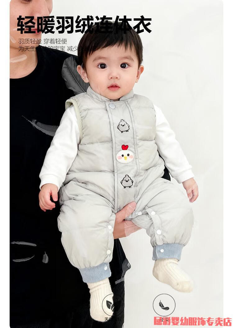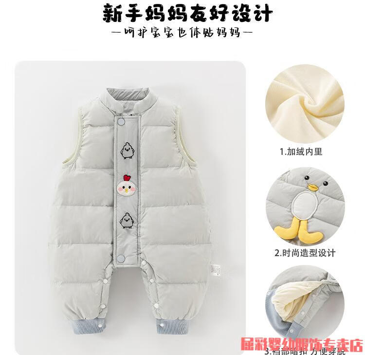 G.DUCKKIDS baby winter down jacket vest jumpsuit casual cute sleeveless overalls small month old baby wear winter clothes green 66 cm