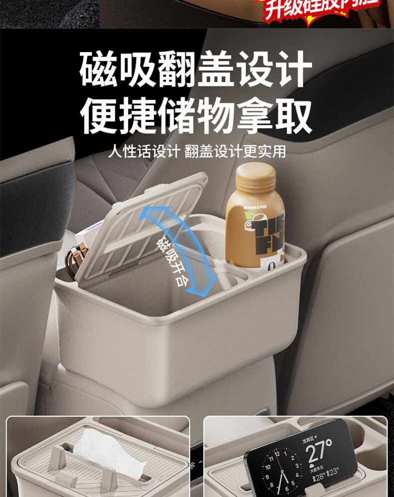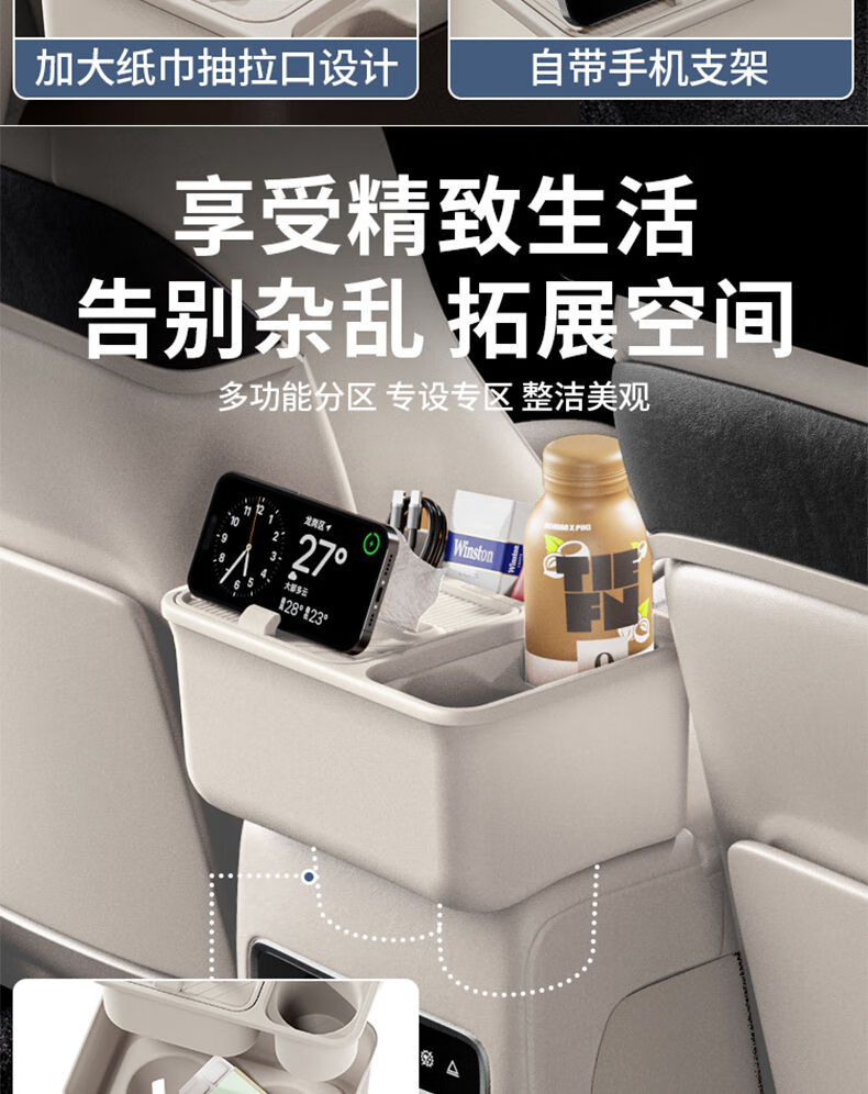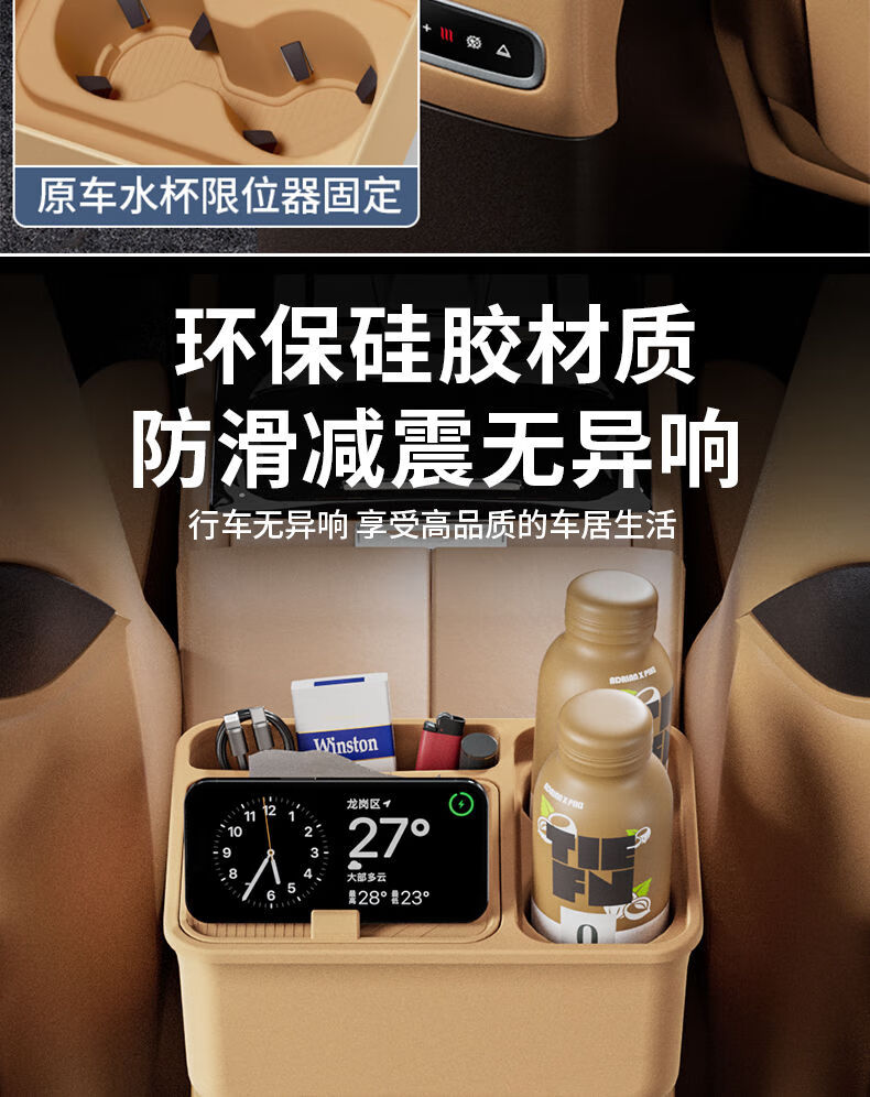 Mangosteen (shanzhu) is suitable for 24-25 models of DENZA D9, second-row armrest box, tissue box, tissue box, water cup holder, interior accessories, 24-25 models of water cup expansion box, upgraded model - silicone liner Kuang 1, DENZA, DENZA D9