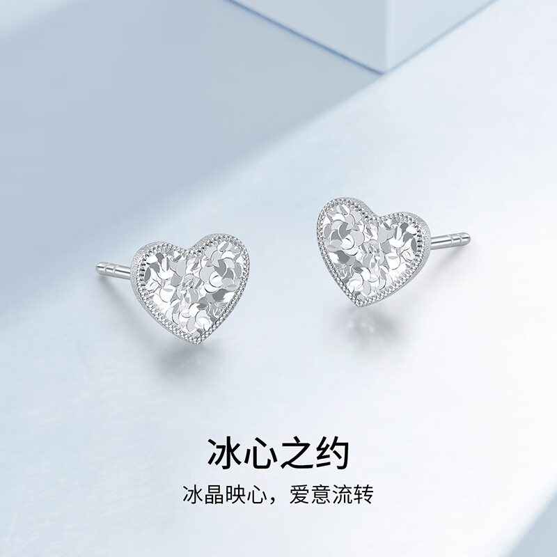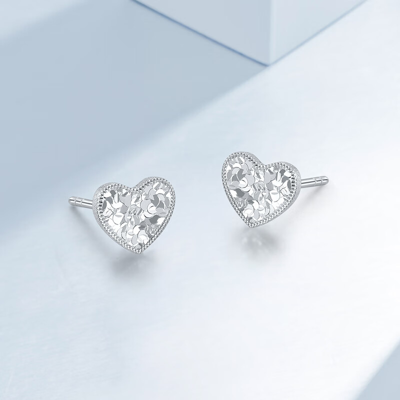Mengjinyuan Platinum Earrings Crushed Ice Heart Diamond Earrings PT950 Platinum as a Birthday Gift for Girlfriend, Weight Approximately 1.35g