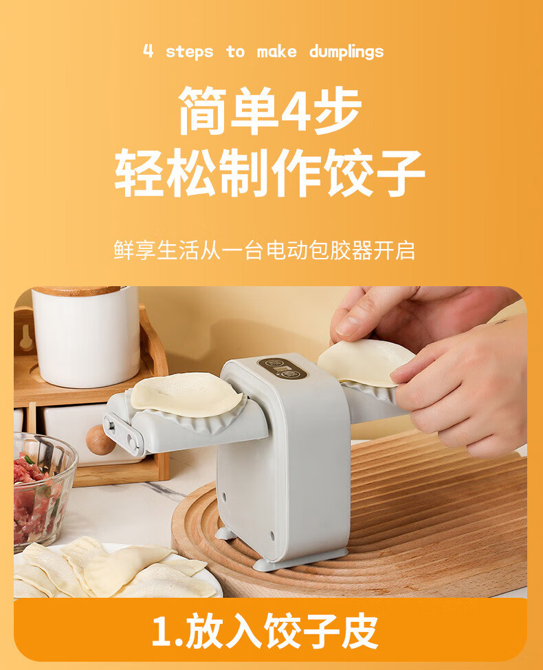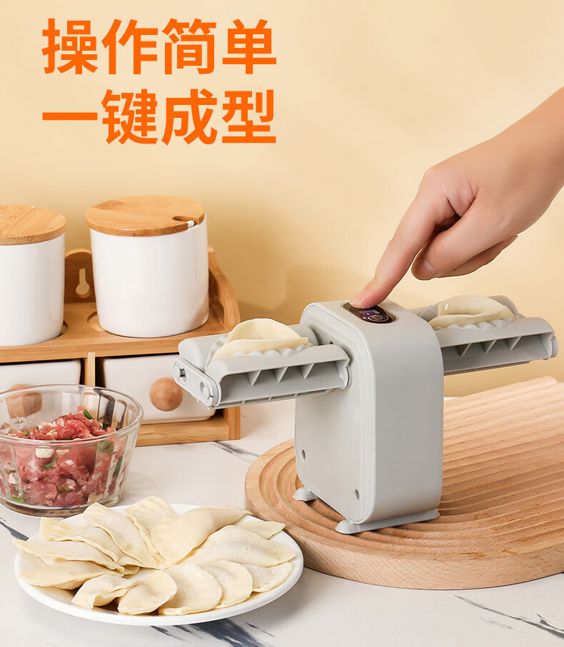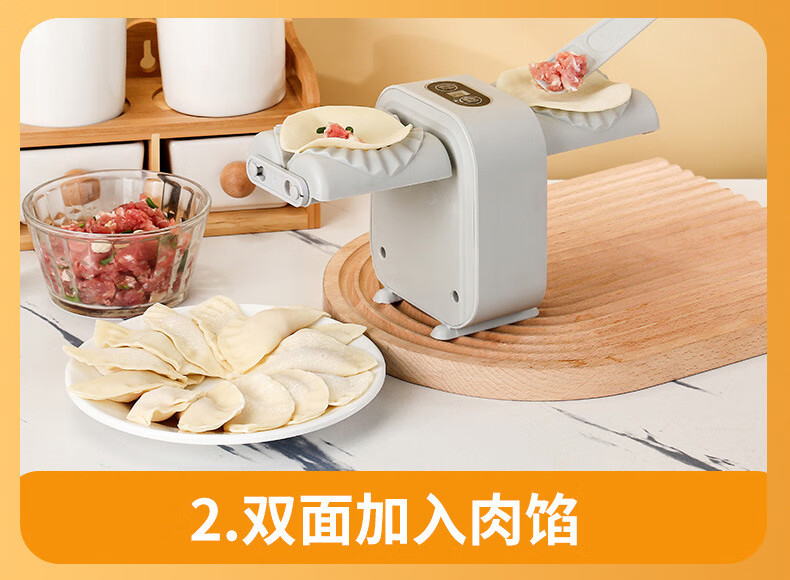 Qinhuo's new dumpling-making artifact, fully automatic household dumpling wrapper machine, lazy man's wireless electric dumpling-making machine, double-head gray, Chinese version