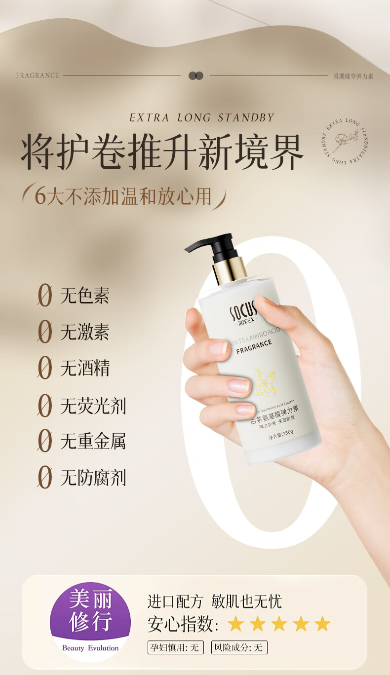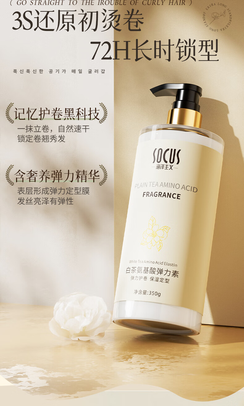 SOCUS elastin for women's curly hair, moisturizing curls, anti-frizz, fluffy styling, long-lasting hair care essence after perm, white tea elastin 350g 1 bottle, natural elasticity, curl protection & freedom of perm