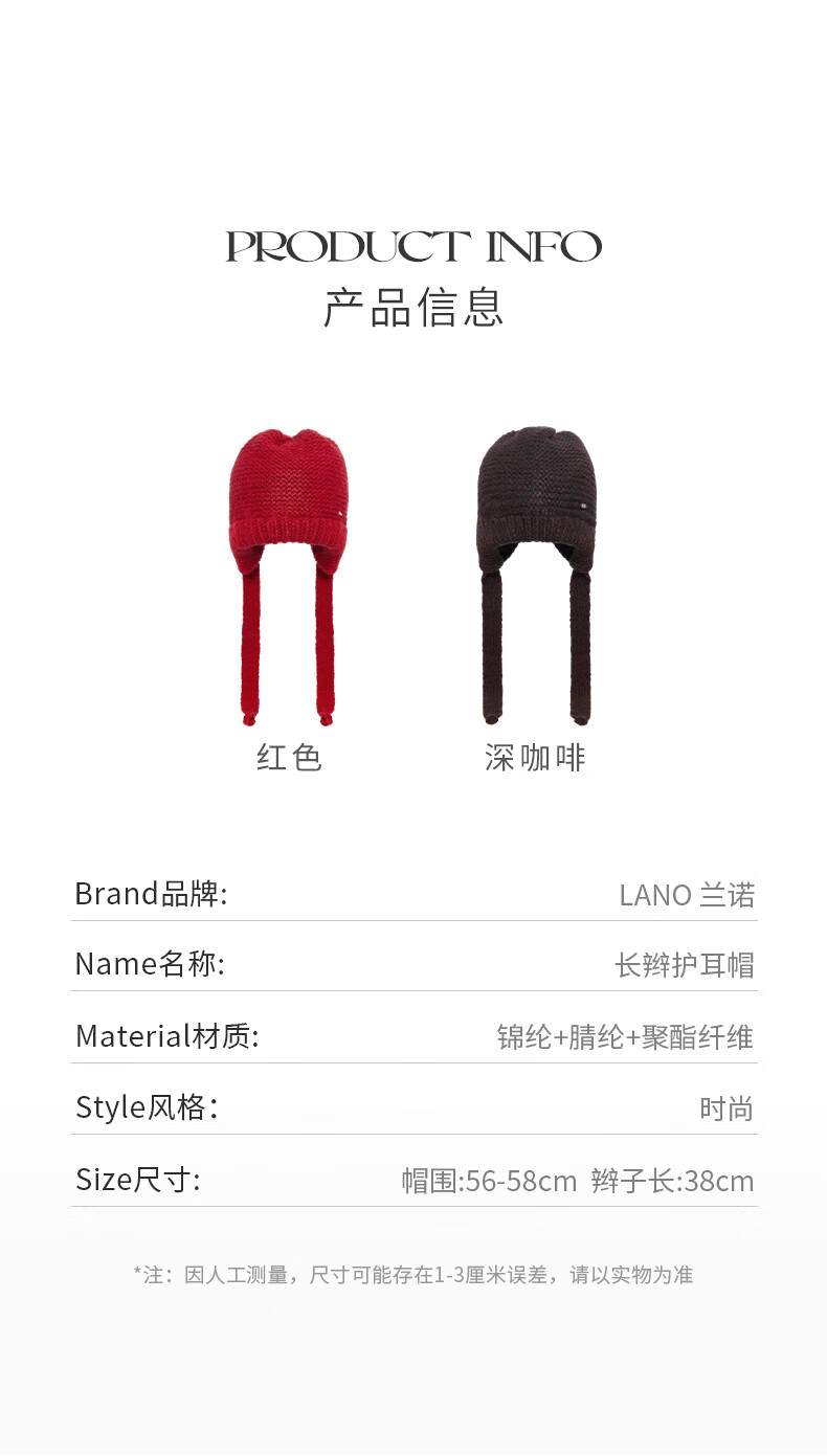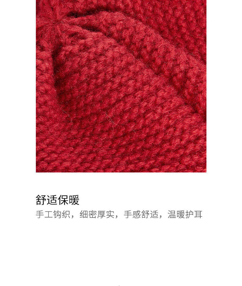 Lanno balaclava knitted woolen hat for women autumn and winter 2024 new Northeast cold protection equipment ear protection hat red M (56-58cm)