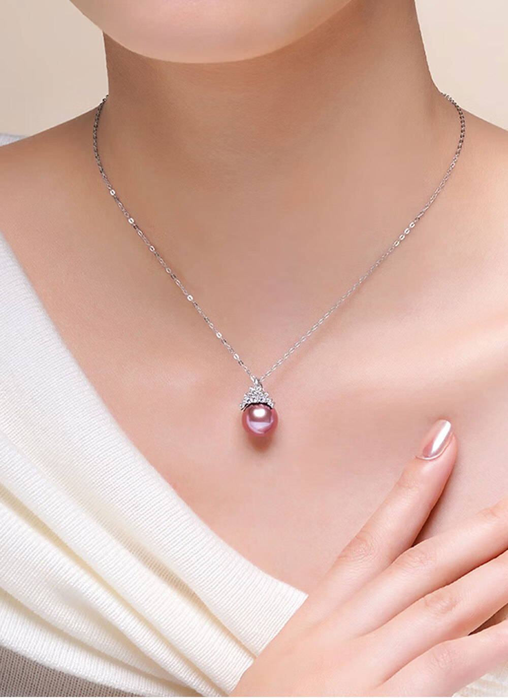 Fortunately, Pearl Pendant S925 Silver Freshwater Edison Purple Pearl Ice Queen Necklace Pendant Birthday Gift S925 Silver White Purple Edison Ice Queen Pendant 11-12mm Free S925 Silver Chain 40+3cm