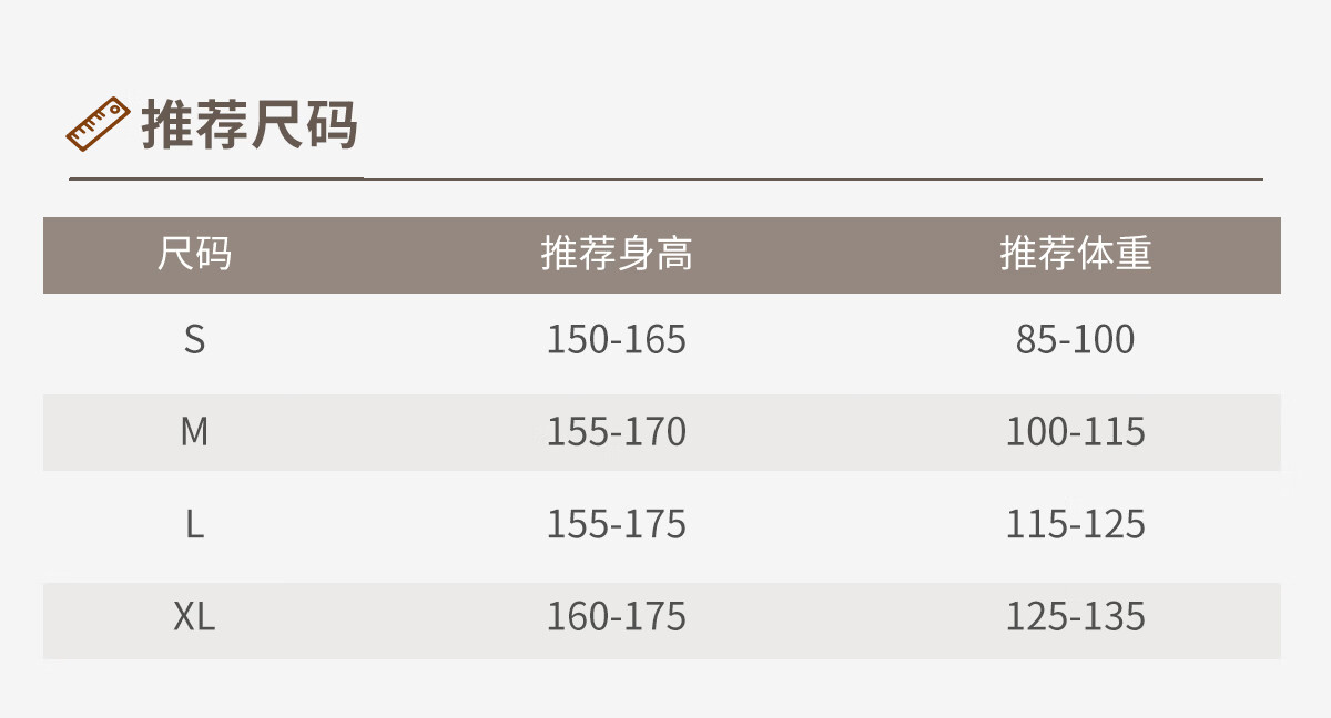 China (cm) 165 / 88-90 170 / 96-98 175 / 108-110 180 / 118-122 185 / 126-130