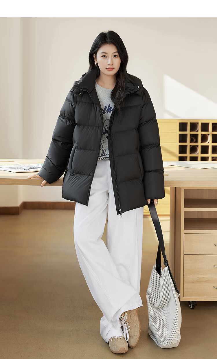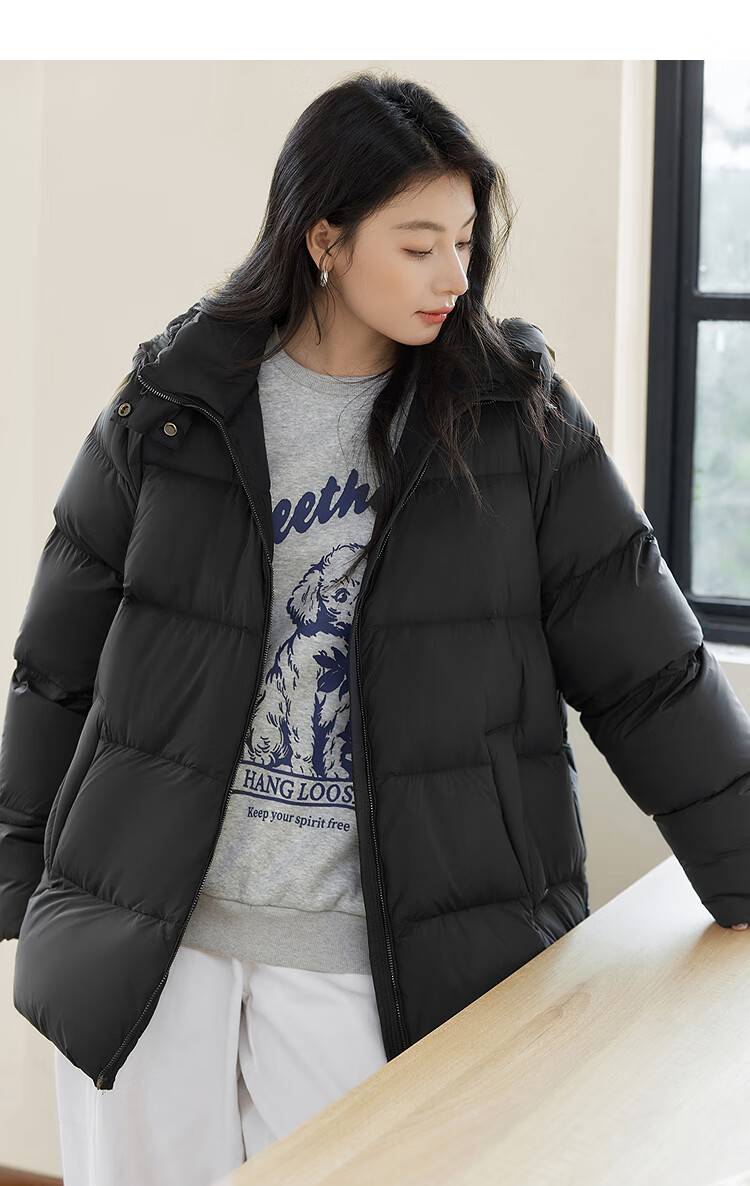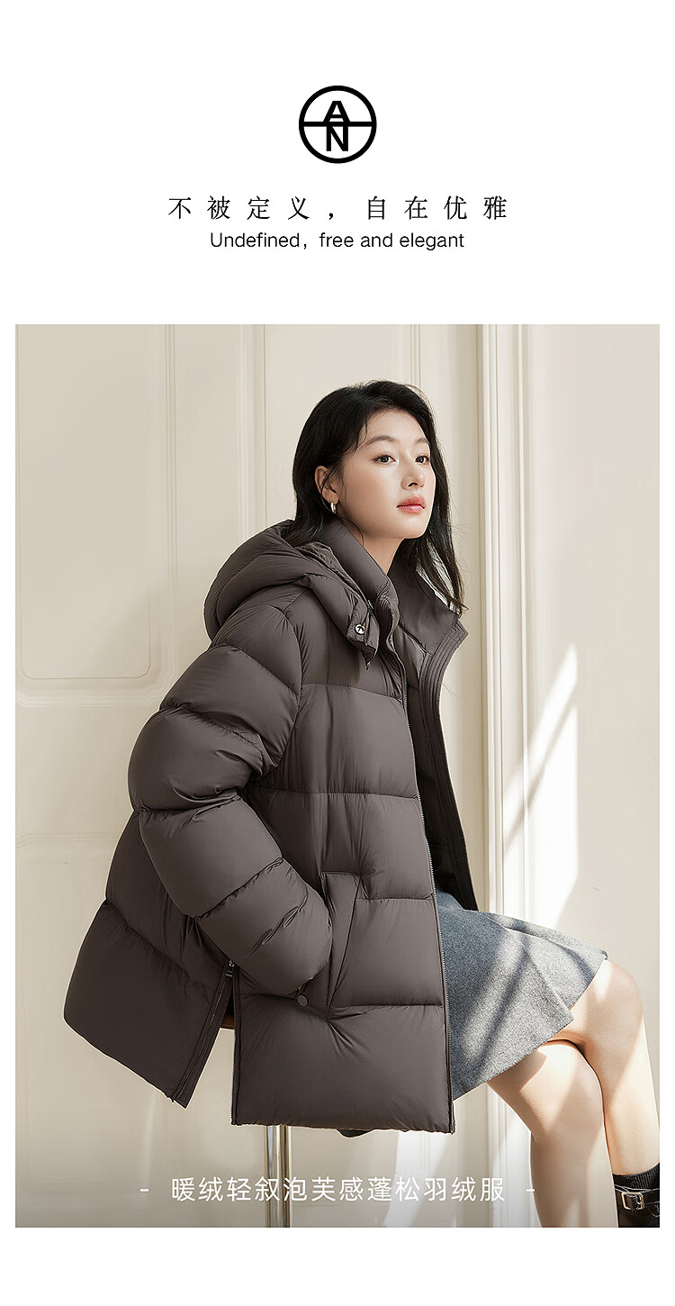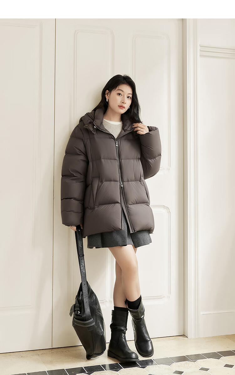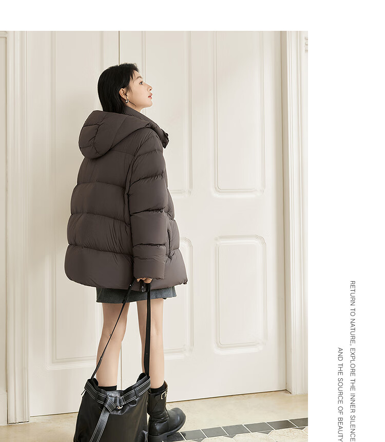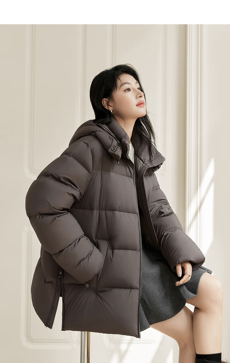 Dialogue (DUIBAI) Large Size Series Cloud Puff Fluffy Down Jacket Winter New Slightly Fat MM Warm Hooded Bread Jacket Dark Brown M Recommended Weight 110-125