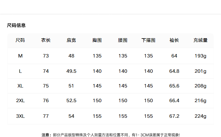 China (cm) 165 / 88-90 170 / 96-98 175 / 108-110 180 / 118-122 185 / 126-130