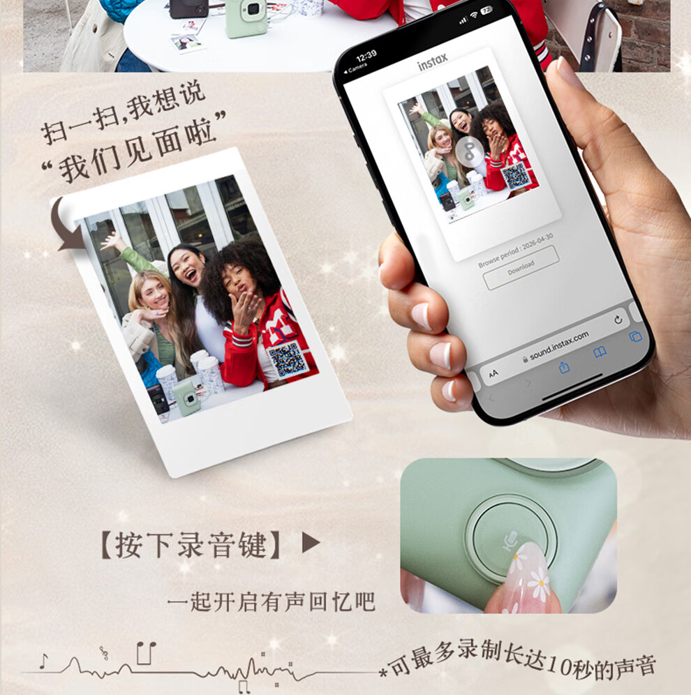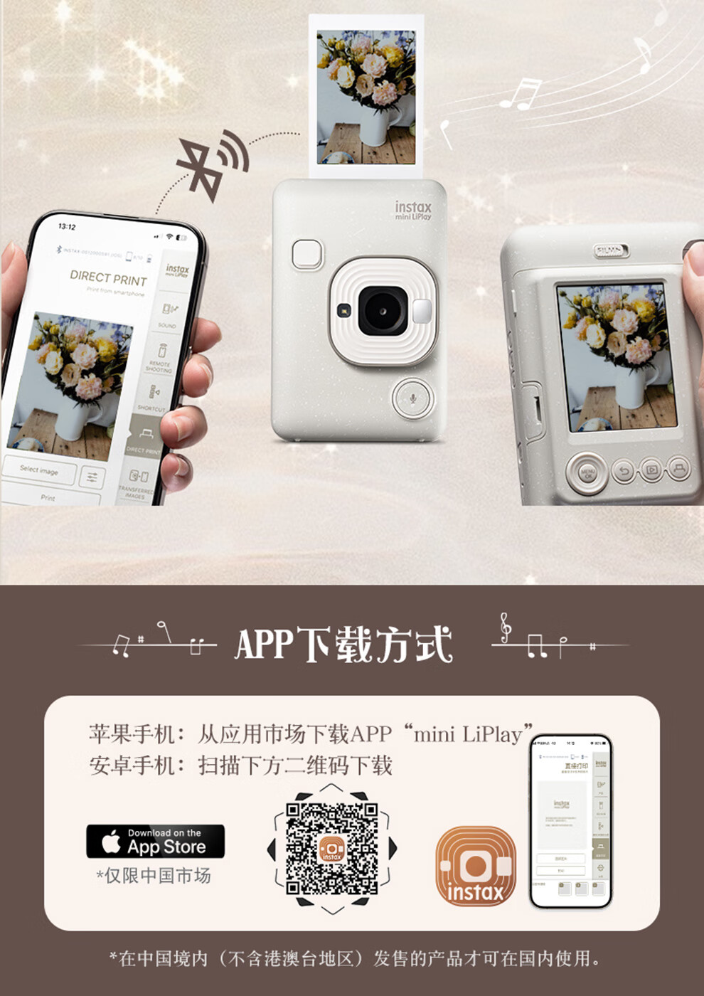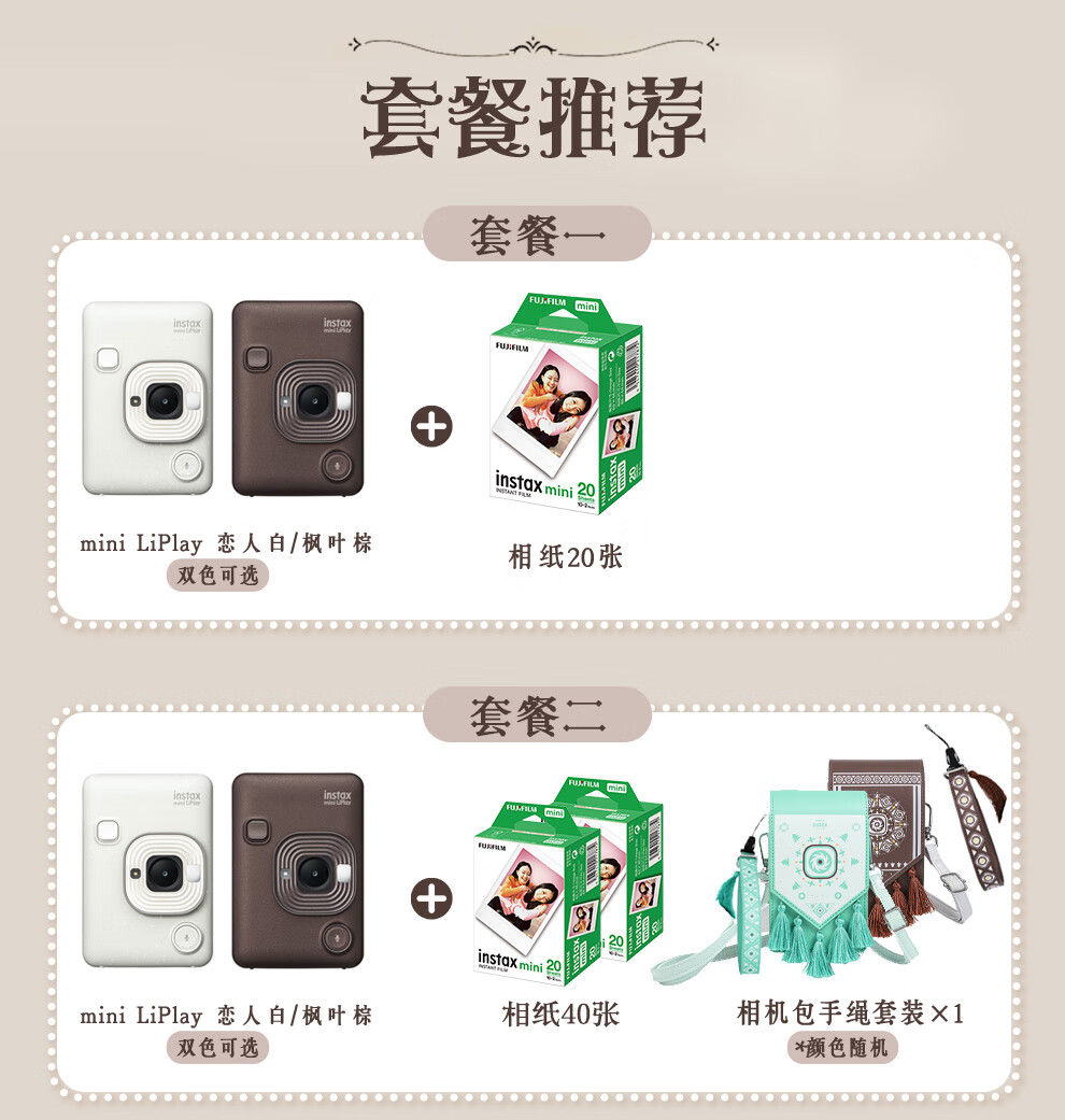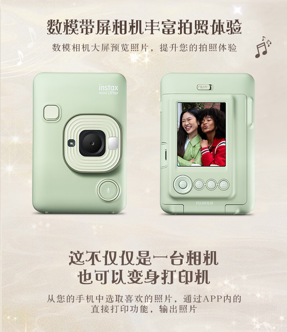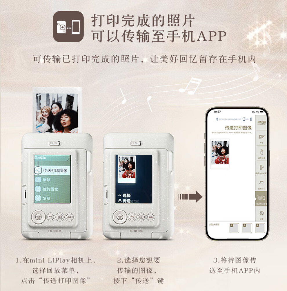FUJIFILM instax Liplay digital-analog all-in-one instant printer 3-inch photo paper LiPlay lover white + 3-inch double pack, including standard + 20 pieces of photo paper, official standard