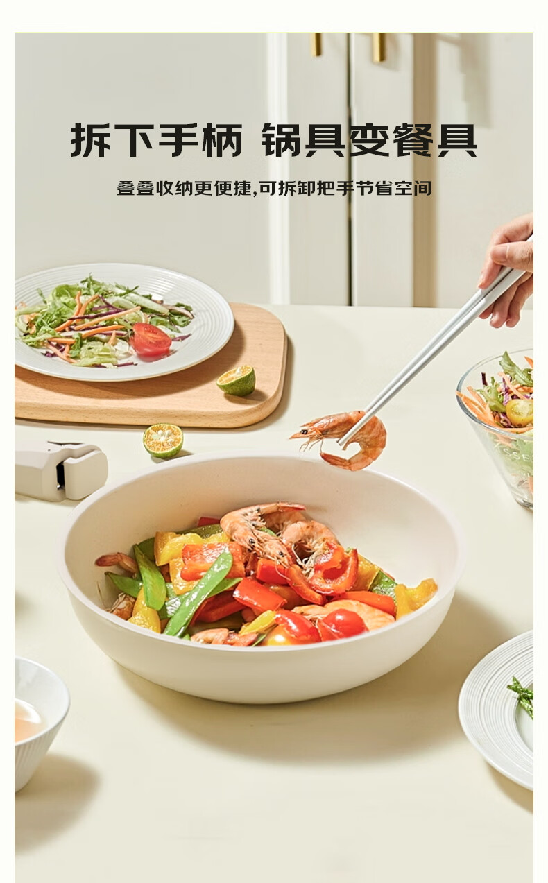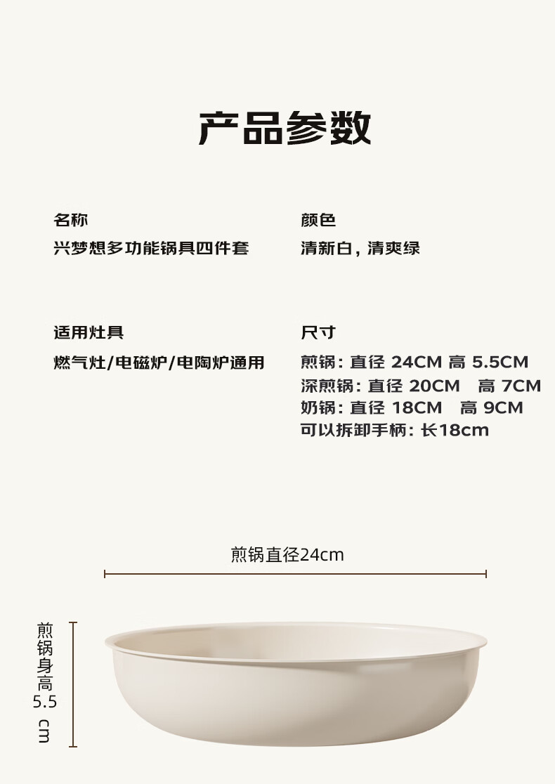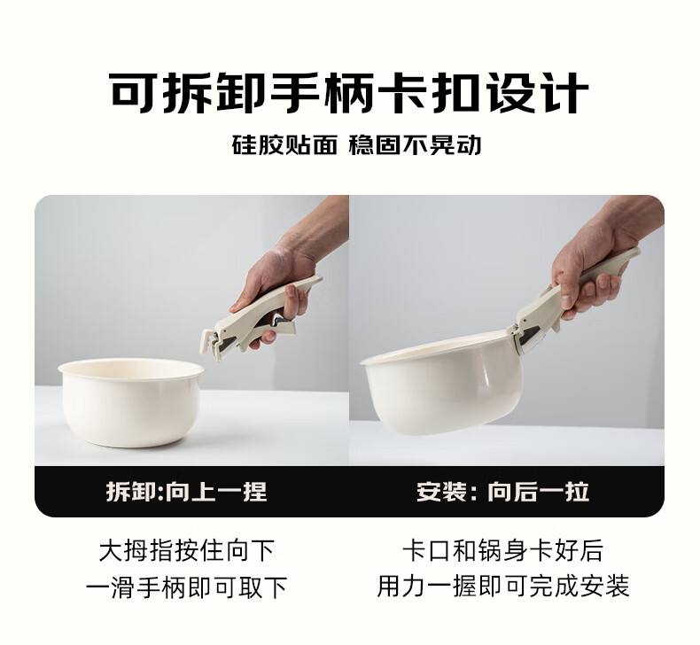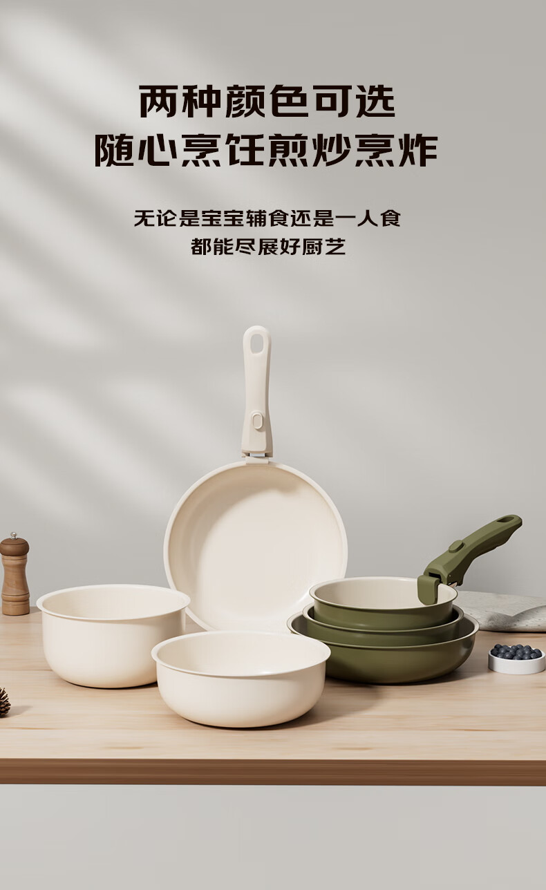 NEW DREAM ceramic non-stick pot set, wok, soup pot and milk pot three-piece set with detachable handle, multi-functional home kitchen set, newly upgraded detachable handle, dark green, 3-piece set