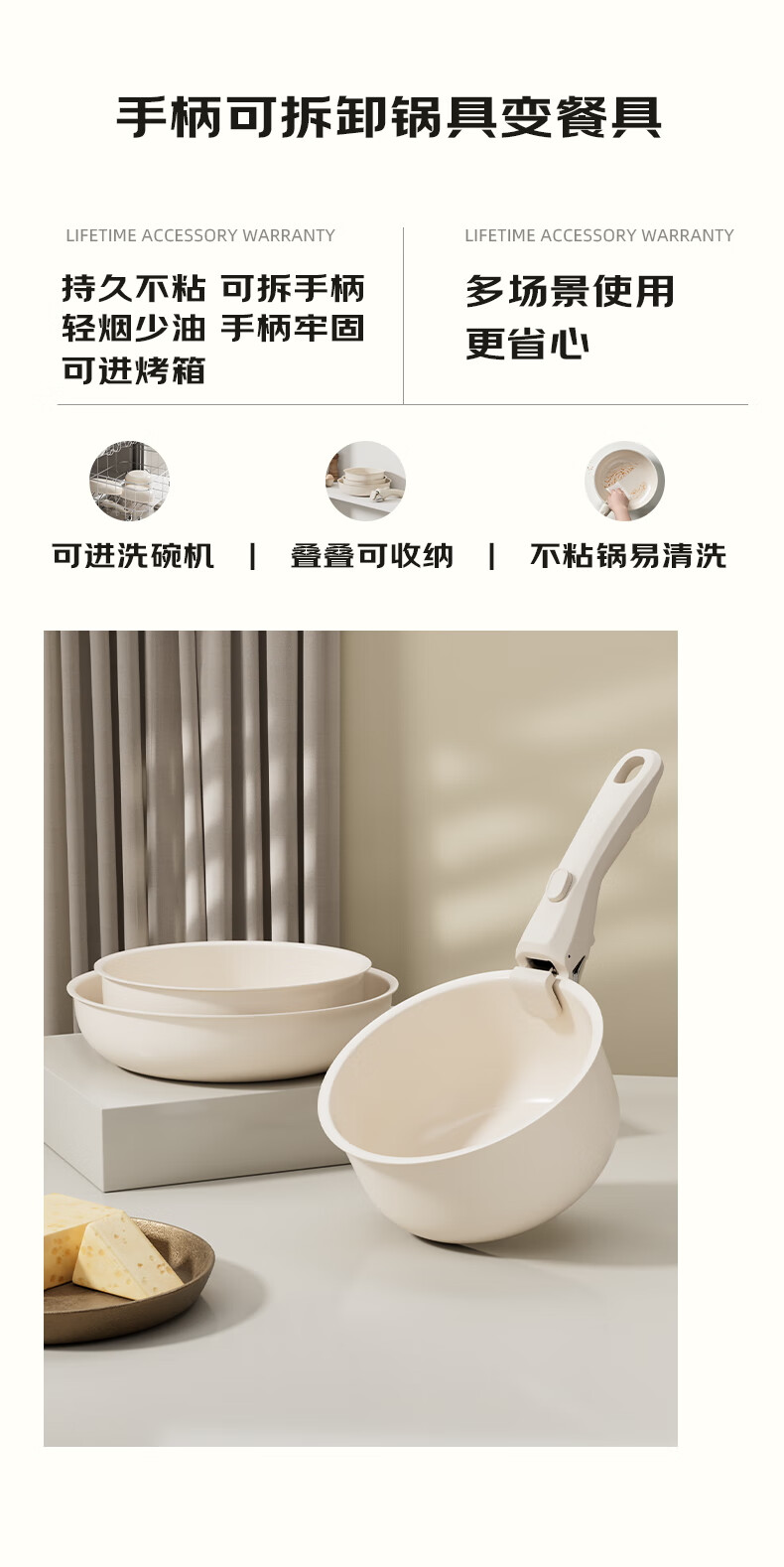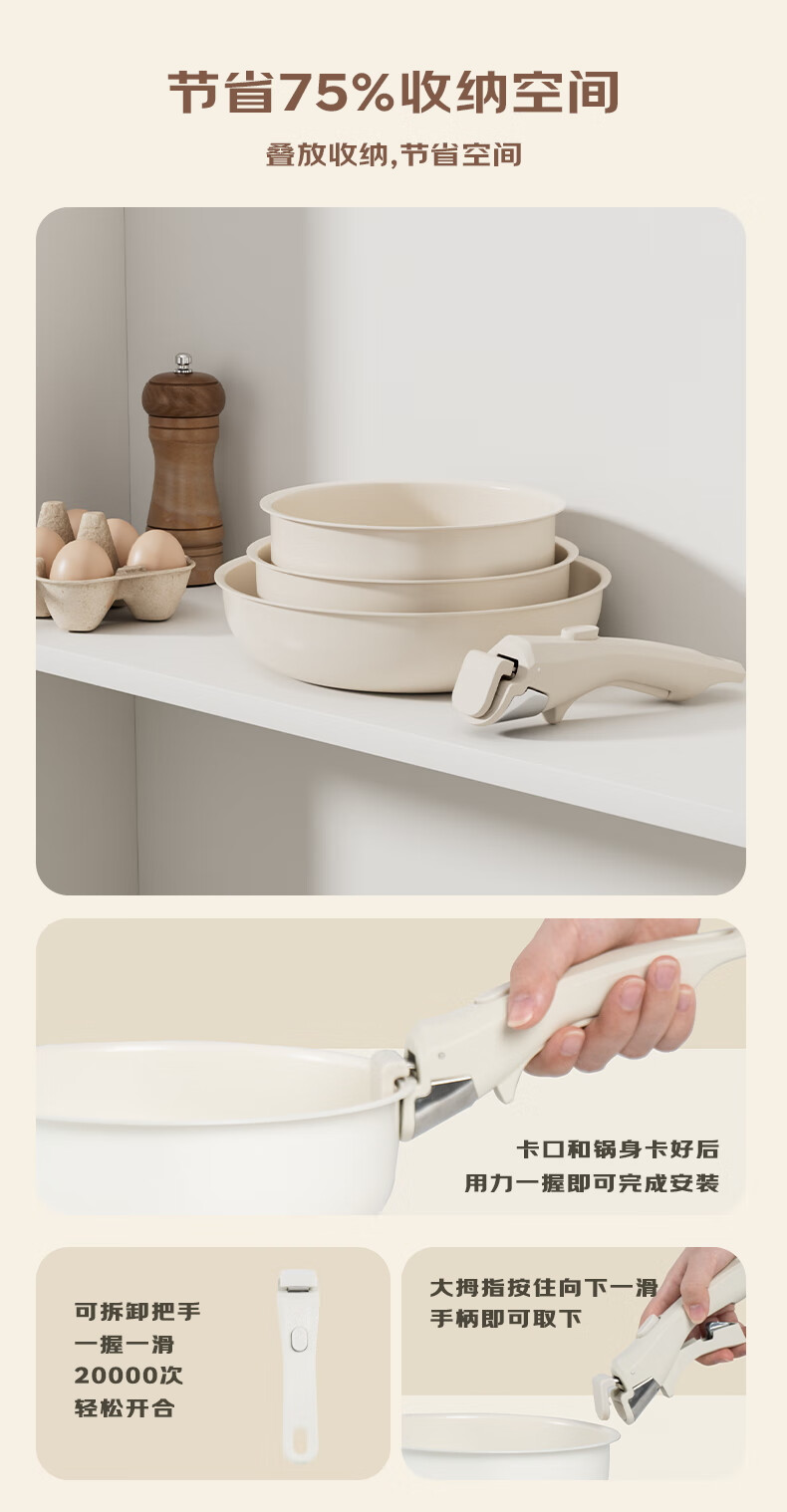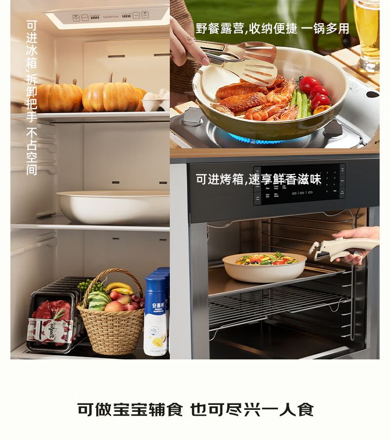 NEW DREAM ceramic non-stick pot set, wok, soup pot and milk pot three-piece set with detachable handle, multi-functional home kitchen set, newly upgraded detachable handle, dark green, 3-piece set