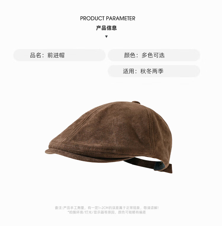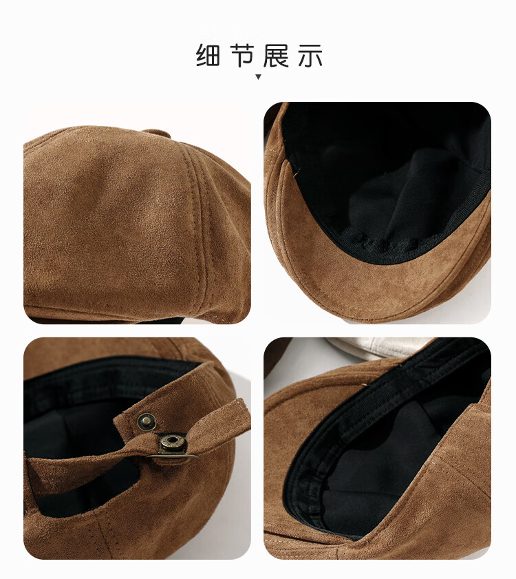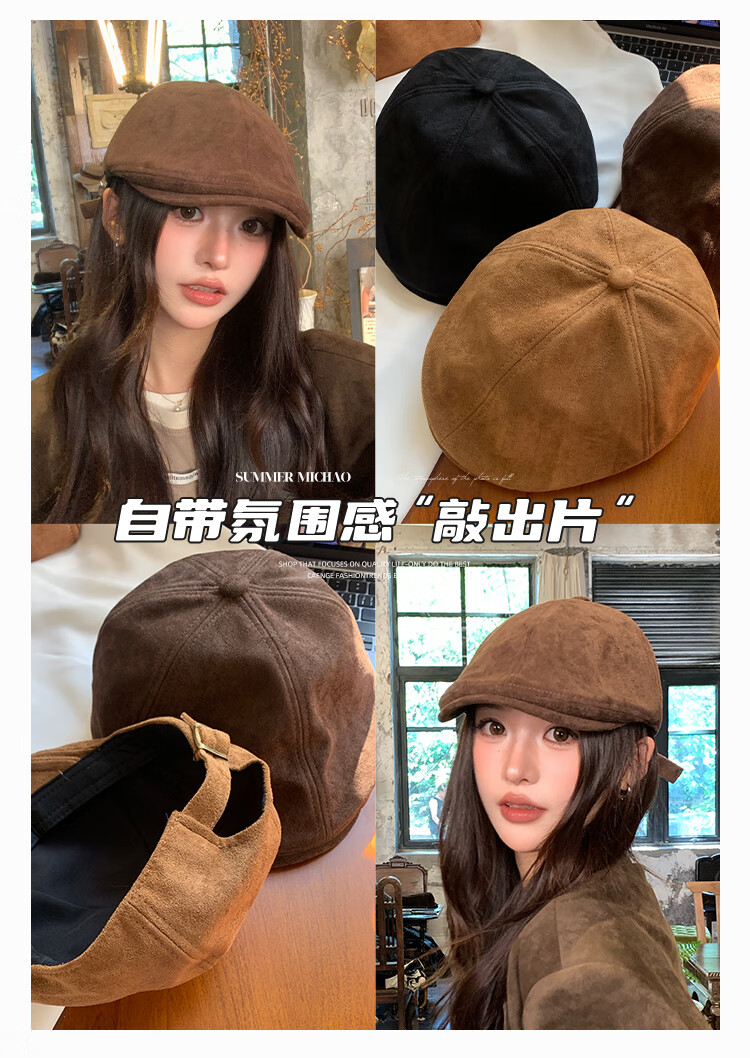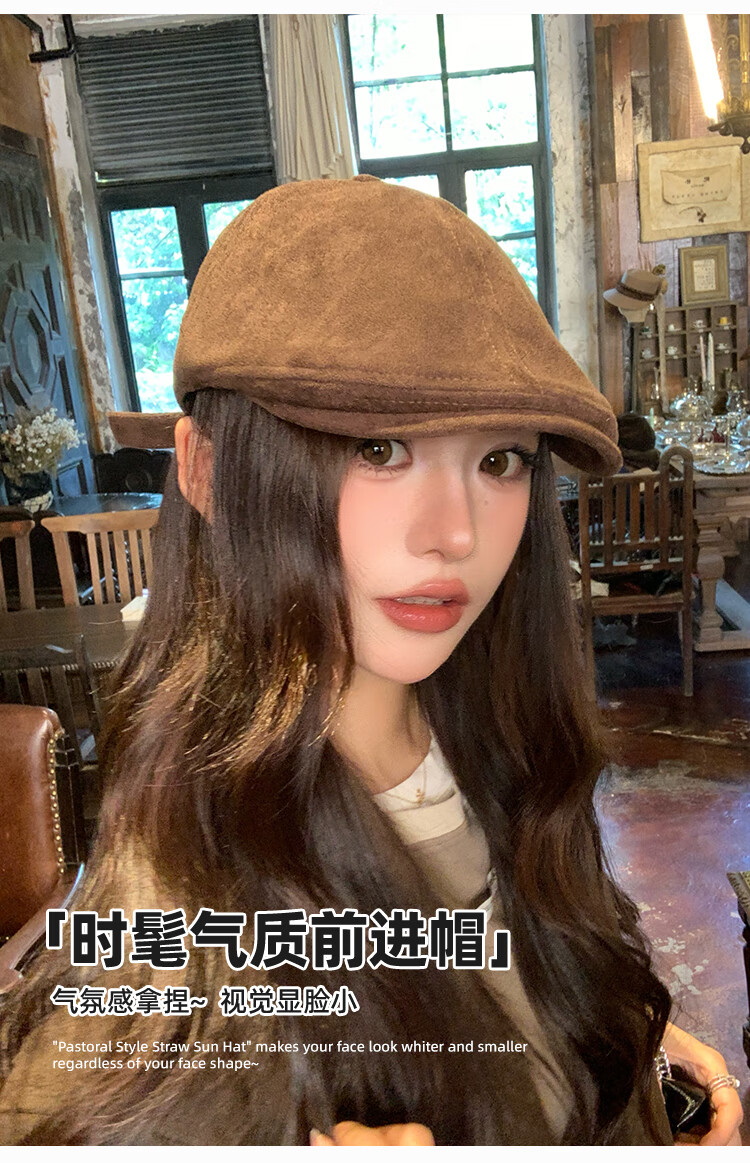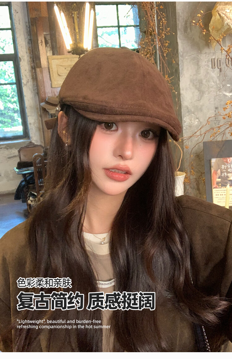 Zhunwu Bere Hat Women's 2025 New Retro Progressive Hat Autumn and Winter Big Head Circumference Showing Face Small Newsboy Cap Peaked Cap Men Brown One Size 55-59cm