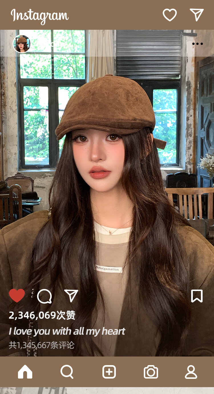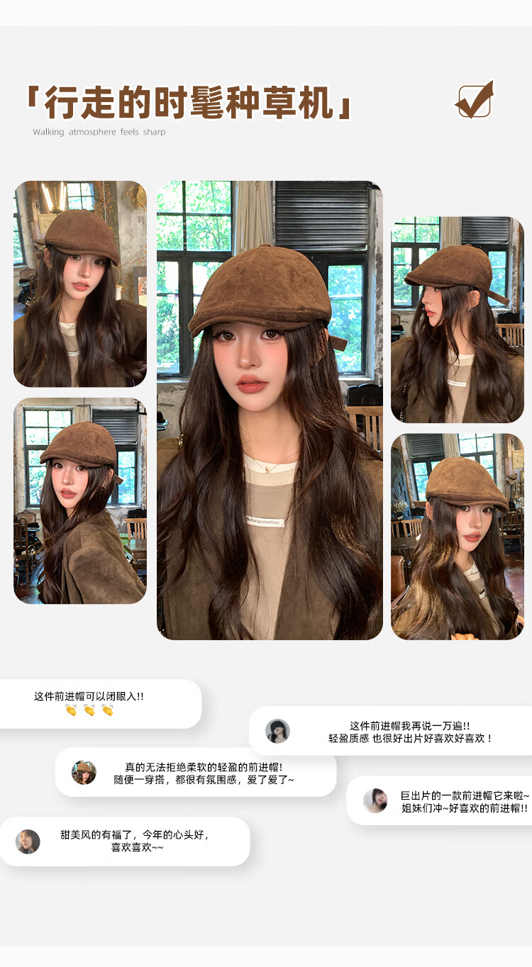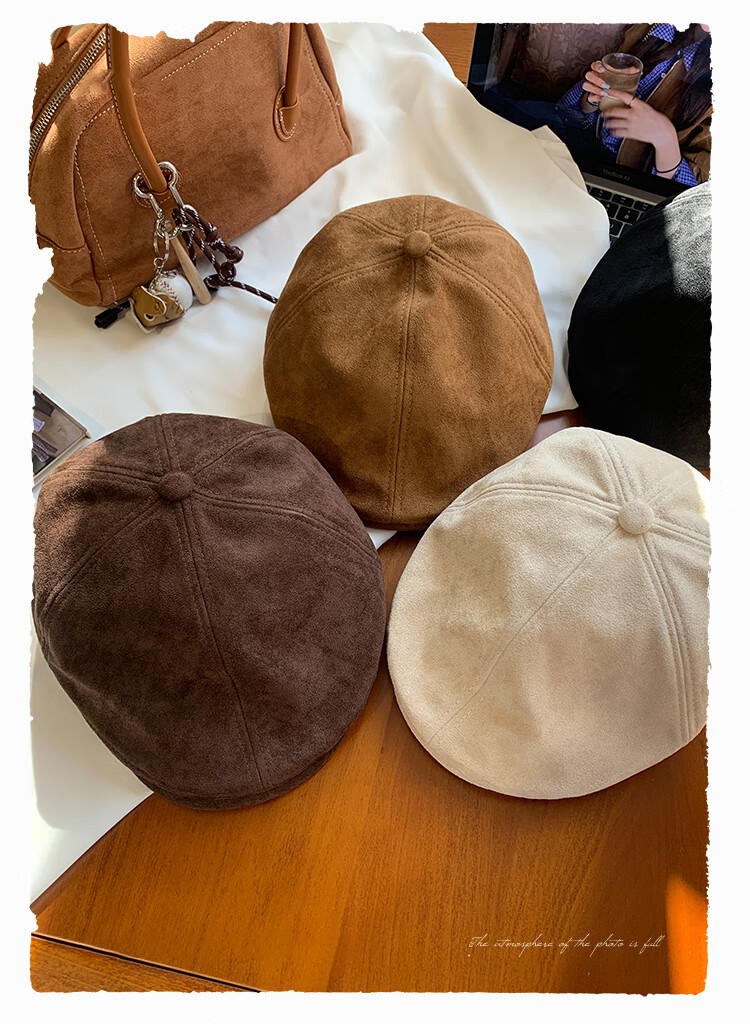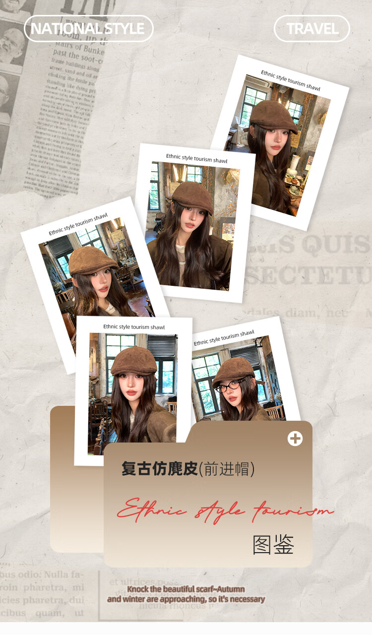 Zhunwu Bere Hat Women's 2025 New Retro Progressive Hat Autumn and Winter Big Head Circumference Showing Face Small Newsboy Cap Peaked Cap Men Brown One Size 55-59cm