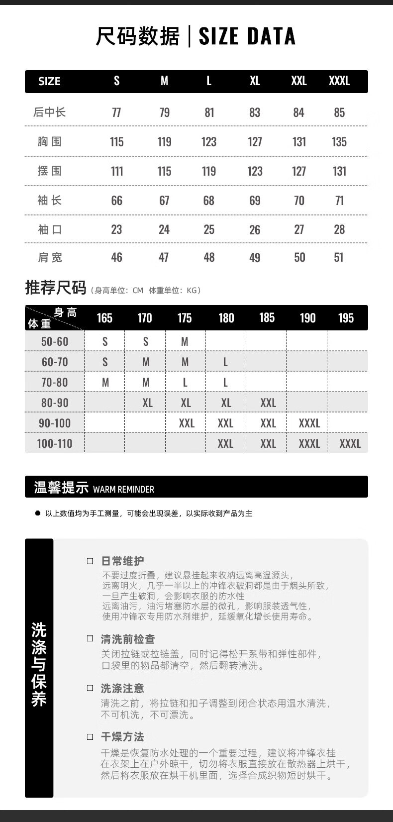 China (cm) 165 / 88-90 170 / 96-98 175 / 108-110 180 / 118-122 185 / 126-130