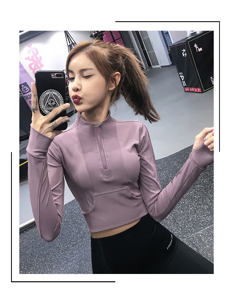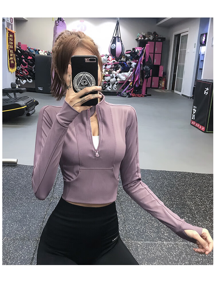 LULULMCCTN Yoga Wear Women's Long Sleeve Half-Zip Running Fitness Wear Top Pilates Professional Training Sports Jacket Purple S