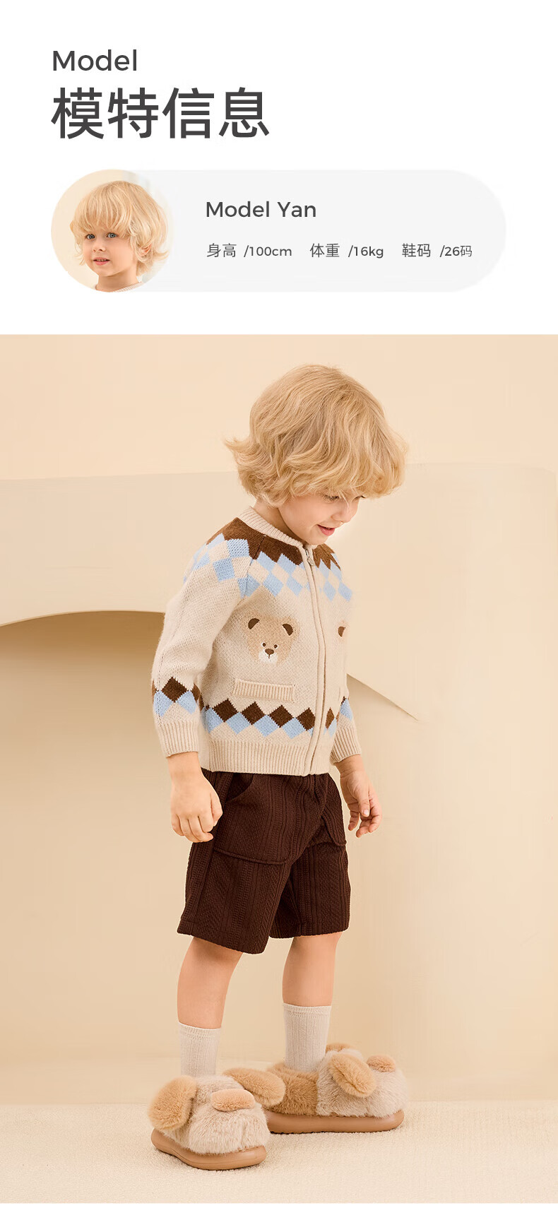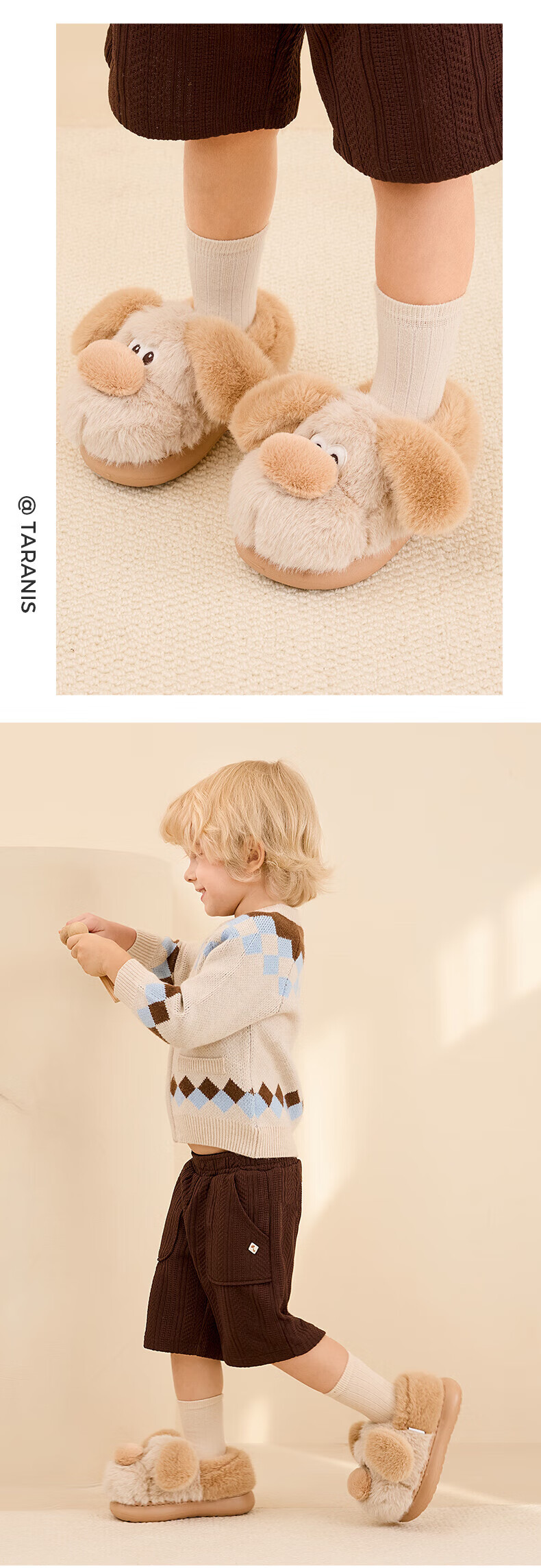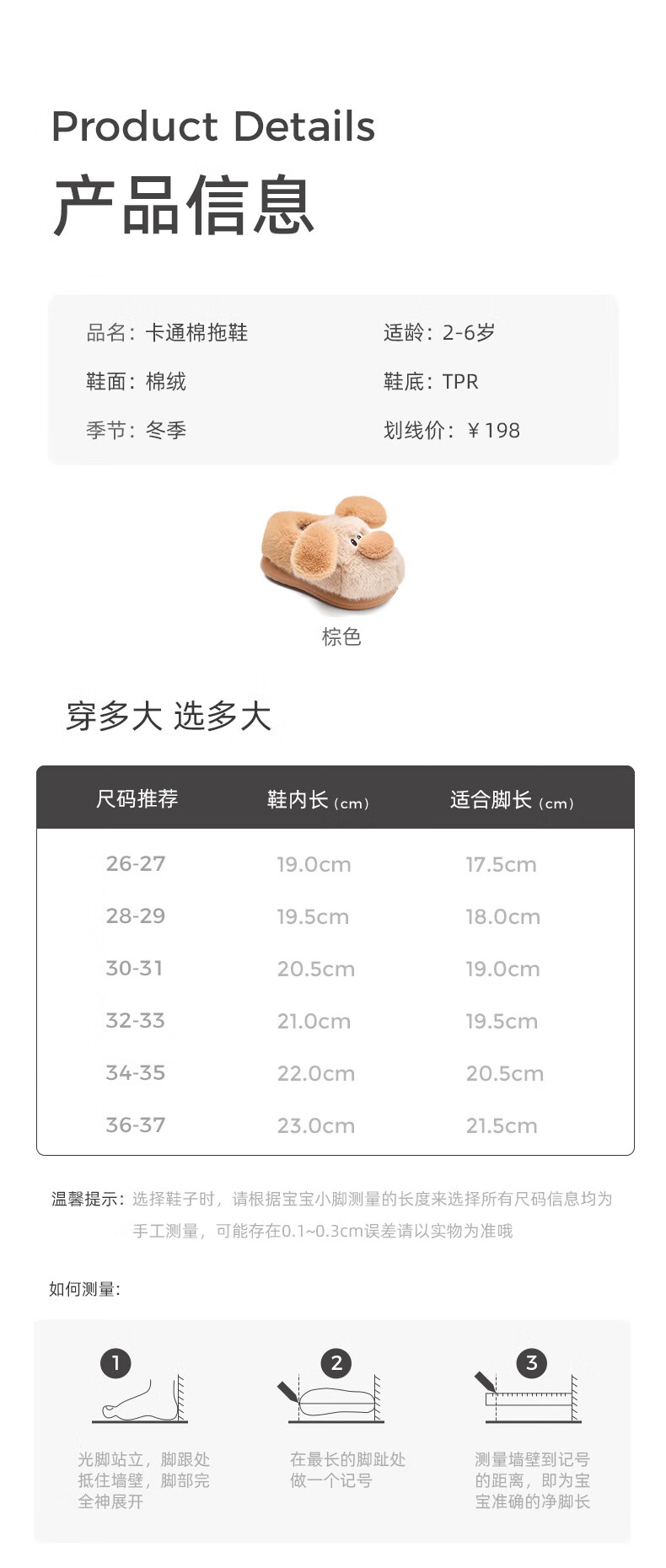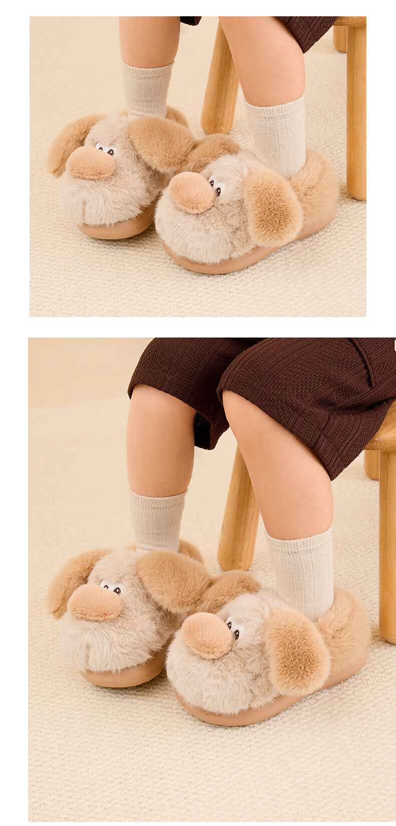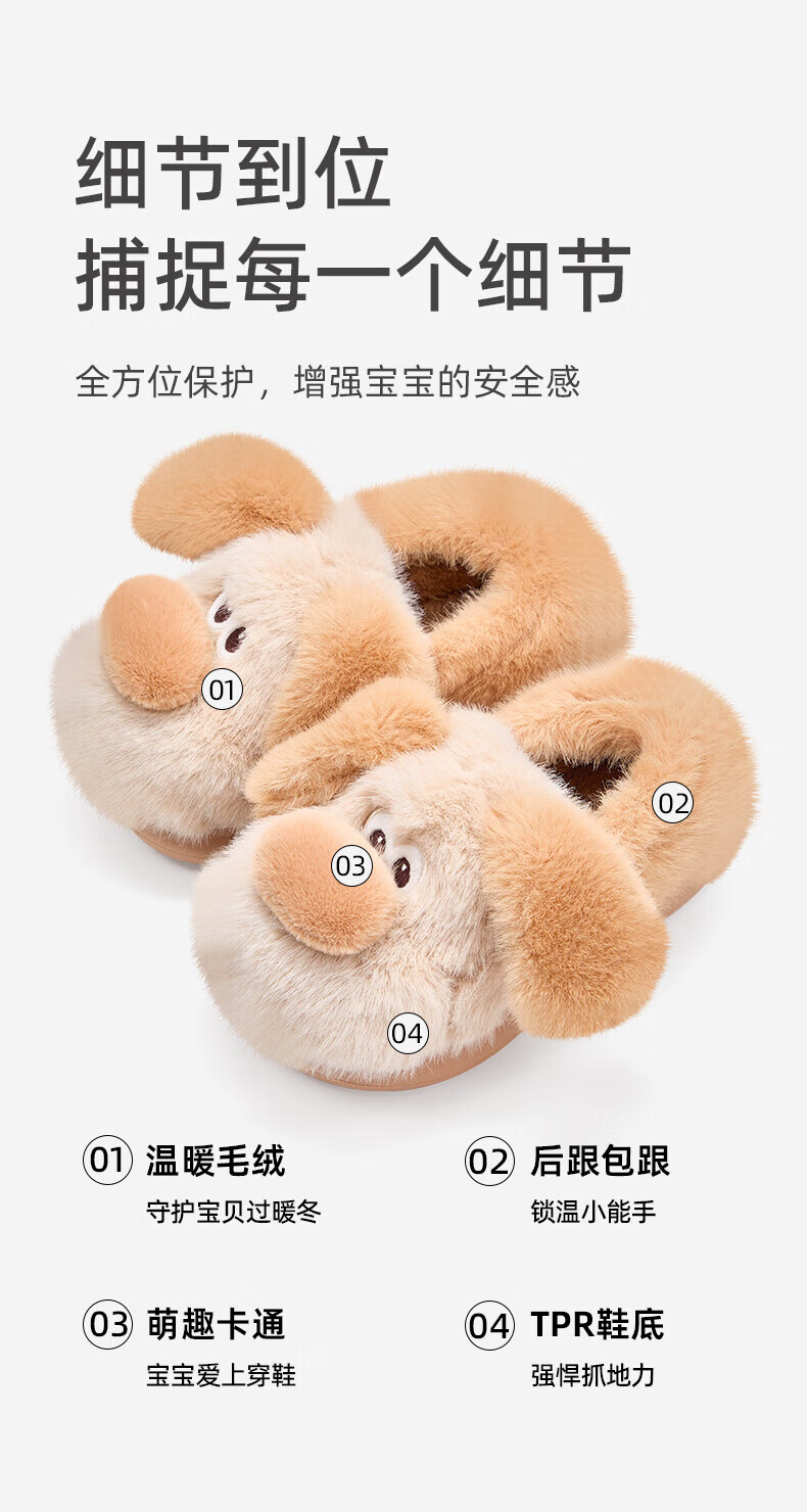 Tyrannis winter new children's cotton slippers boys lightweight non-slip cotton shoes girls cute indoor home shoes brown 34-35 inner length 22.0cm suitable for feet 20.5cm long