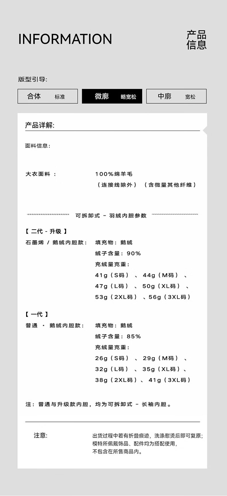 China (cm) 165 / 88-90 170 / 96-98 175 / 108-110 180 / 118-122 185 / 126-130