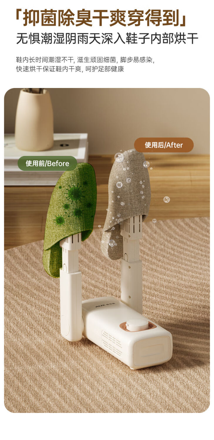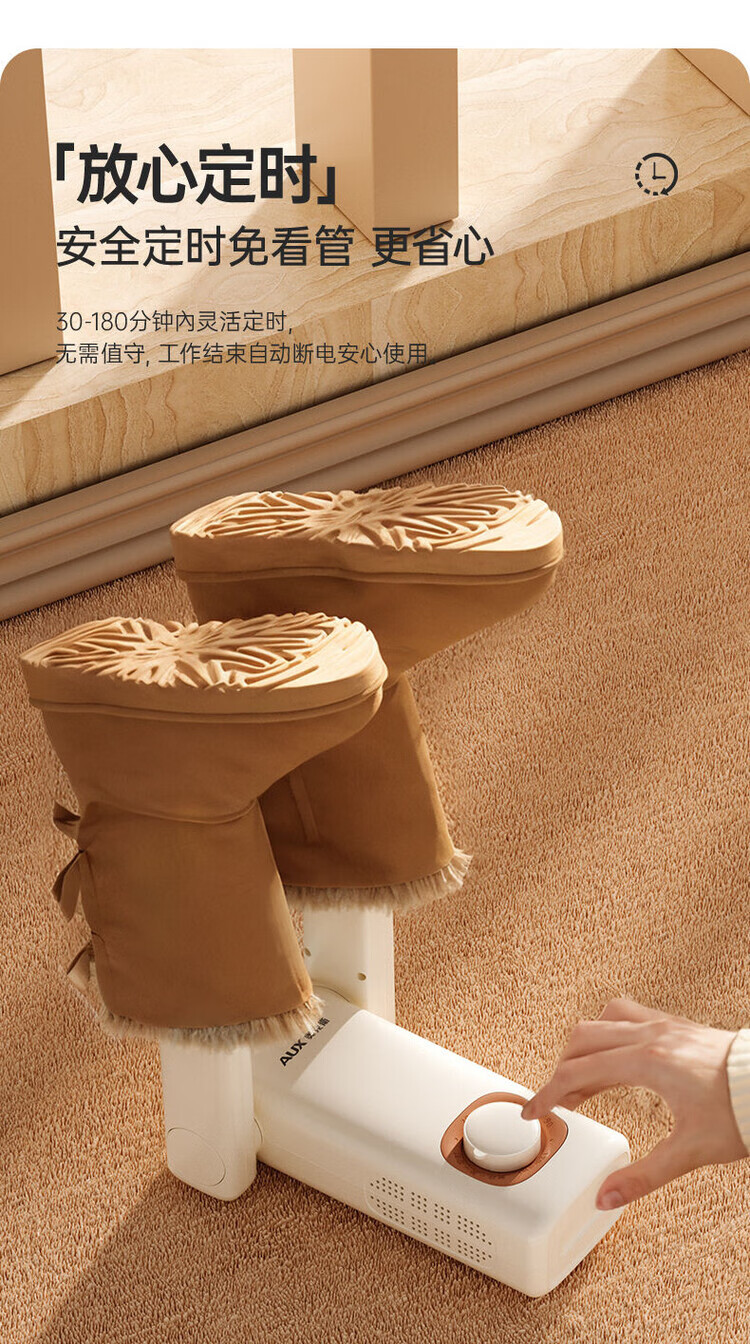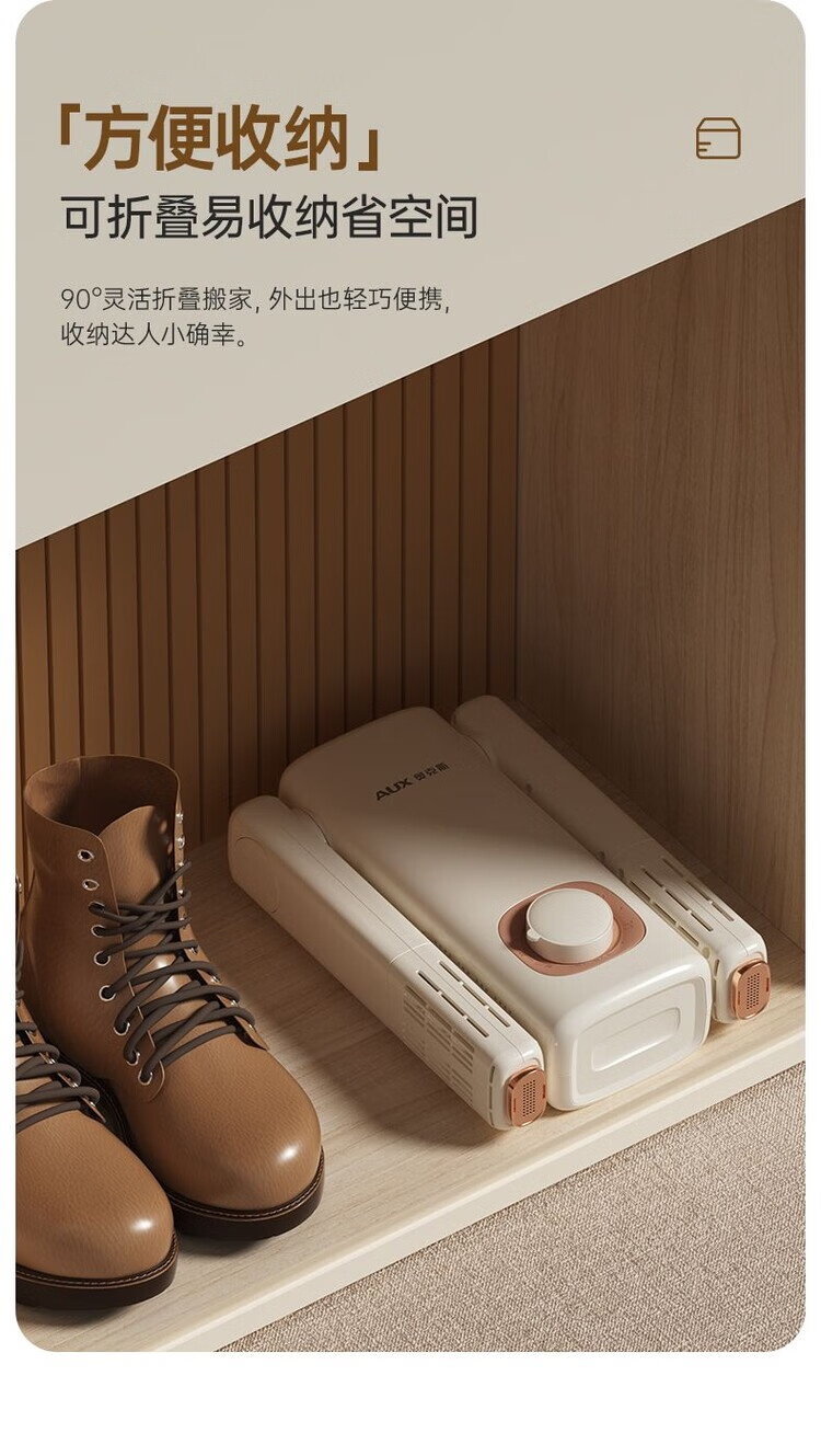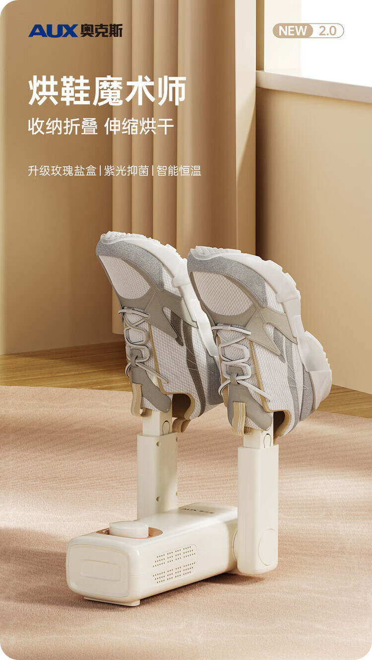 AUX shoe dryer, sterilization, deodorization, quick-heat shoe dryer, student dormitory timed folding home shoe warmer, upgraded model, timer + telescopic + salt box*2