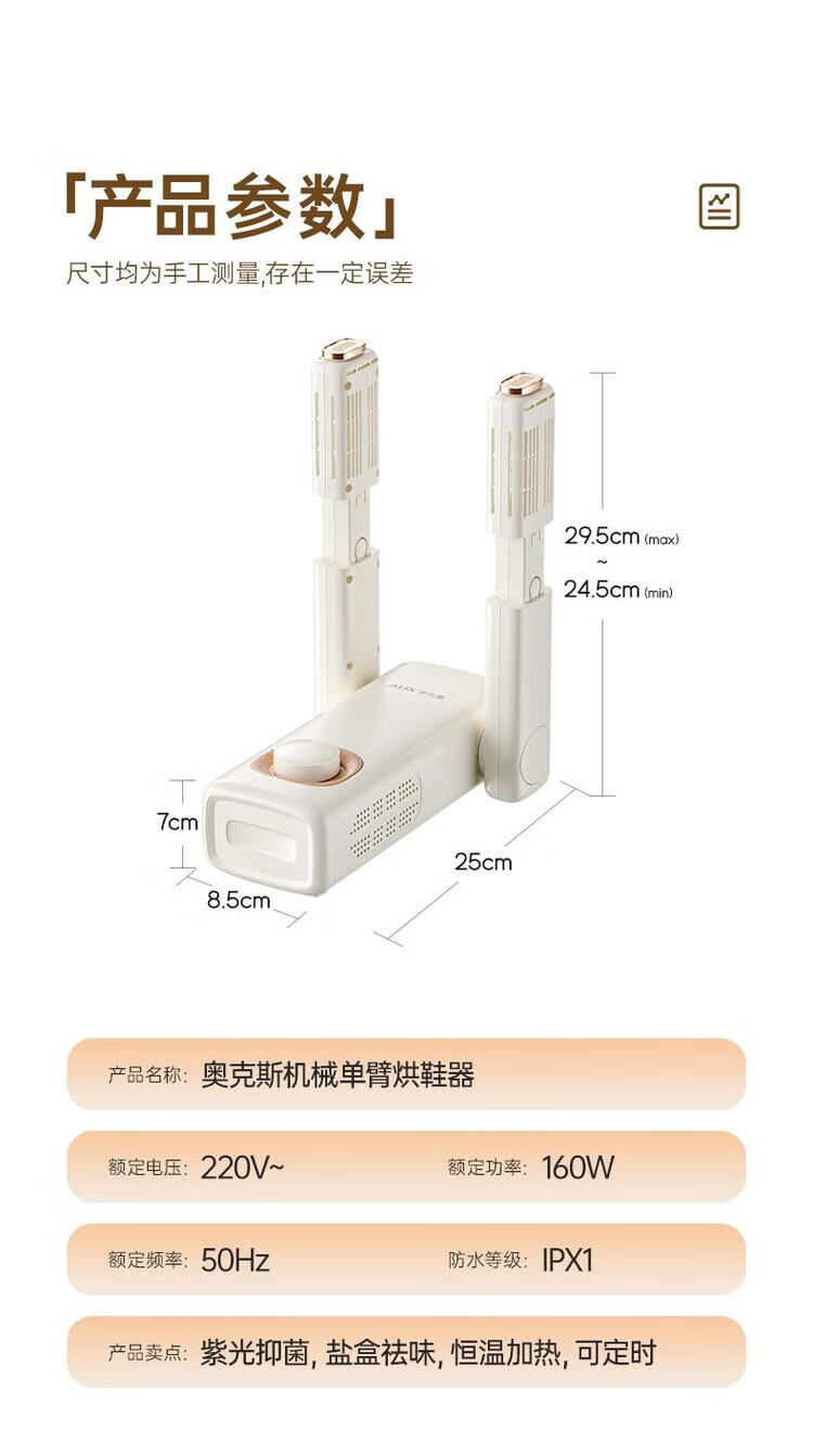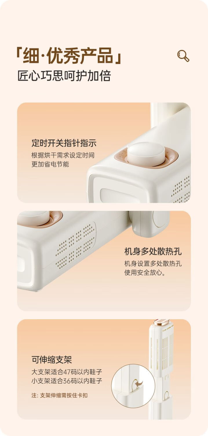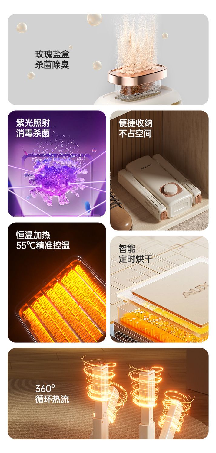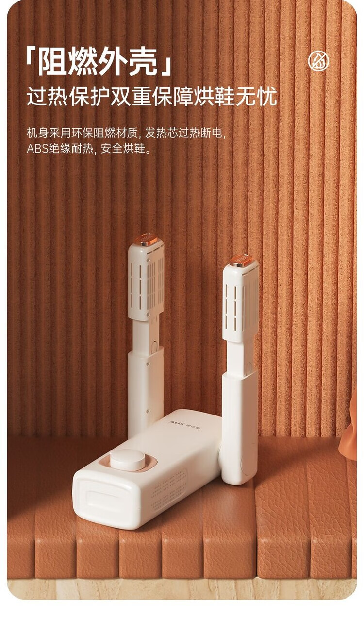 AUX shoe dryer, sterilization, deodorization, quick-heat shoe dryer, student dormitory timed folding home shoe warmer, upgraded model, timer + telescopic + salt box*2