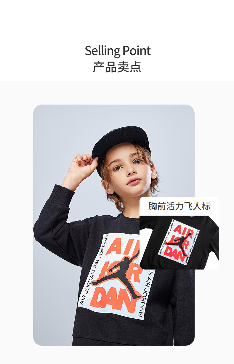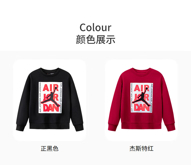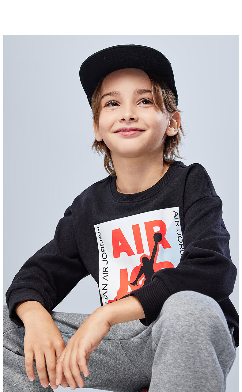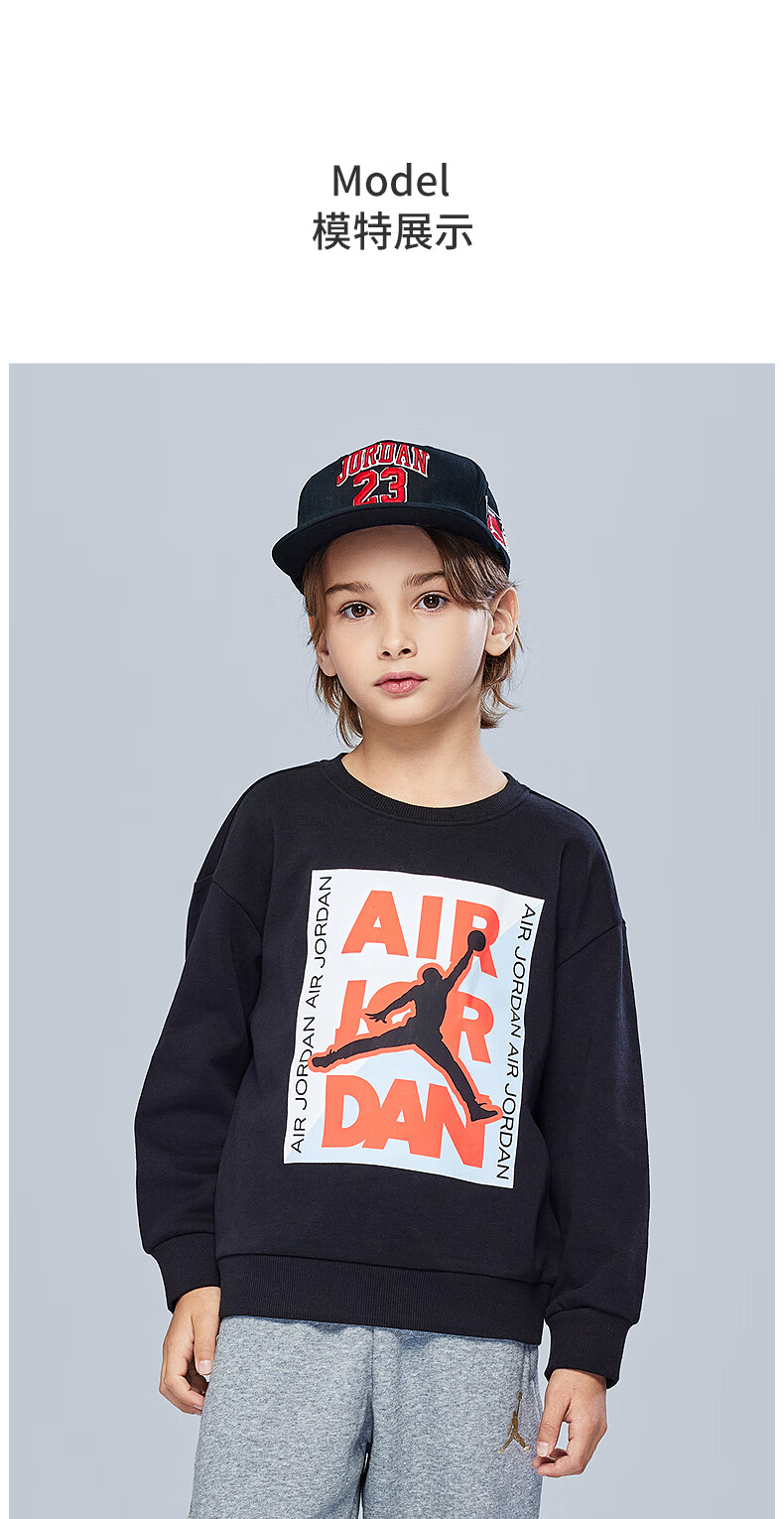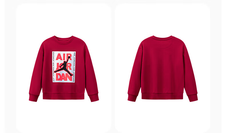 NIKE JORDAN Nike AJ boys' sweatshirt, plus velvet to keep warm, 2025 winter new comfortable children's clothes, Jester Red 120/60 Recommended height 110-116cm