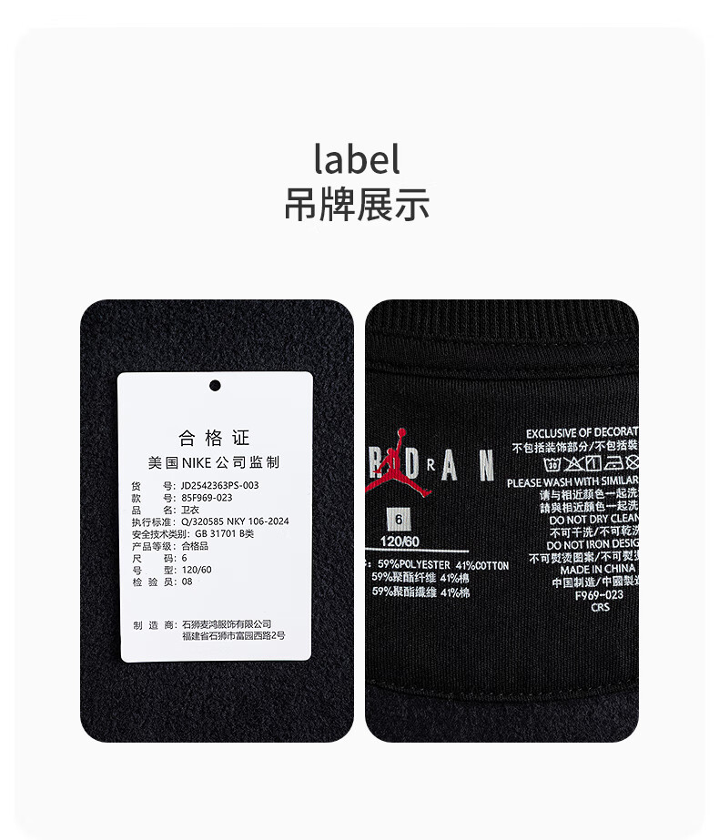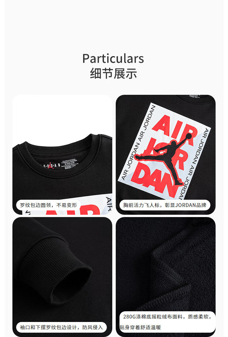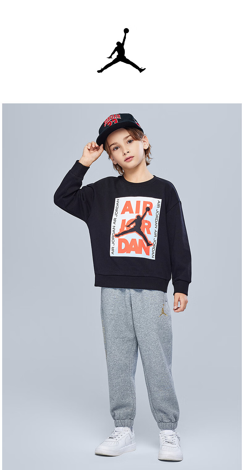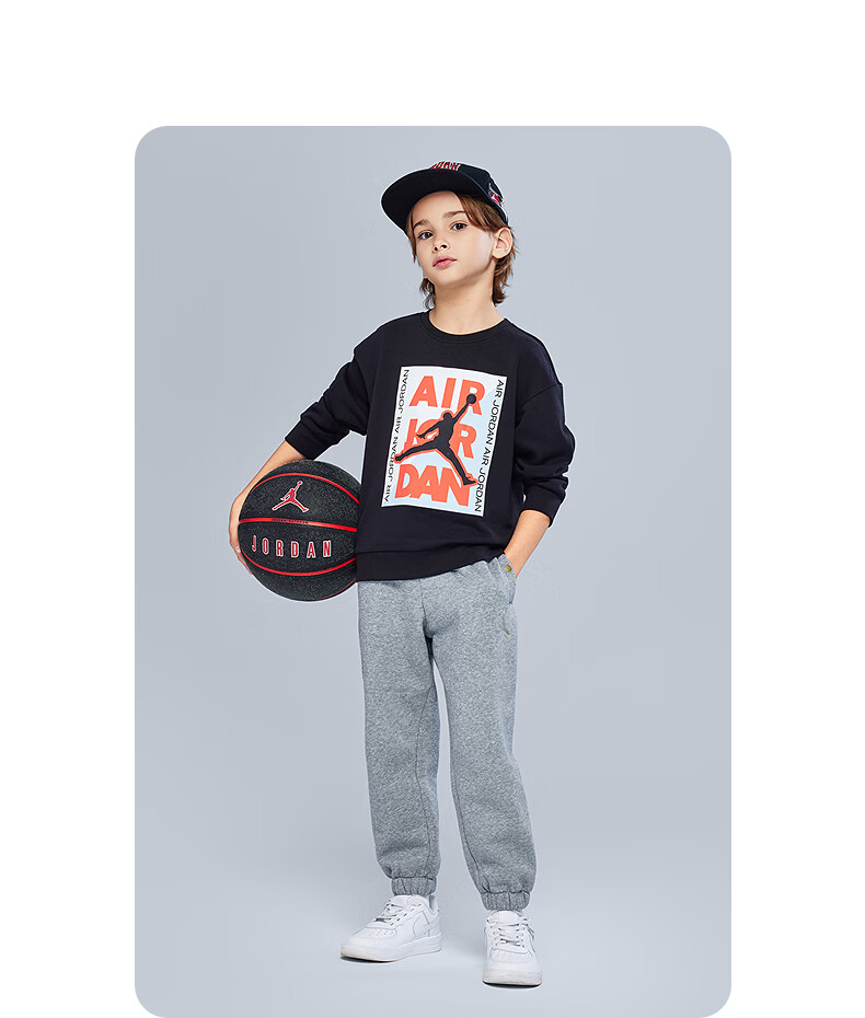 NIKE JORDAN Nike AJ boys' sweatshirt, plus velvet to keep warm, 2025 winter new comfortable children's clothes, Jester Red 120/60 Recommended height 110-116cm