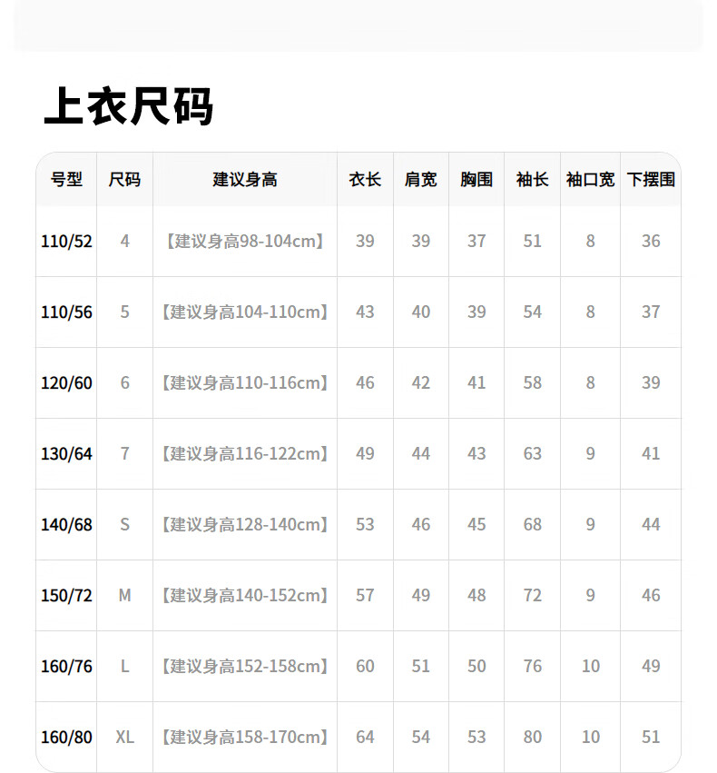 China (cm) 160-165/84-86 165-170 / 88-90 167-172 / 92-96 168-173 / 98-102 170-176 / 106-110