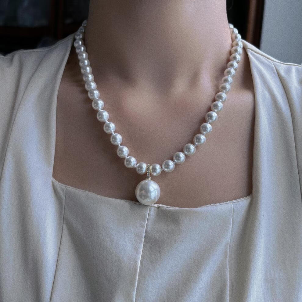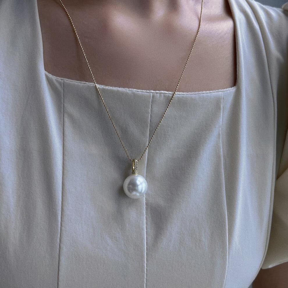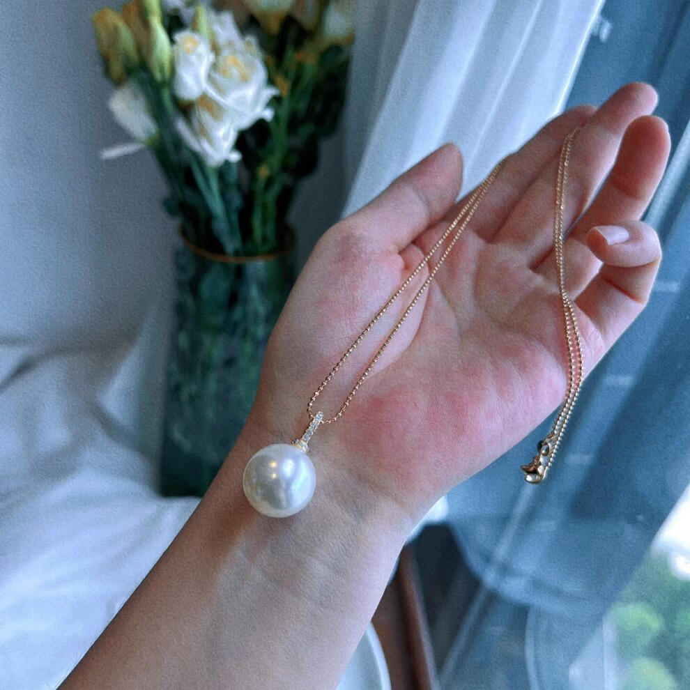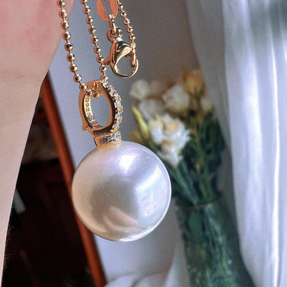 Zhou Taisheng cold light imitation Australian white pearl pendant pacifier style deep sea pearl necklace women's 925 silver buckle pendant gold