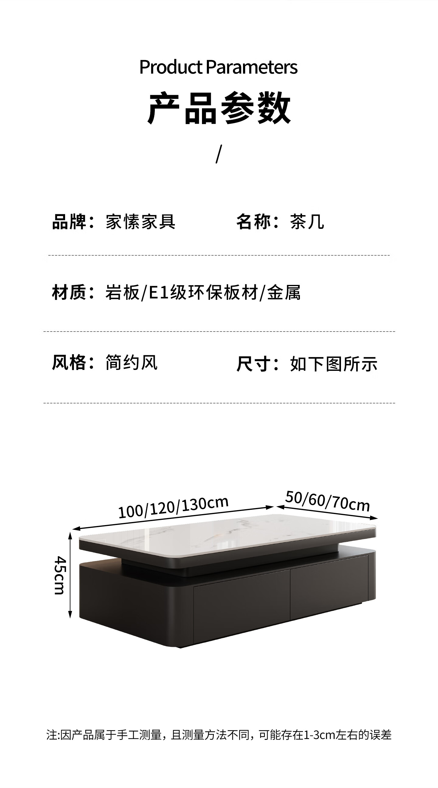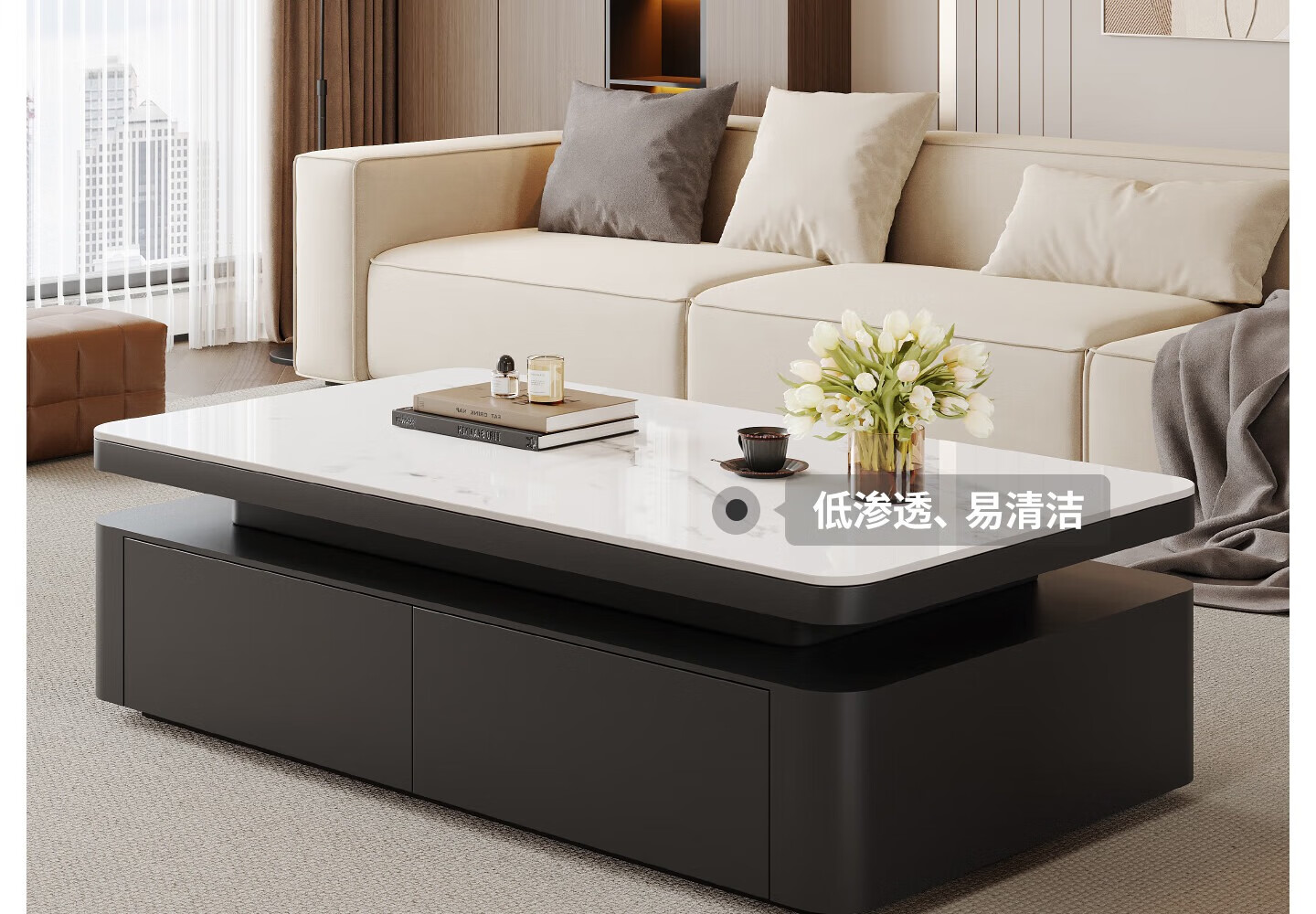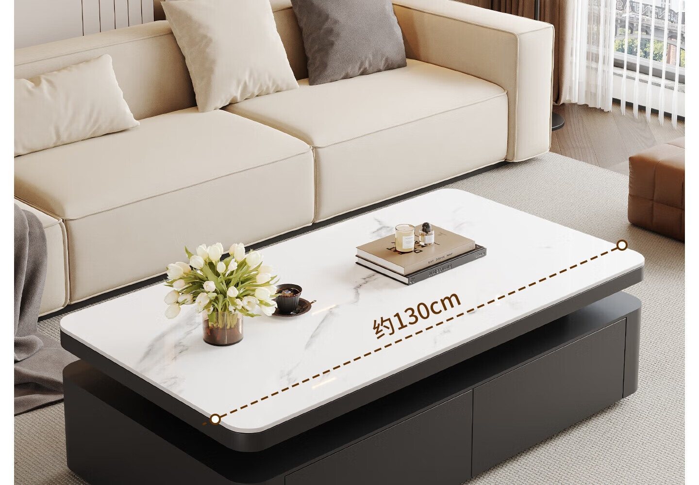 Home coffee table living room home 2025 new high-end size apartment light luxury modern coffee table rectangular slate coffee table table slate snow mountain white coffee table 130*70*45cm