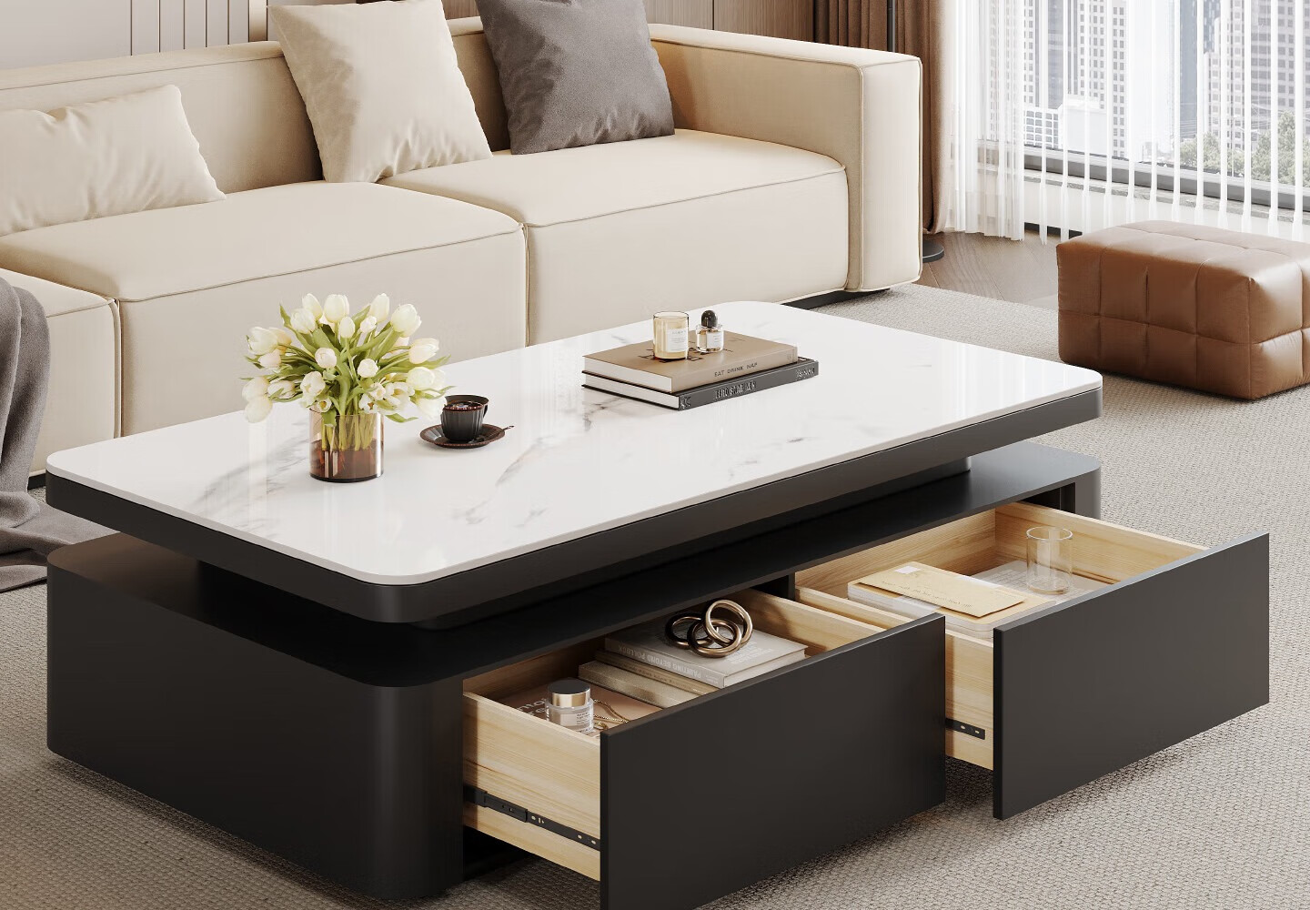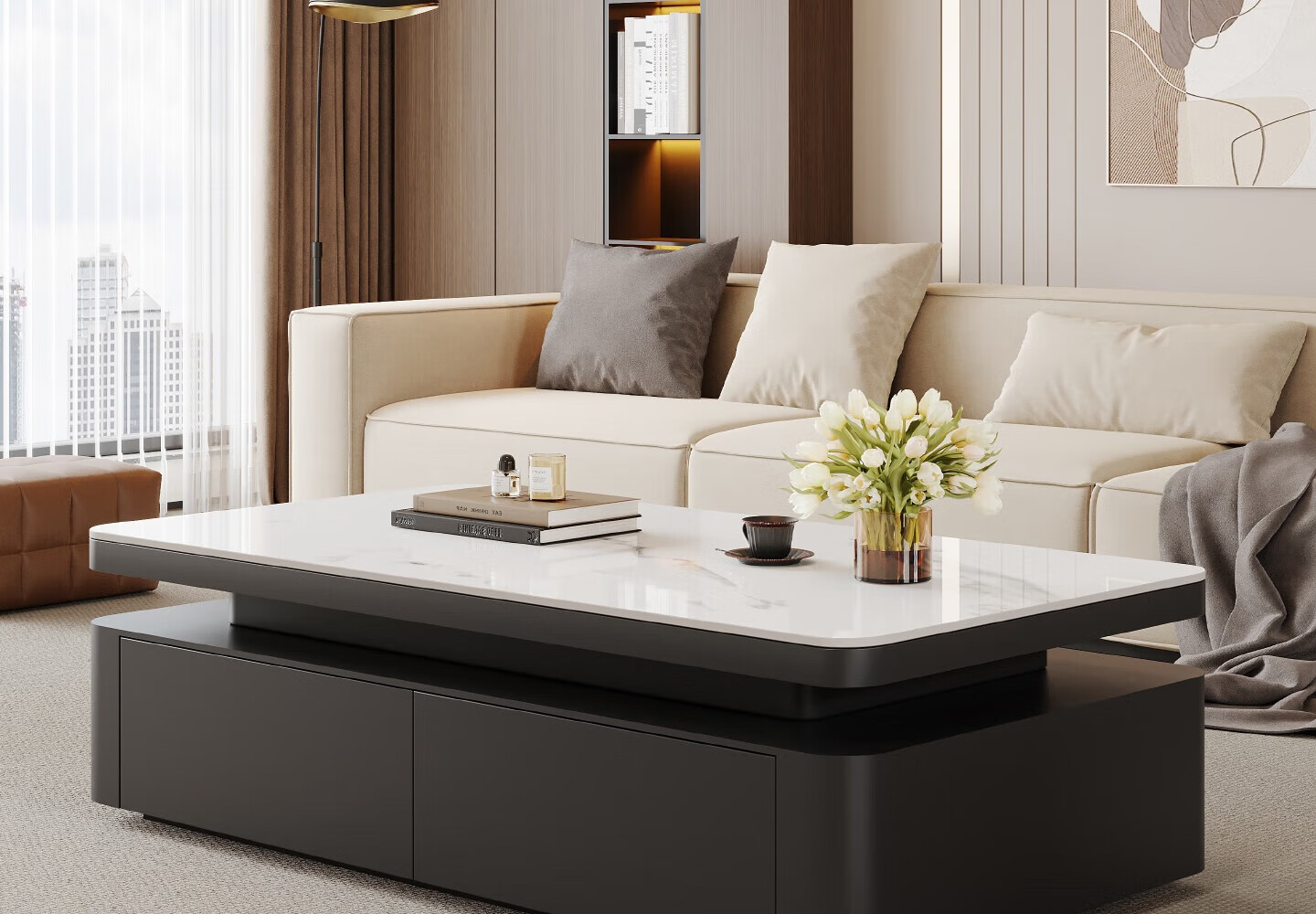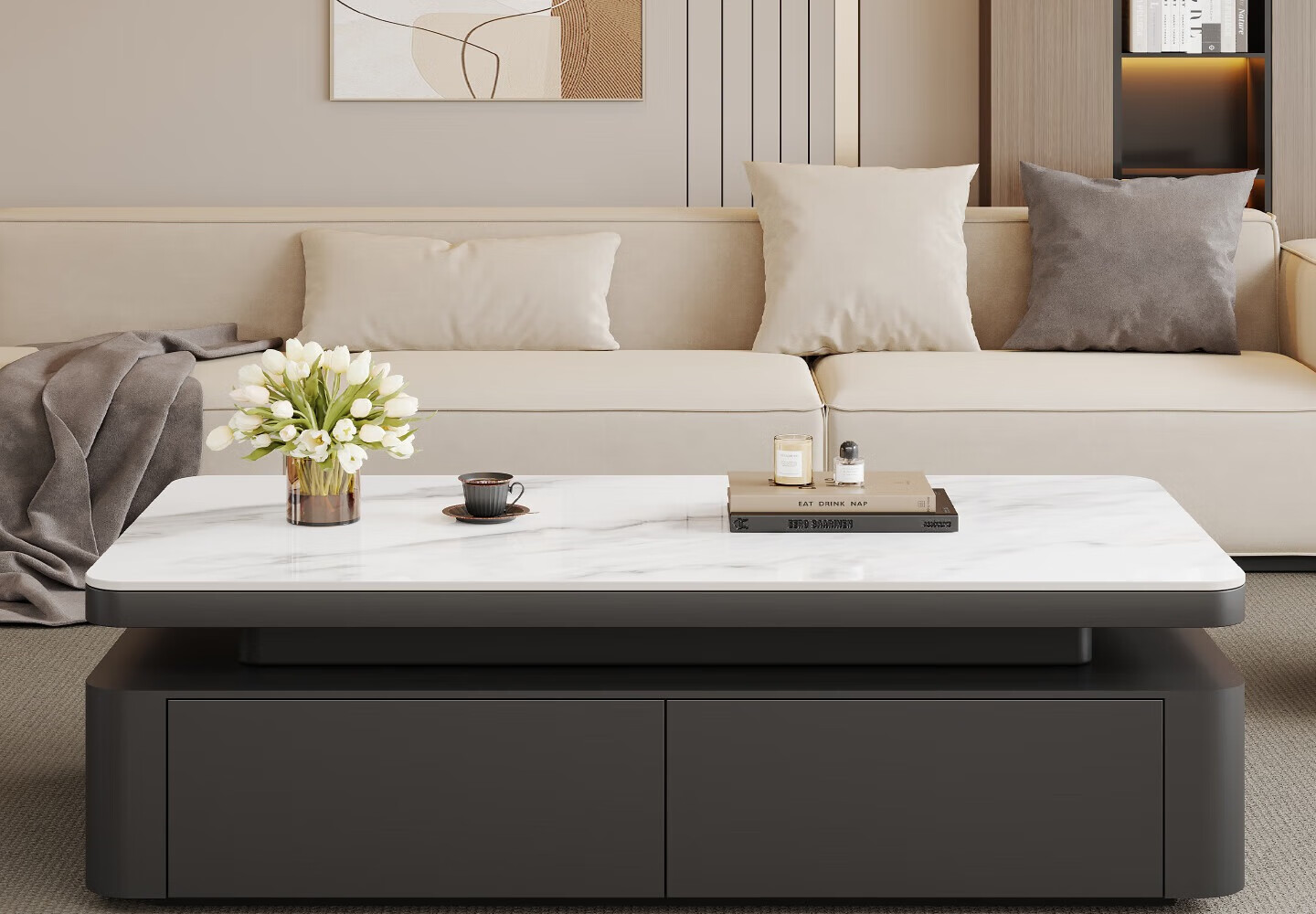 Home coffee table living room home 2025 new high-end size apartment light luxury modern coffee table rectangular slate coffee table table slate snow mountain white coffee table 130*70*45cm