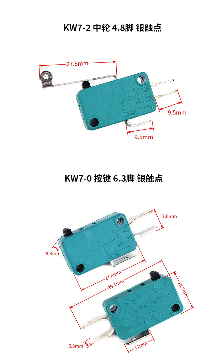 Stroke limit micro-point touch switch KW7-0 KW7-1 KW7-2 KW7-3 micro-motion self-reset KW11 KW8-0C handleless