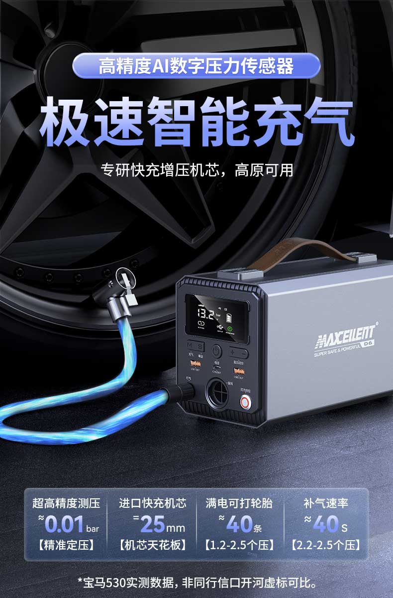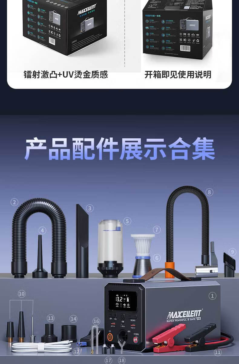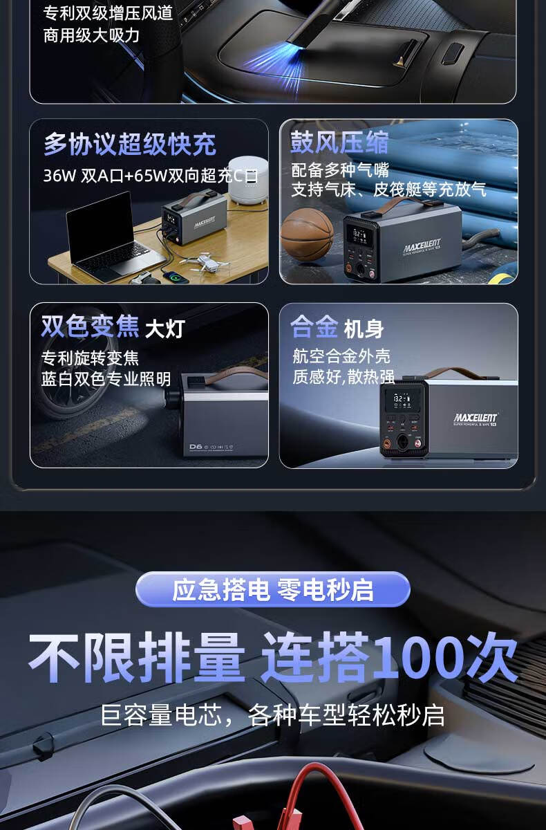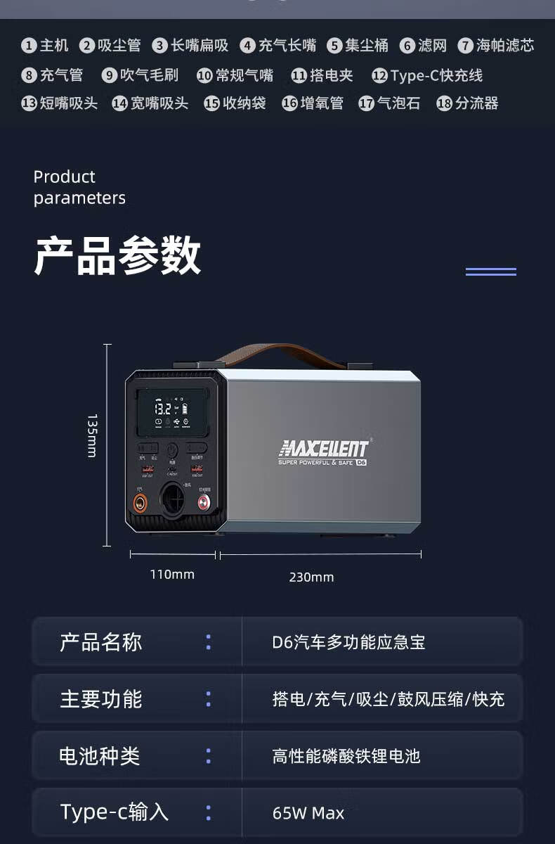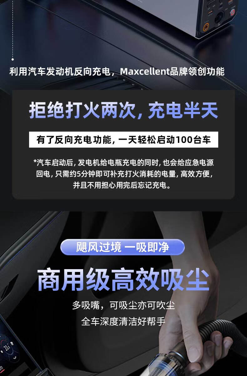 MAXCELLENT car emergency start power supply vacuum cleaner air pump with power bank multi-function all-in-one fast charging bank standard version 60000mAh alloy body