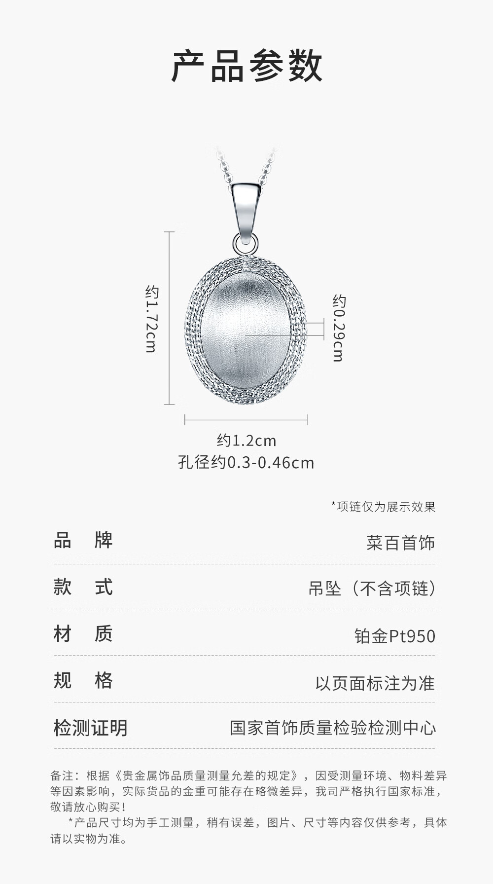 Caibai Jewelry Platinum Pendant Pt950 Platinum Retro Brushed Oval Brand Pendant Price BJ Platinum Pendant (excluding chain) approximately 1.64g