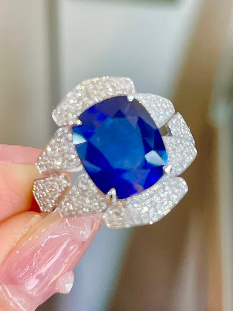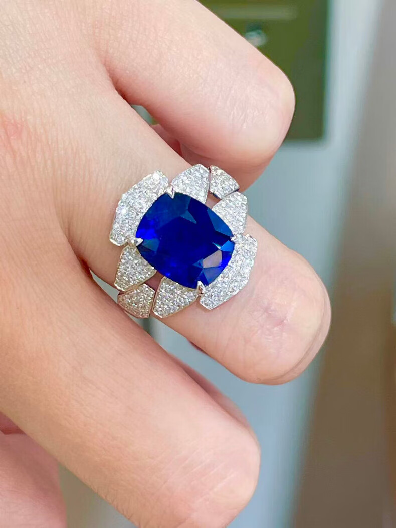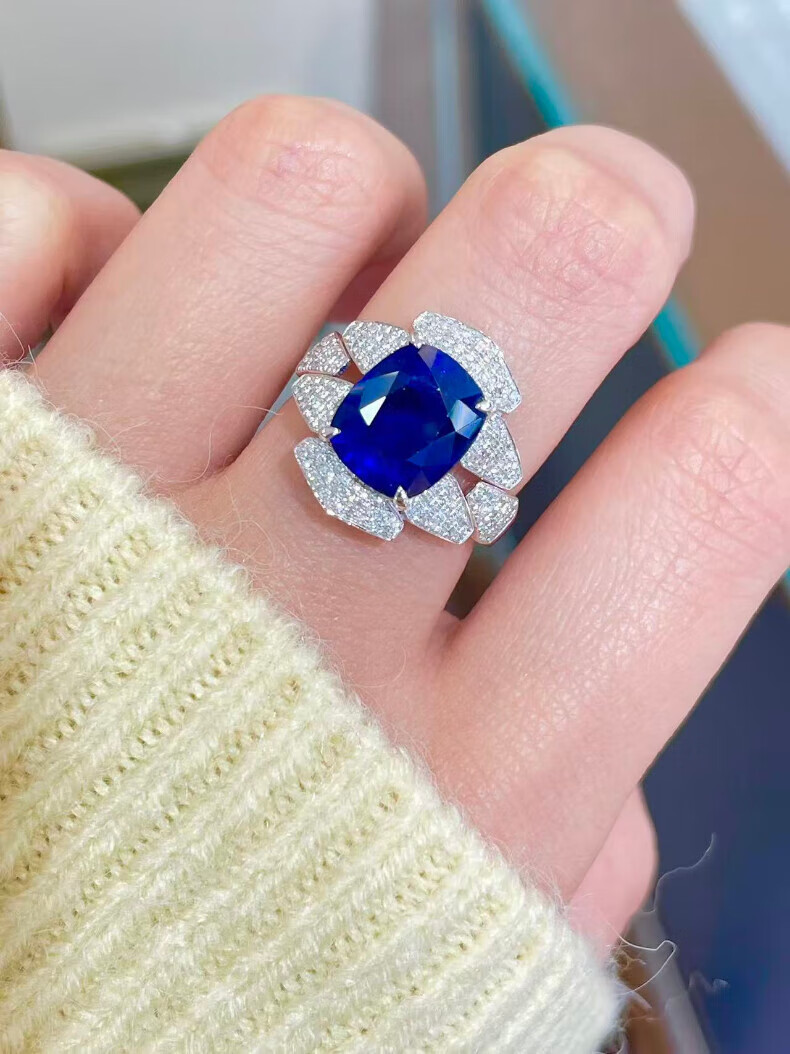 HEEKAIYI Sapphire Ring Female Royal Blue 18k Gold Diamond Ring Chinese Valentine's Day Birthday Gift for Wife and Girlfriend Selected 4.1 Carat/Royal Blue