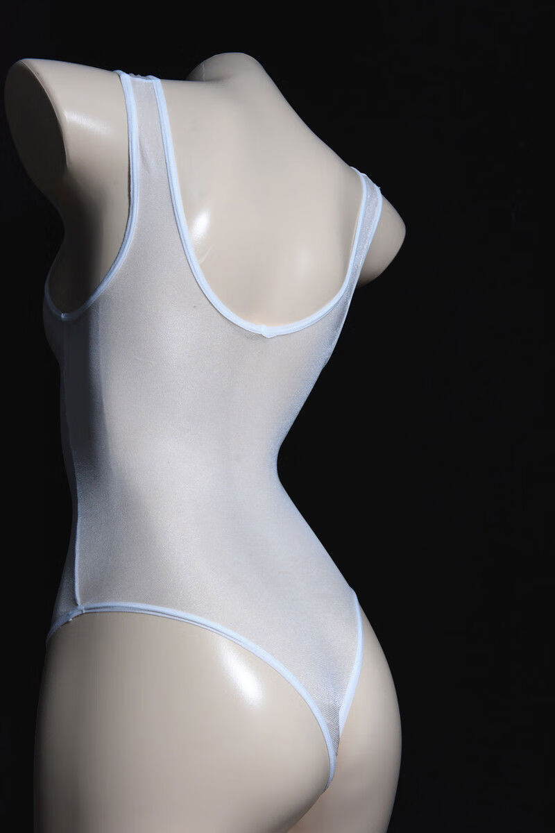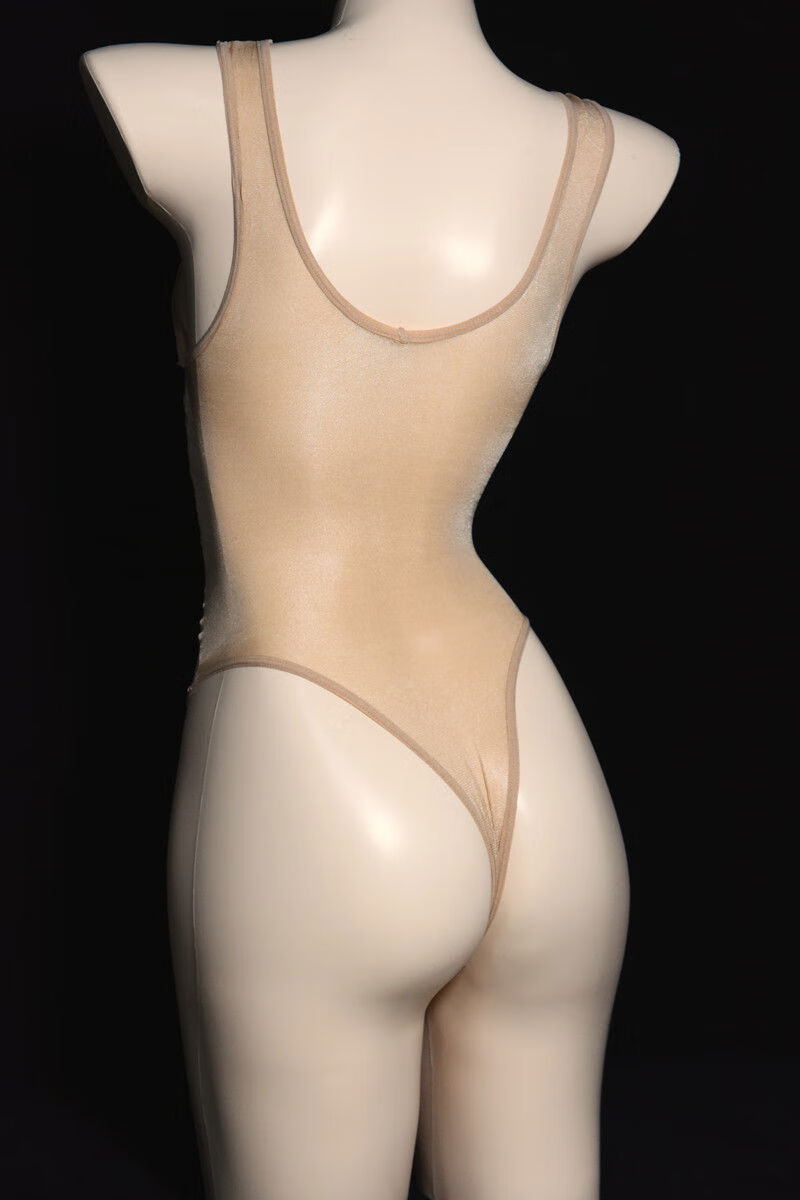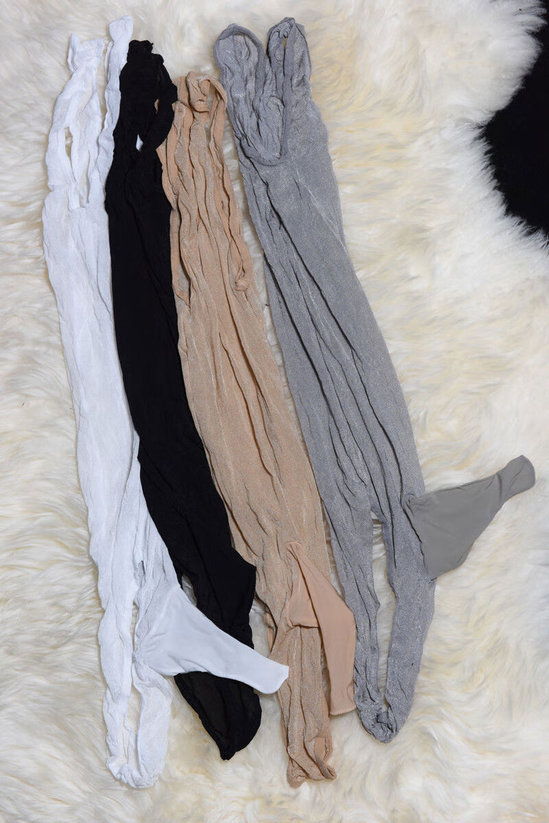 Pulian swimsuit for men and women stockings JJ set thin underwear sexy and interesting solid color silky tight high-cut one-piece black glitter silk high-cut triangle top opening