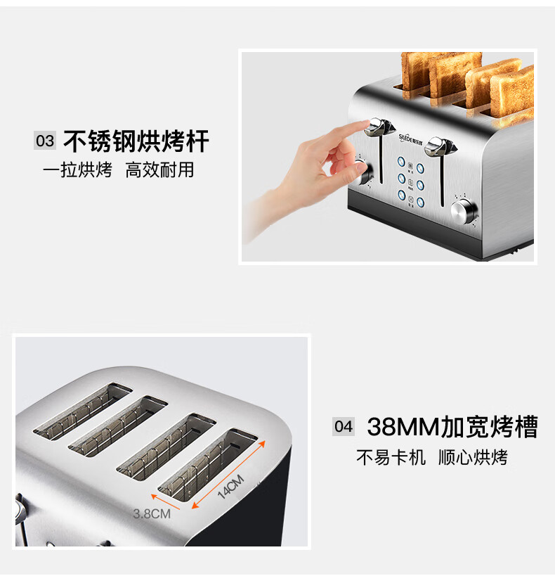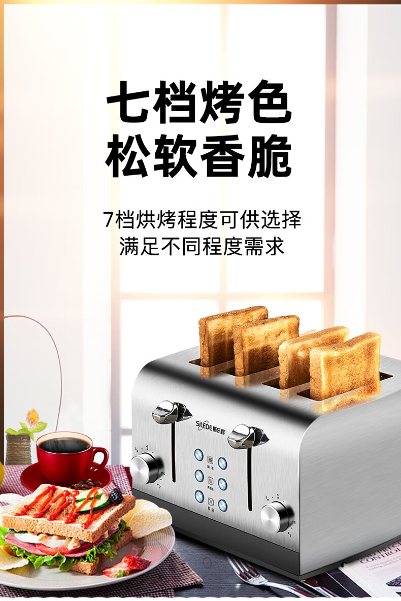 Fat Donglai same quality toaster breakfast machine automatic pop-up export British toast bread machine home commercial hotel toast bread machine 4 slices breakfast toast new 20s (2 slices automatically pop up)