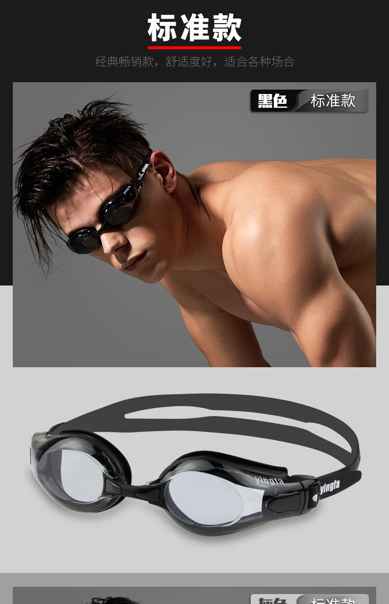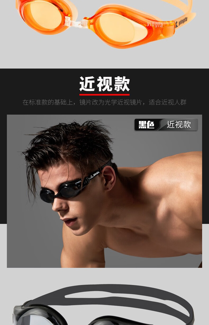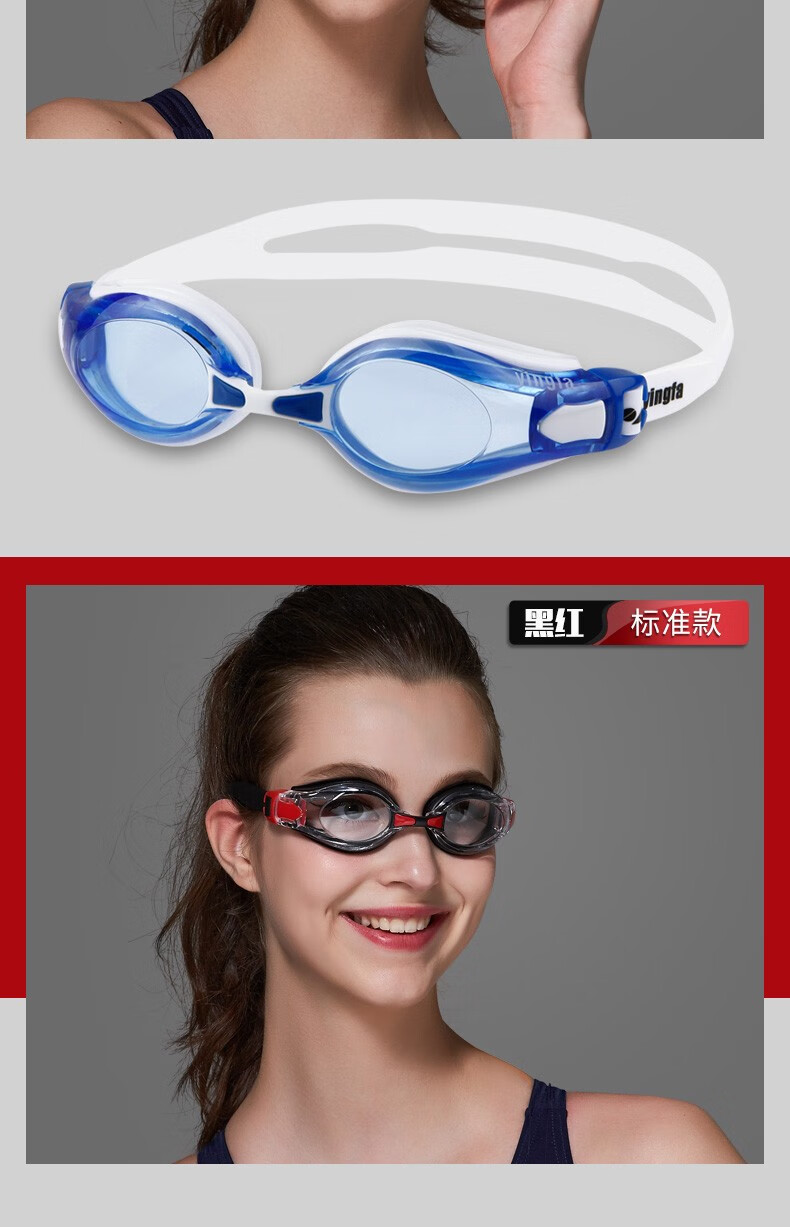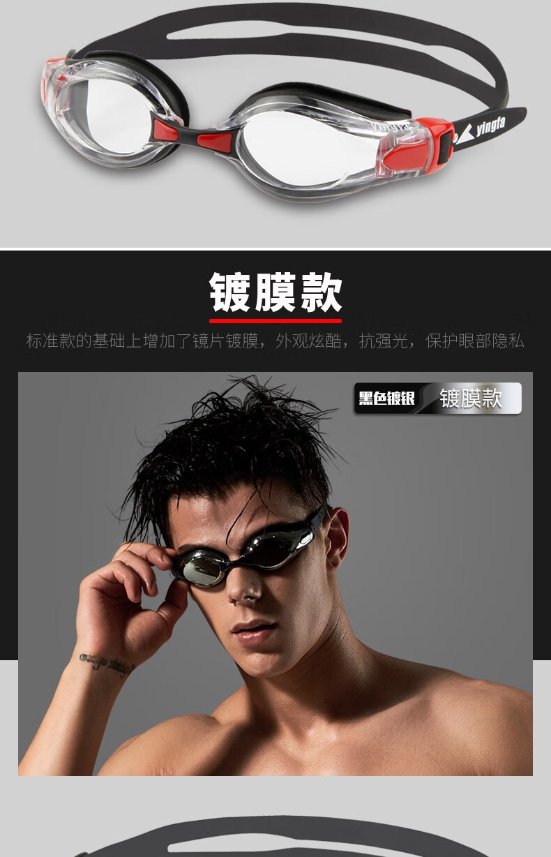 Yingfa swimming goggles high-definition anti-fog, large-frame myopia swimming goggles for men and women, professional anti-fog and waterproof swimming goggles, standard style - black and red