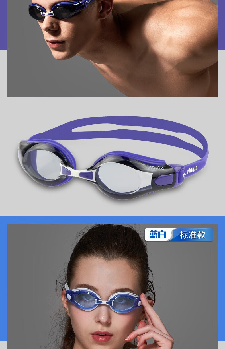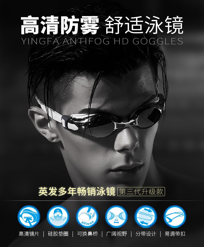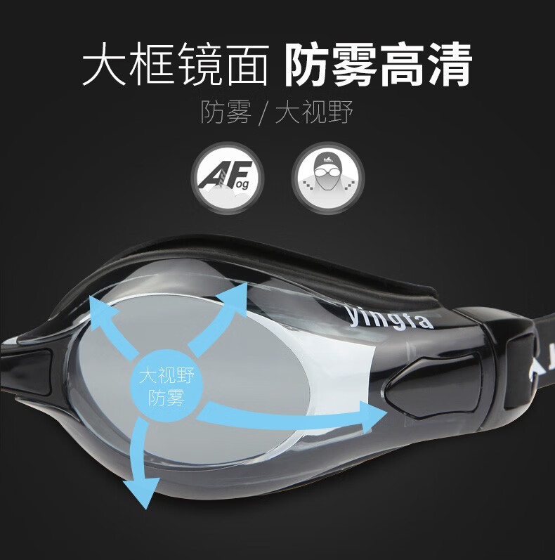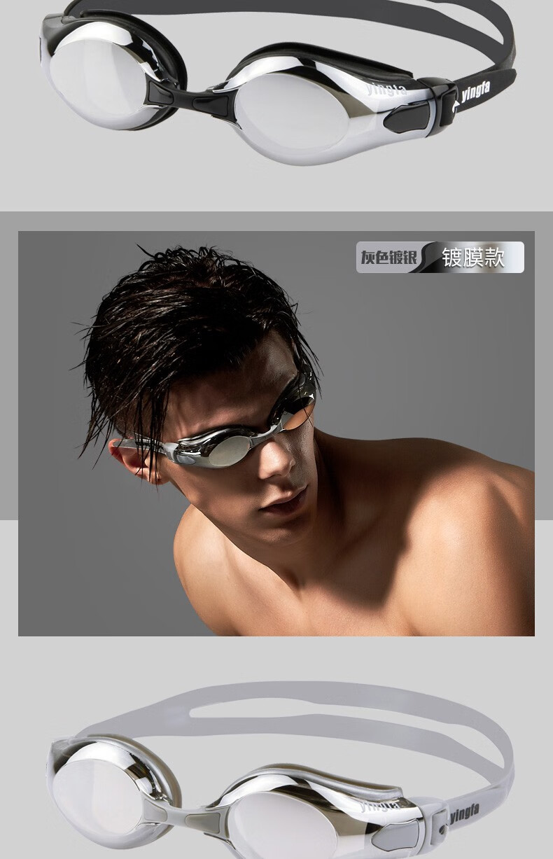 Yingfa swimming goggles high-definition anti-fog, large-frame myopia swimming goggles for men and women, professional anti-fog and waterproof swimming goggles, standard style - black and red