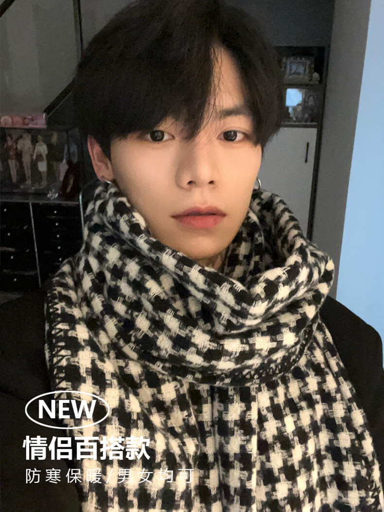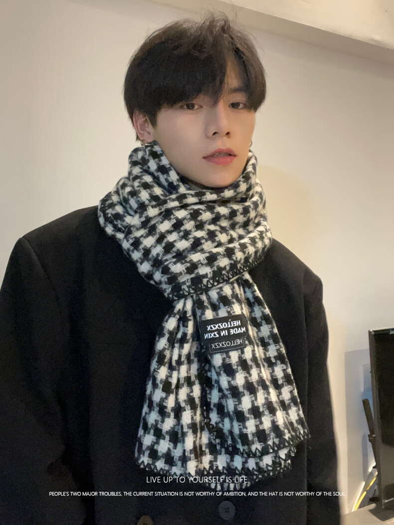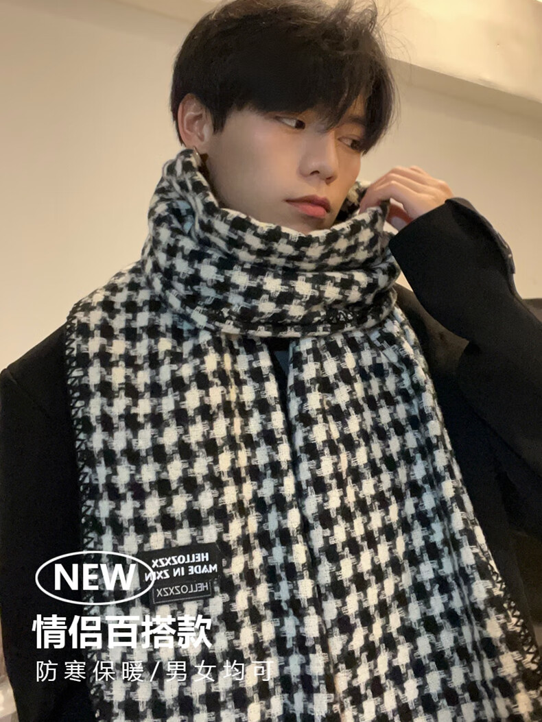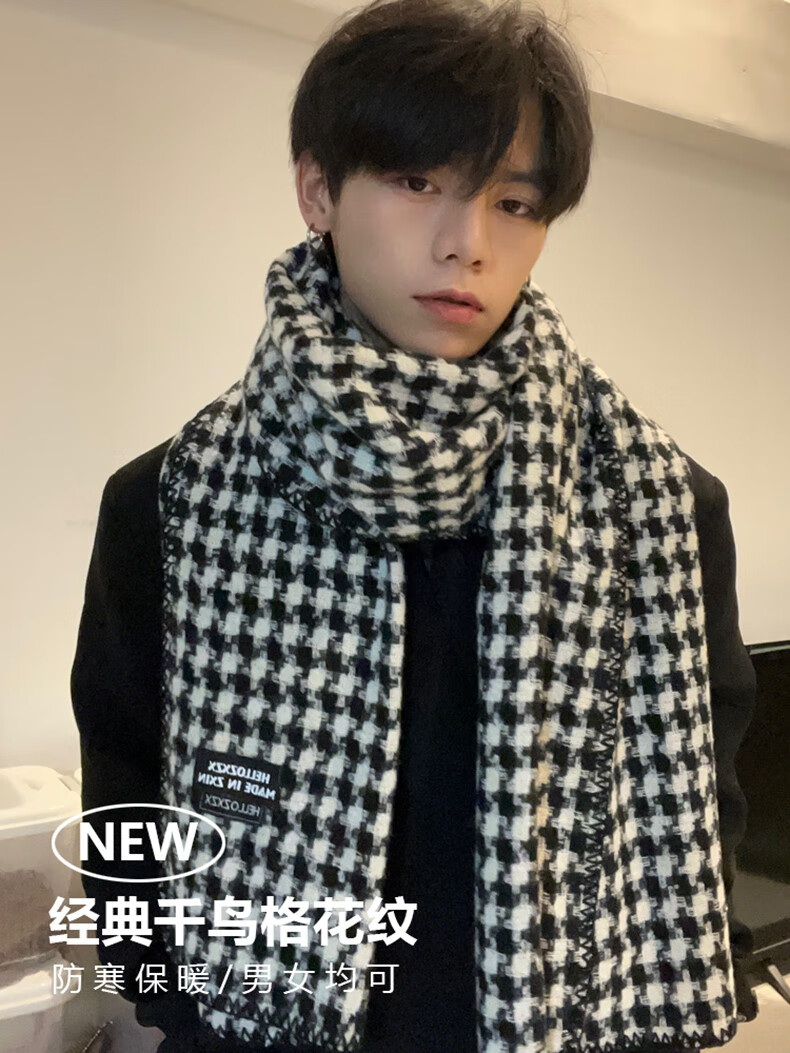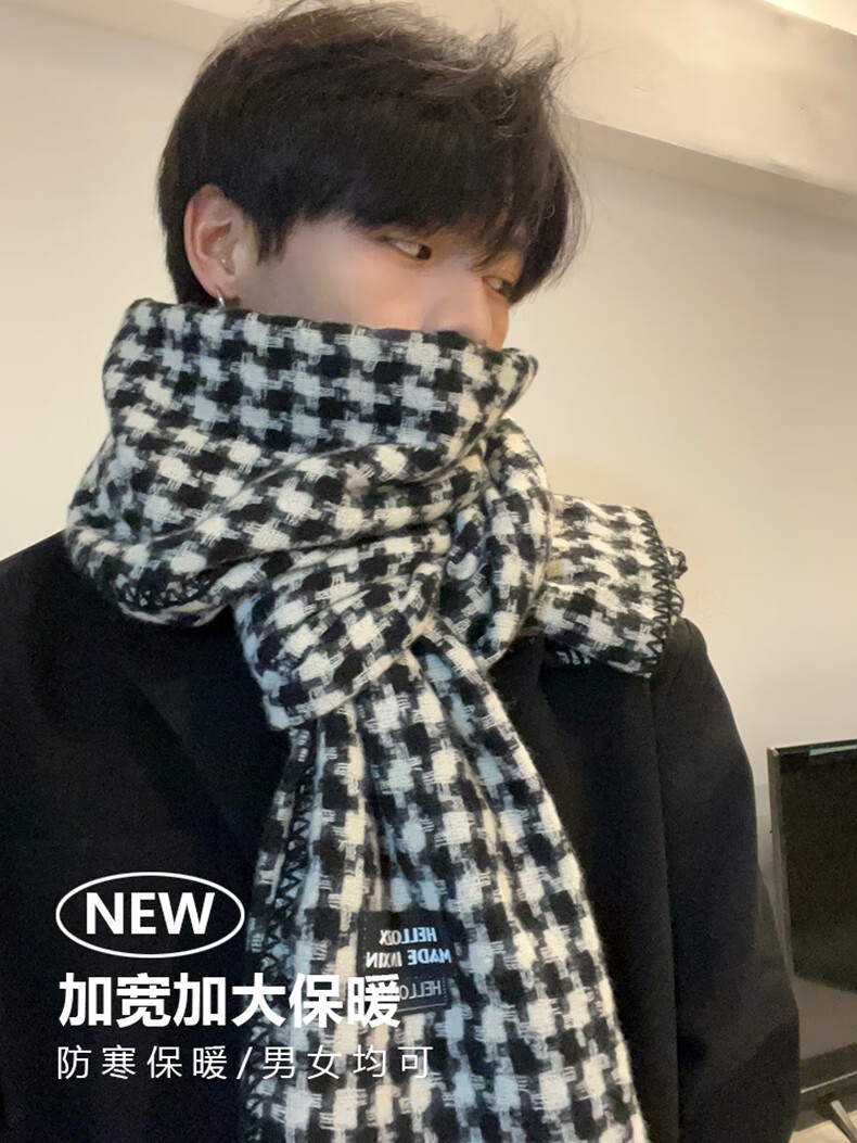 Viney scarf men's 2025 new winter houndstooth high-end warm scarf birthday gift for boyfriend and husband black-high-end gift box