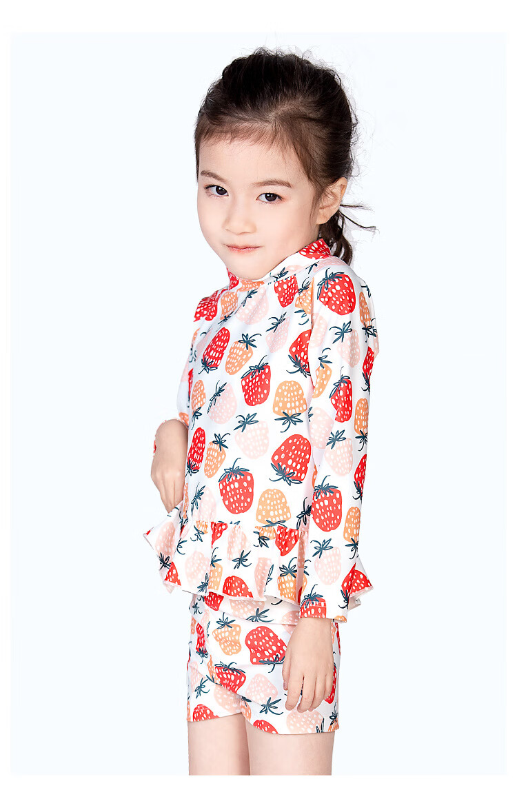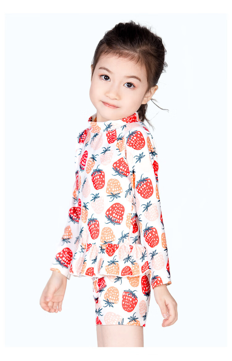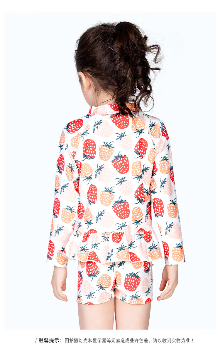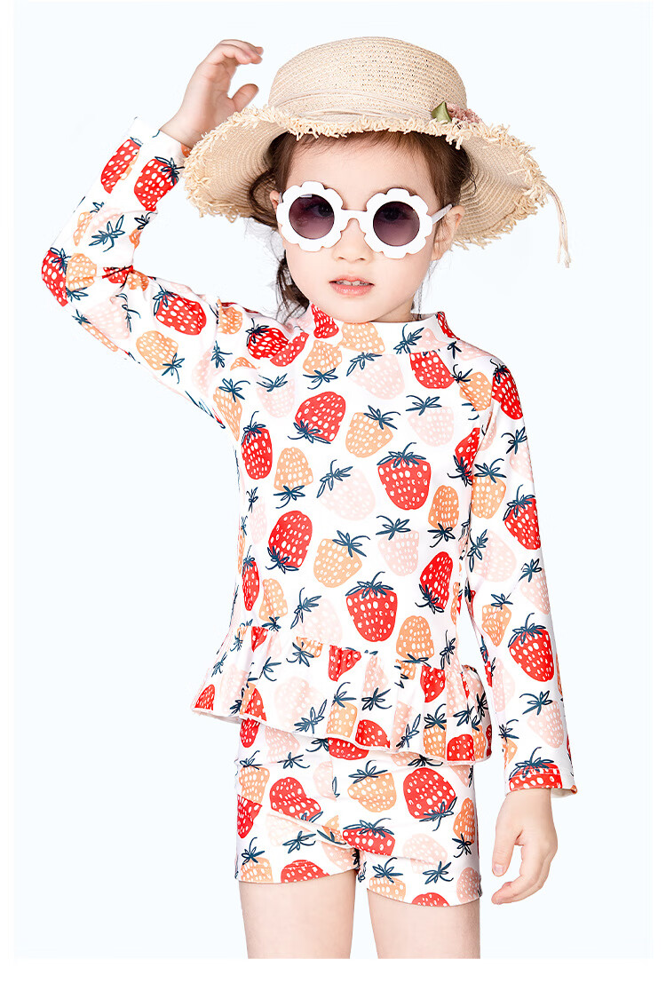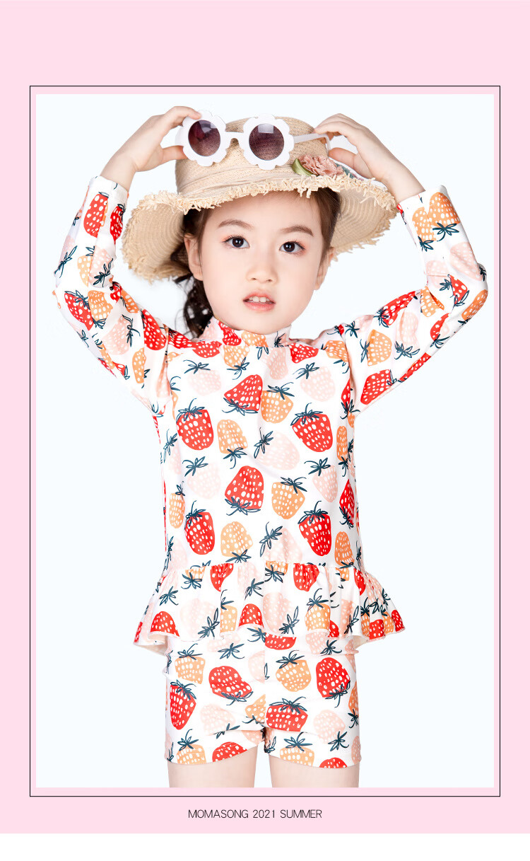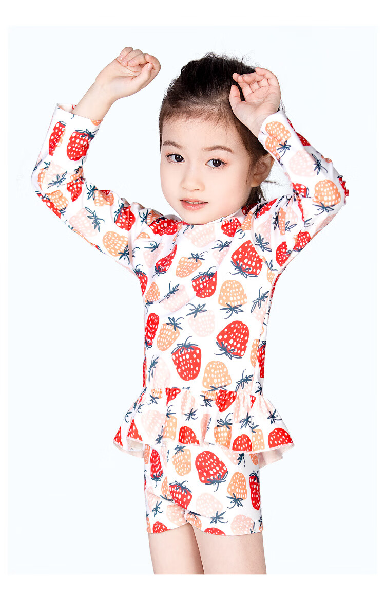 New long-sleeved sunscreen children's swimsuit strawberry cute baby swimsuit girl beach surf split suit grass 4 recommended height 75-85cm
