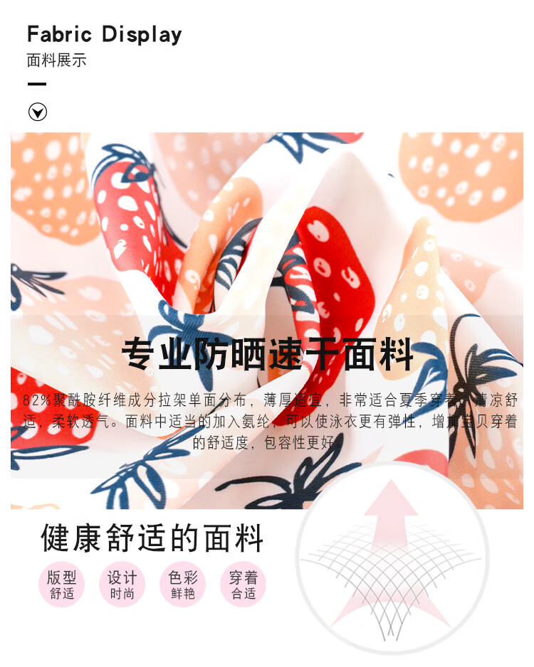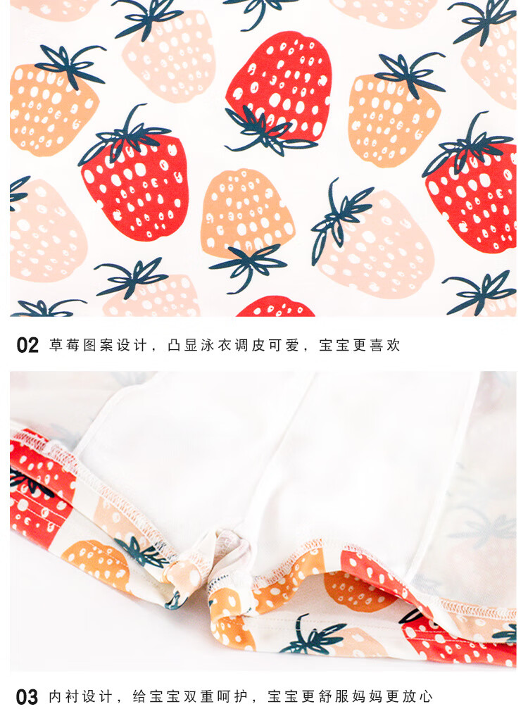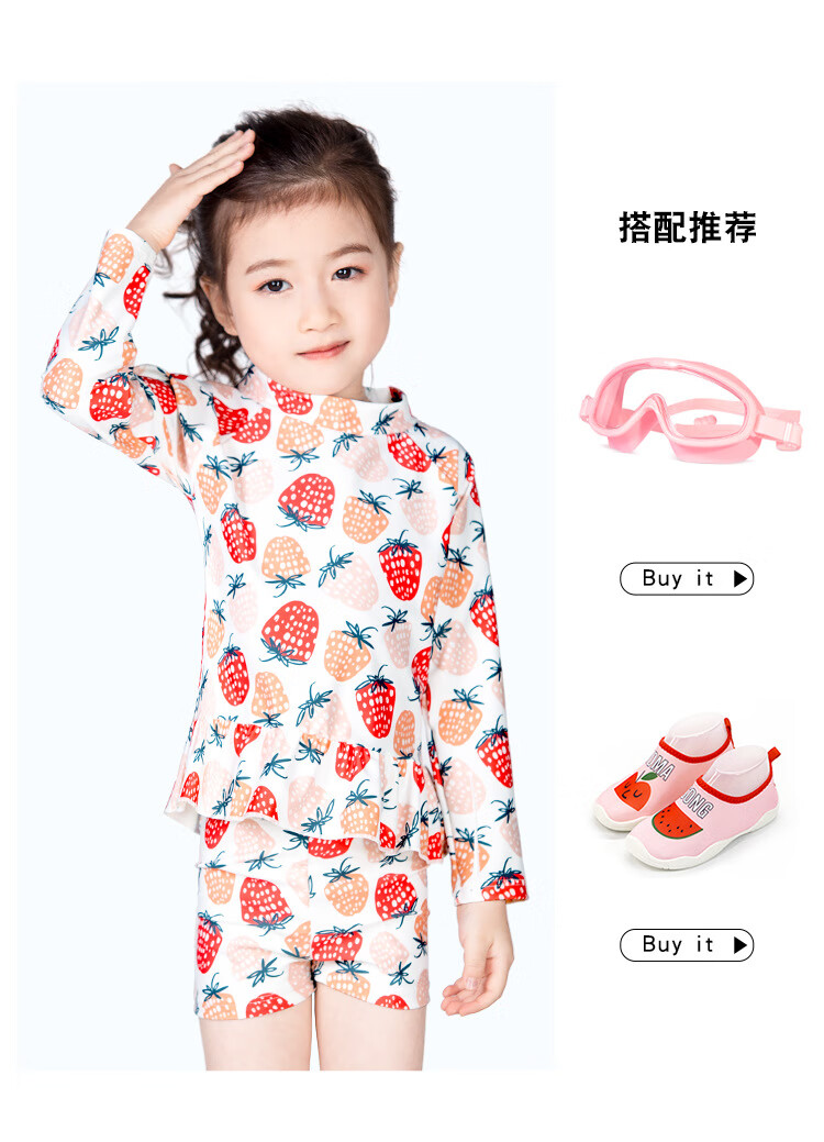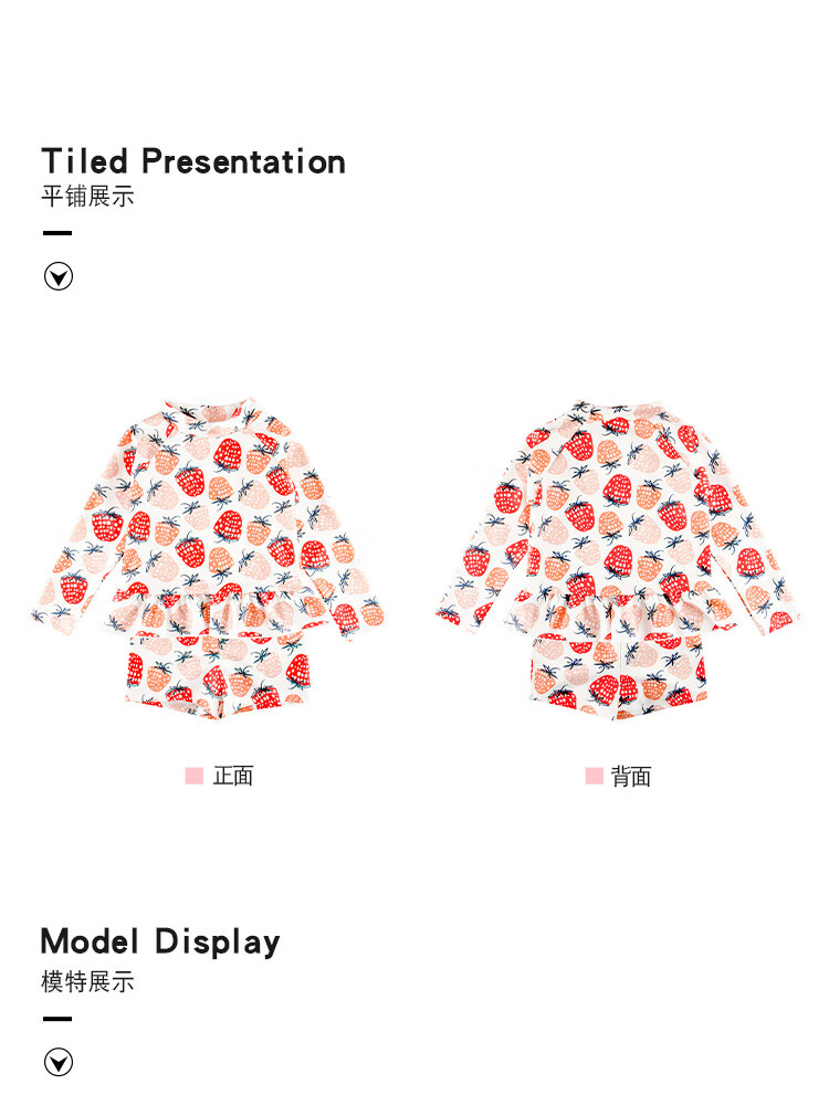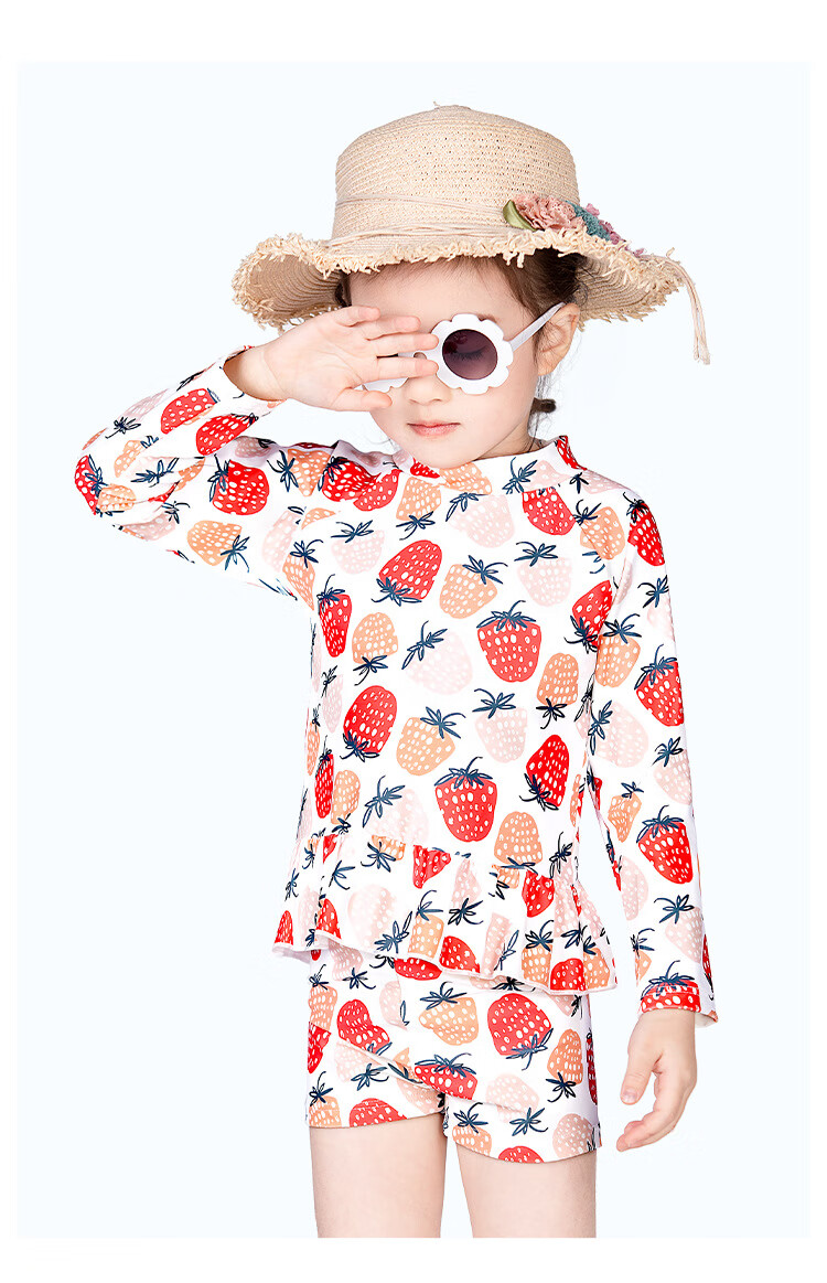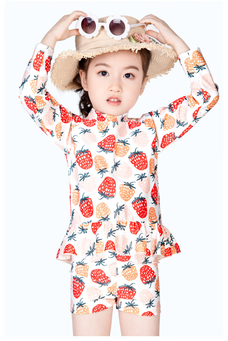 New long-sleeved sunscreen children's swimsuit strawberry cute baby swimsuit girl beach surf split suit grass 4 recommended height 75-85cm